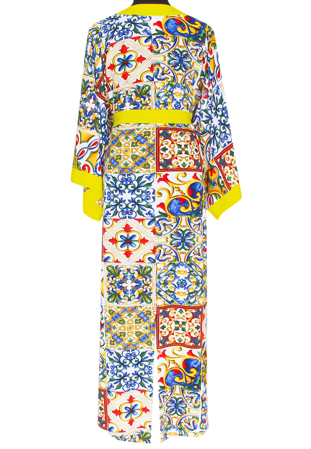 Maxi Split Kaftan - print from vibrant Siciliana collection inspired by colorful Italian majolica, with yellow finish.