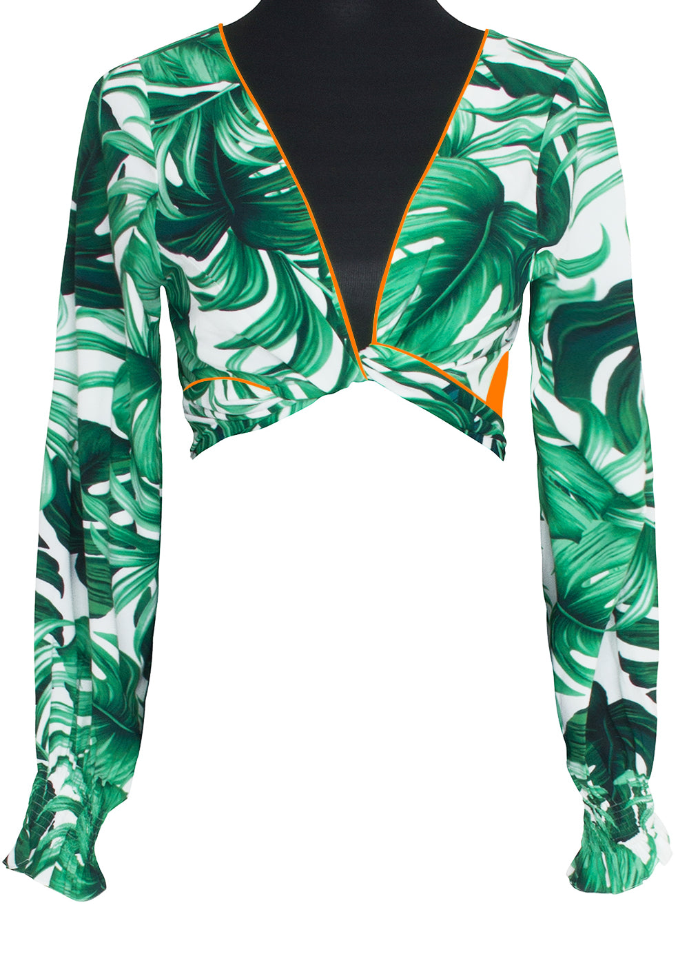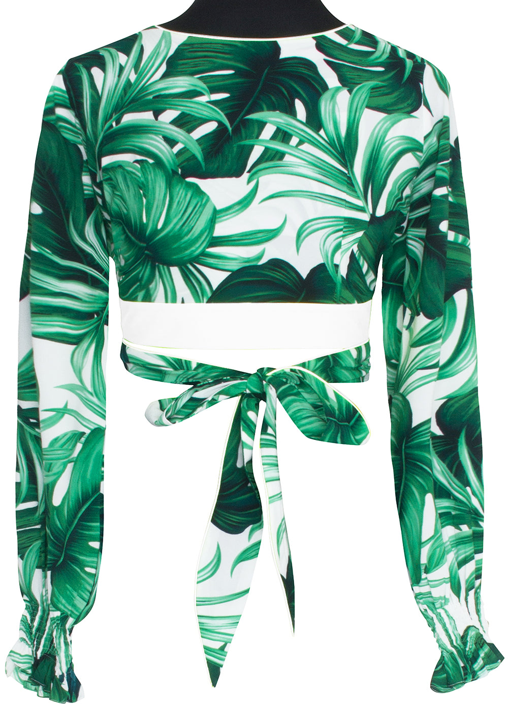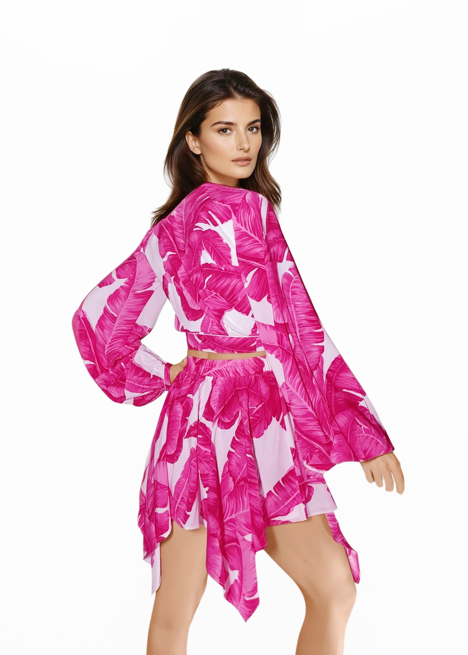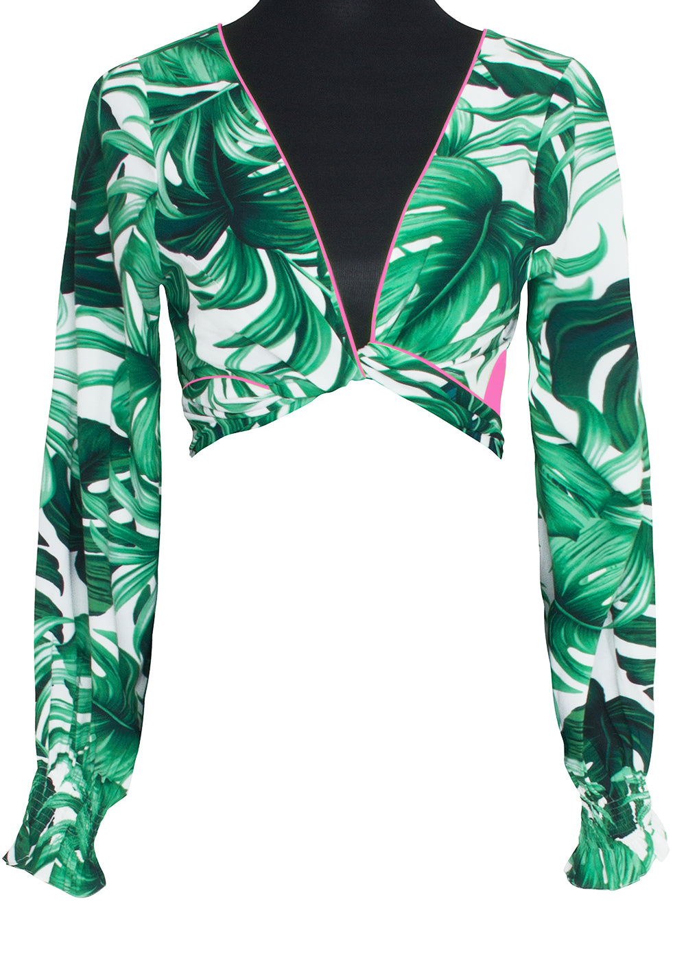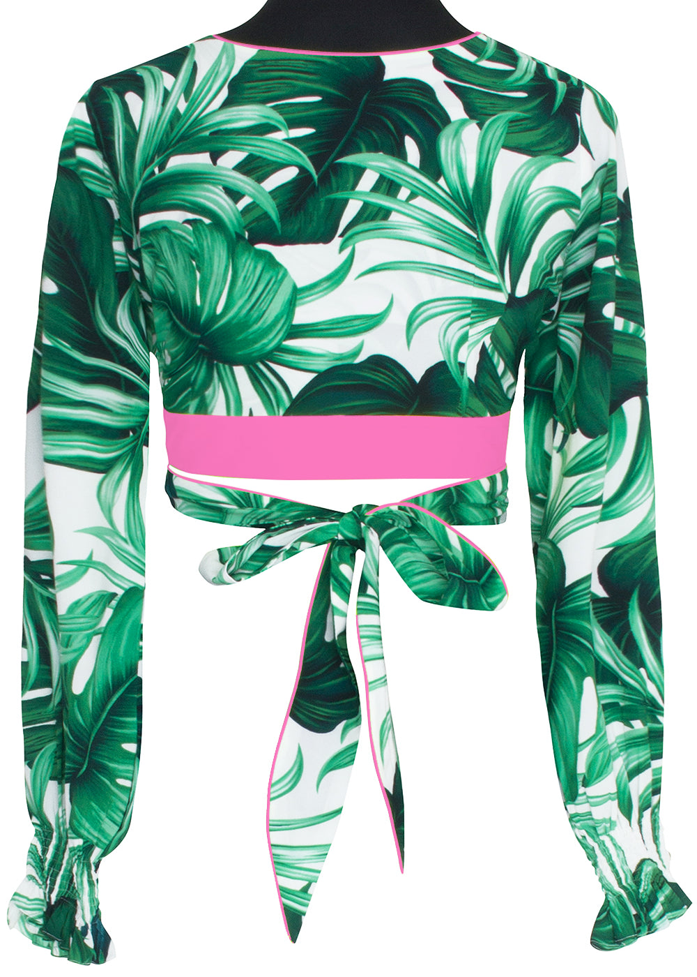 Jungle - Pink Palm Cropped Blouse (Off-White)