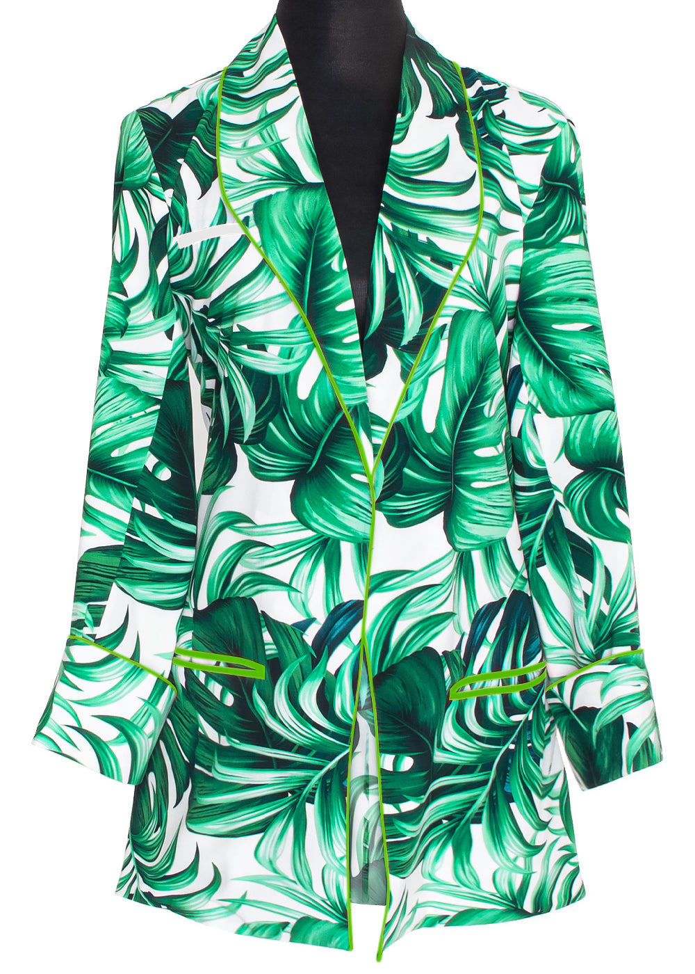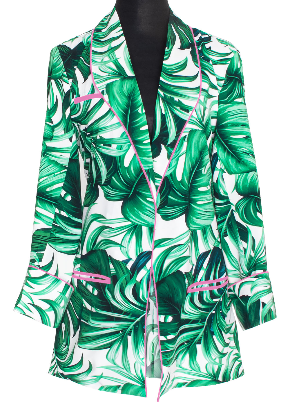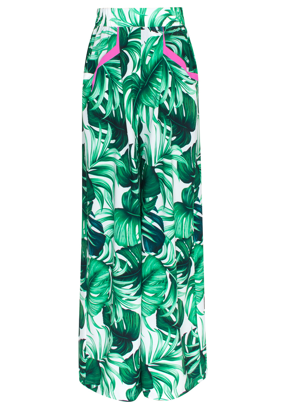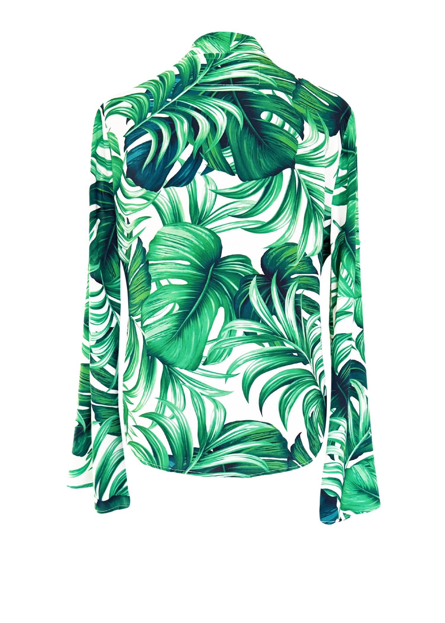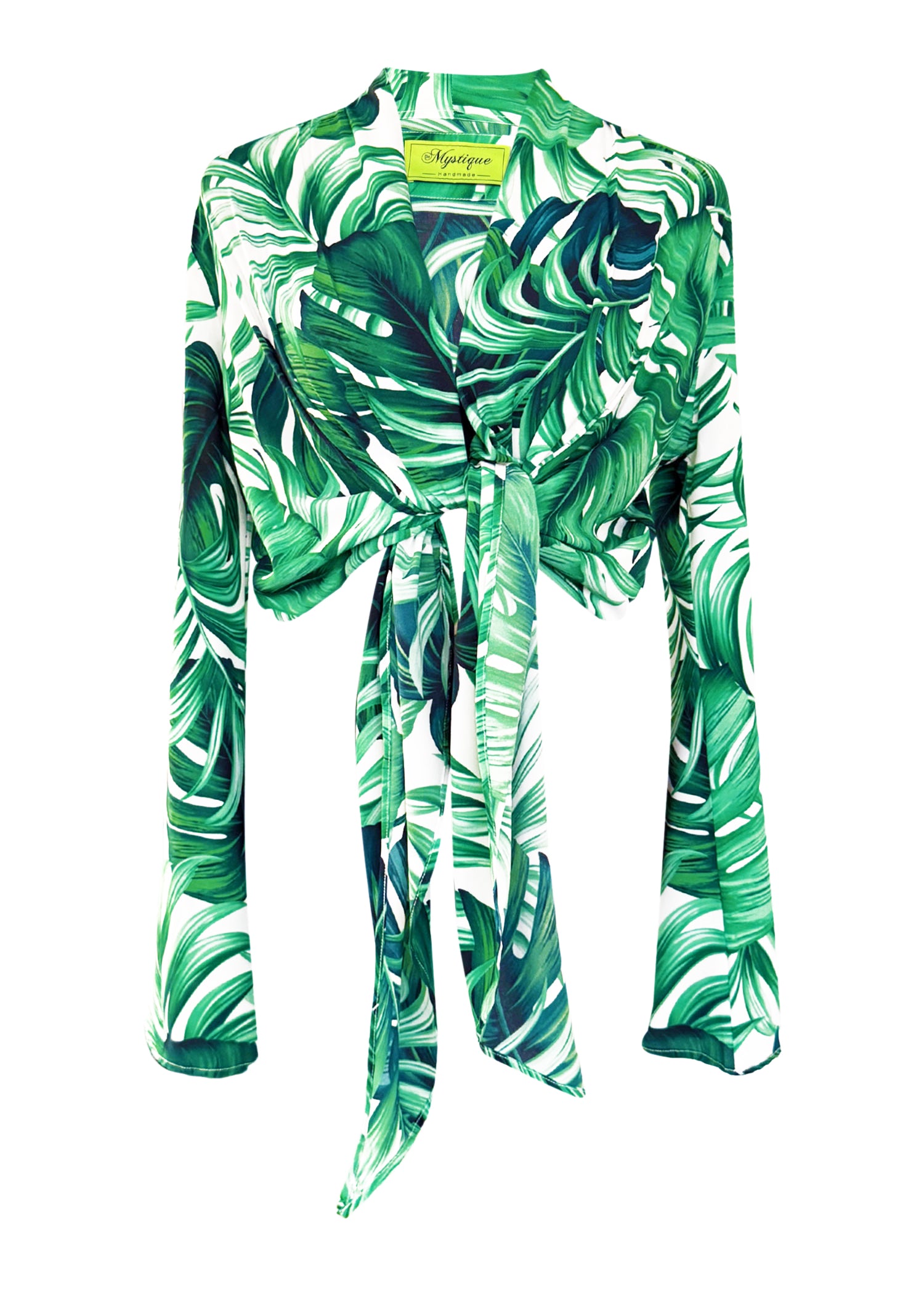 Jungle - Pink Palm Cropped Blouse (Off-White)