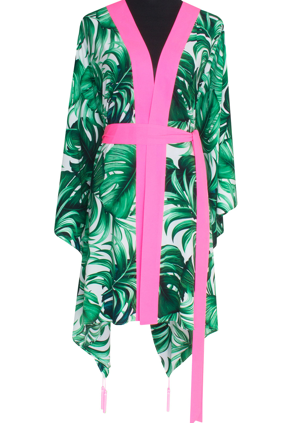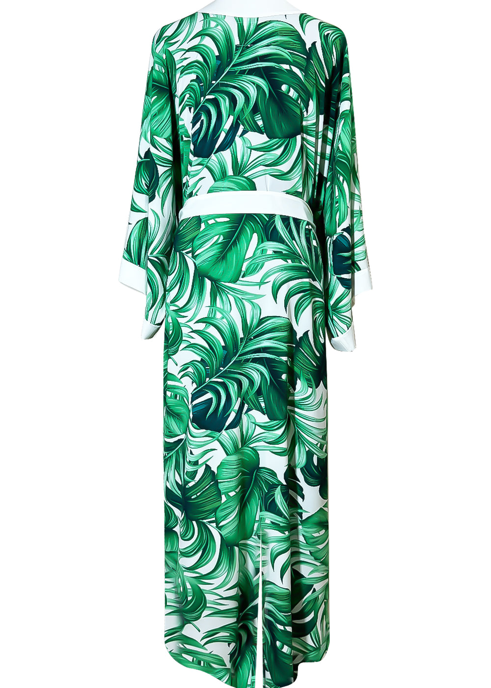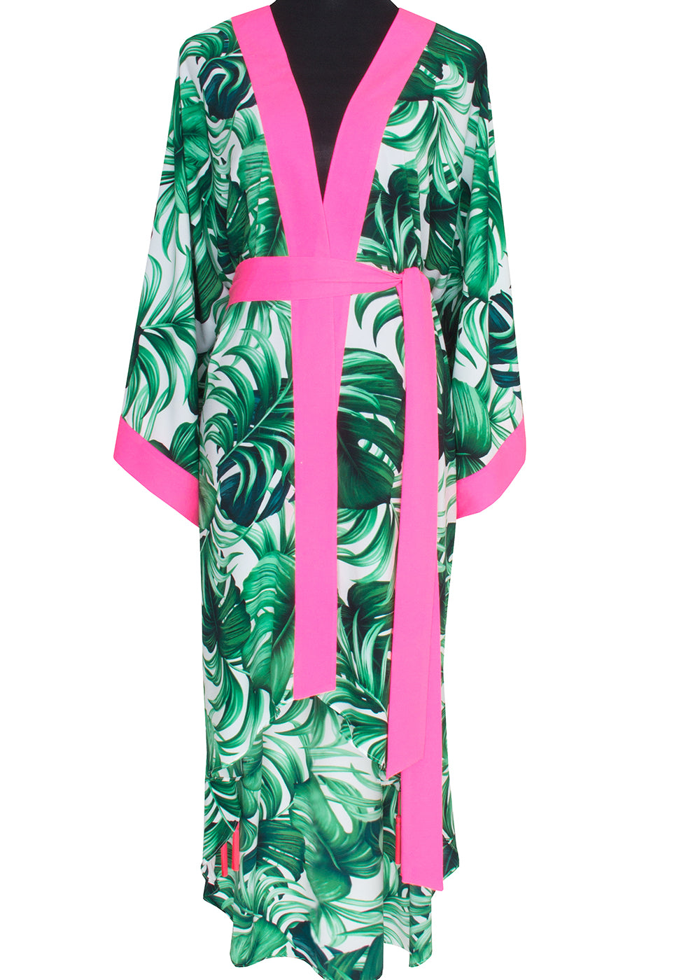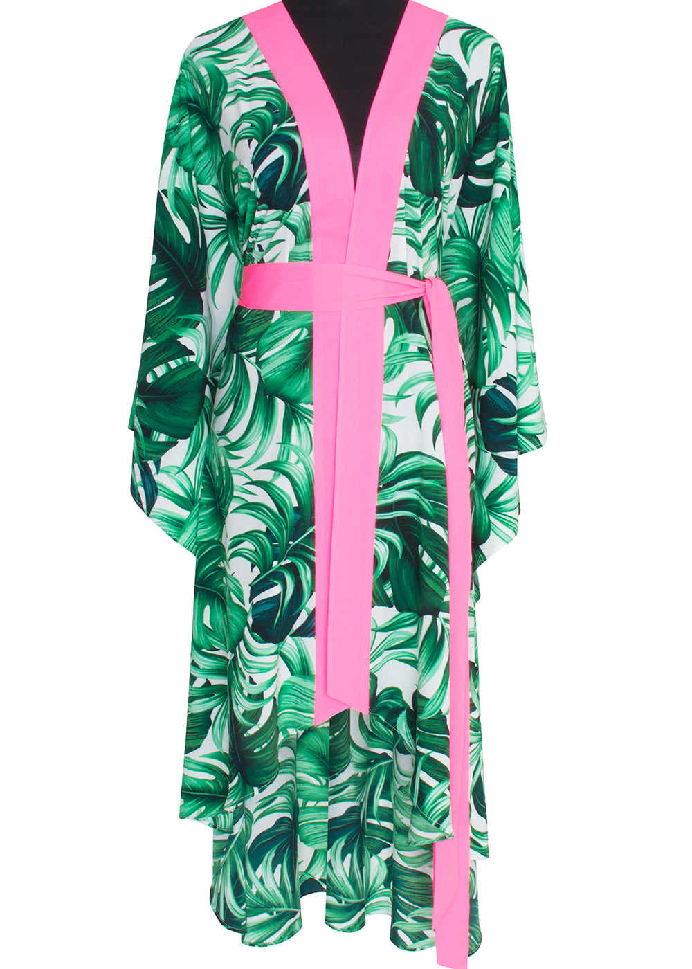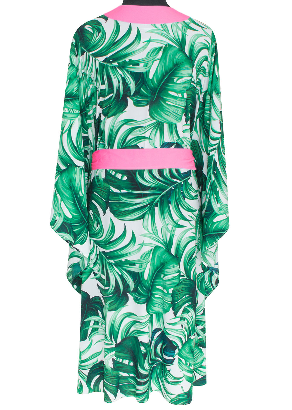 Jungle - Pink Palm Maxi Split Kaftan (Off-White)