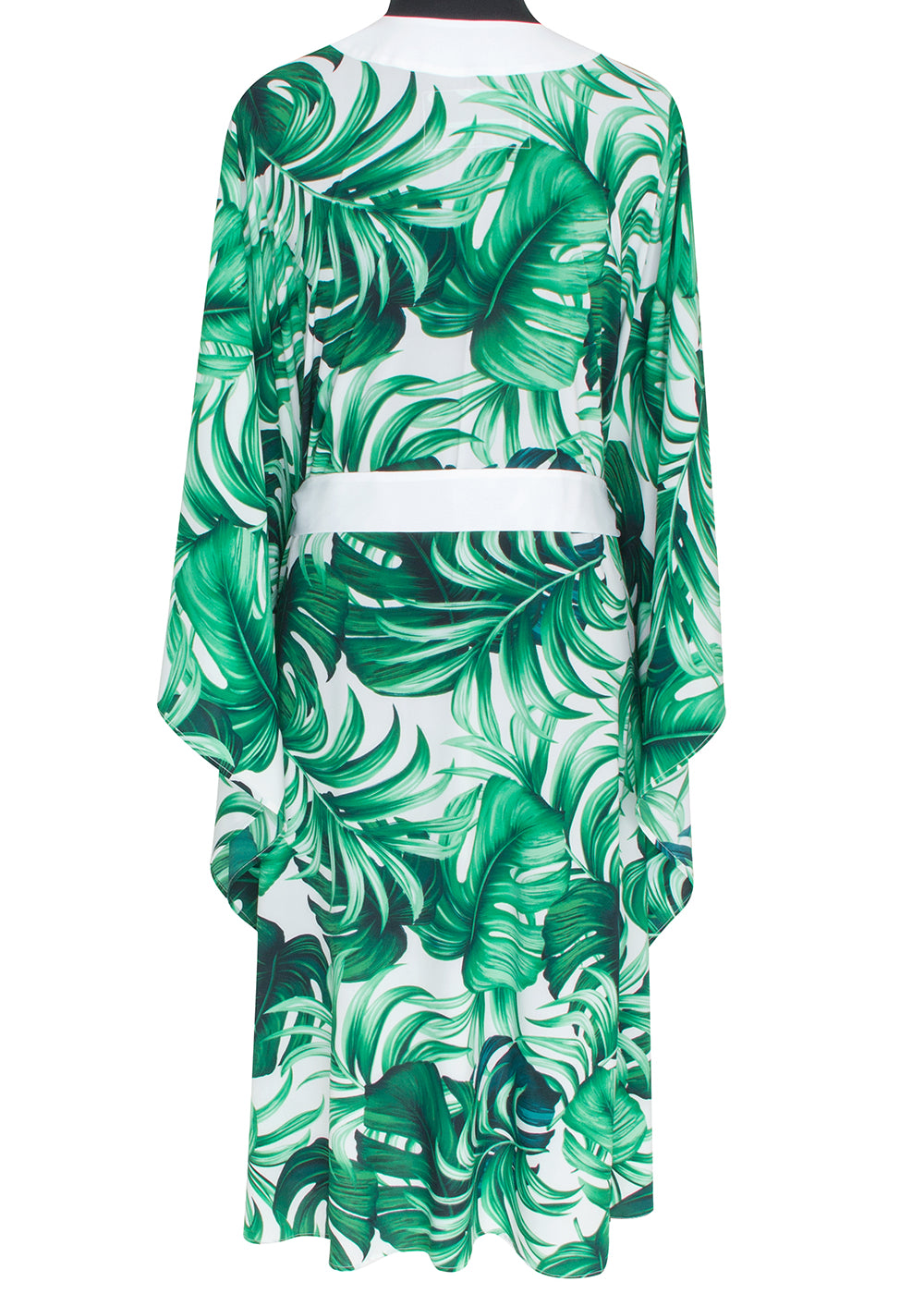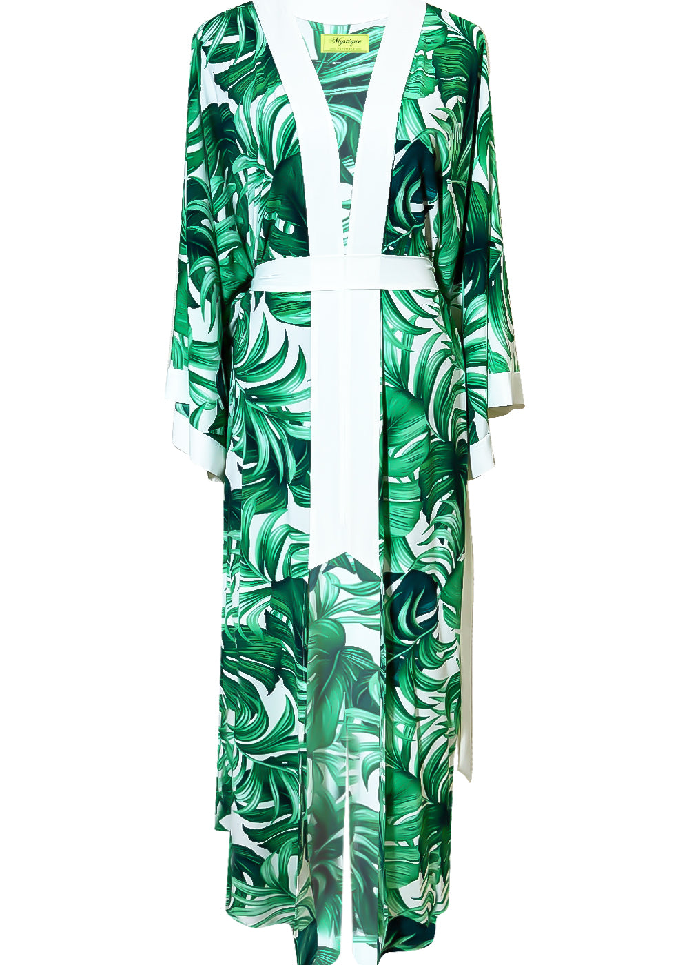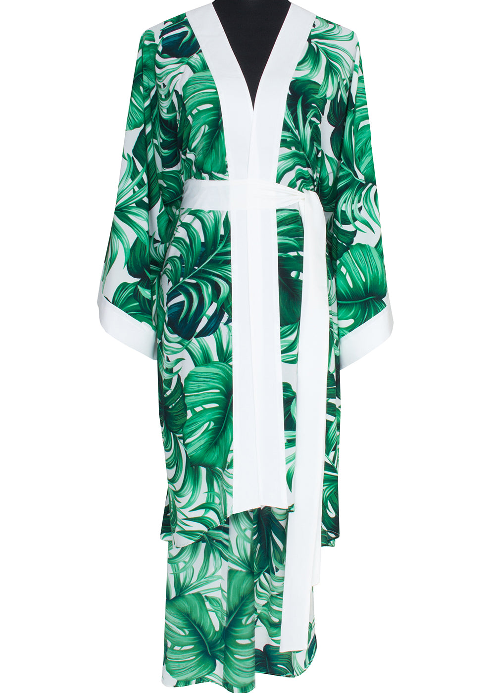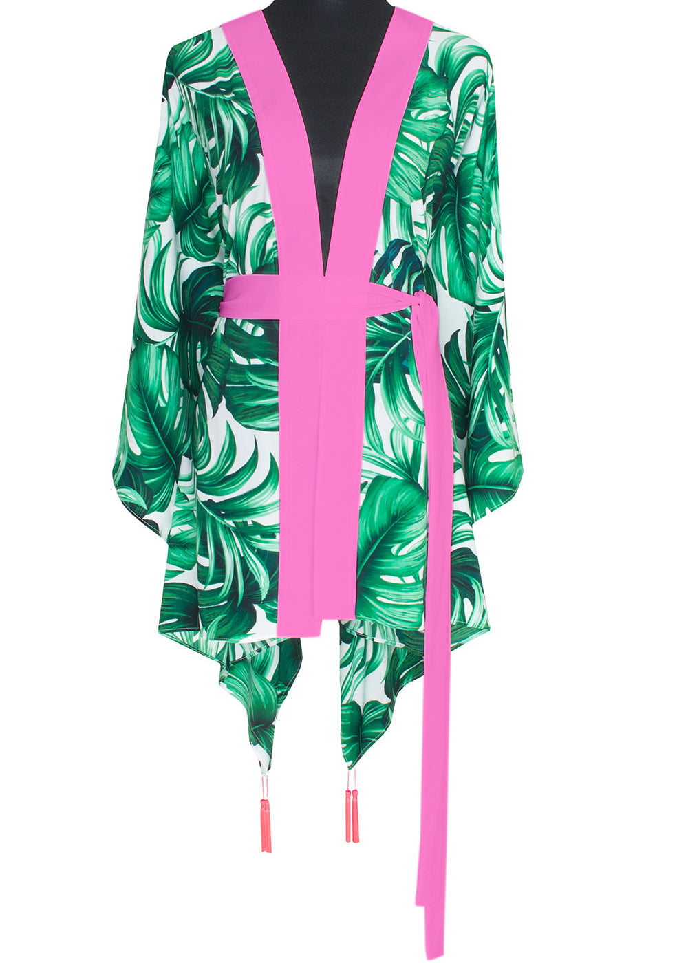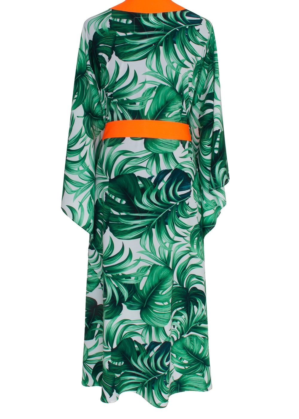 Jungle - Pink Palm Maxi Split Kaftan (Off-White)
