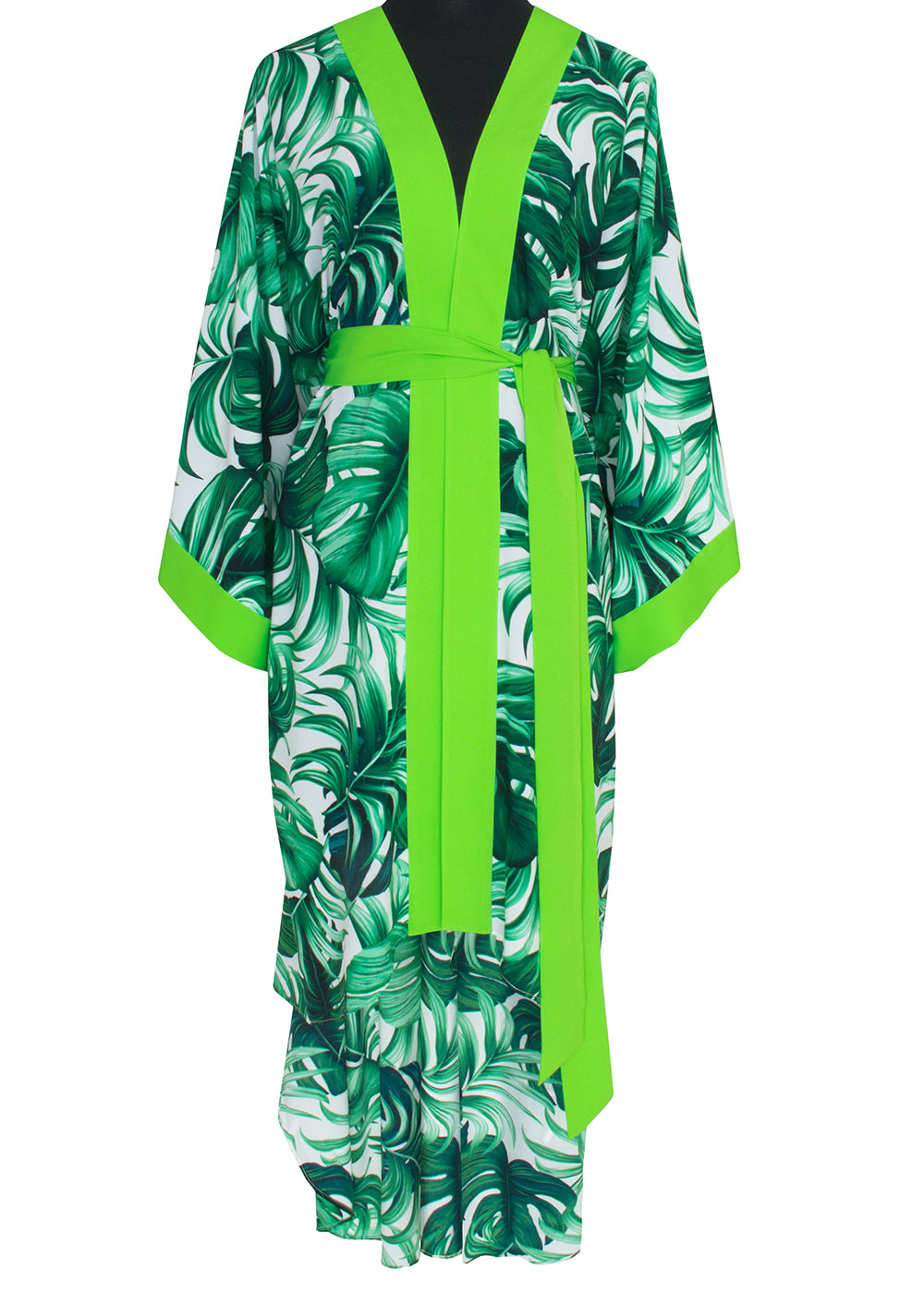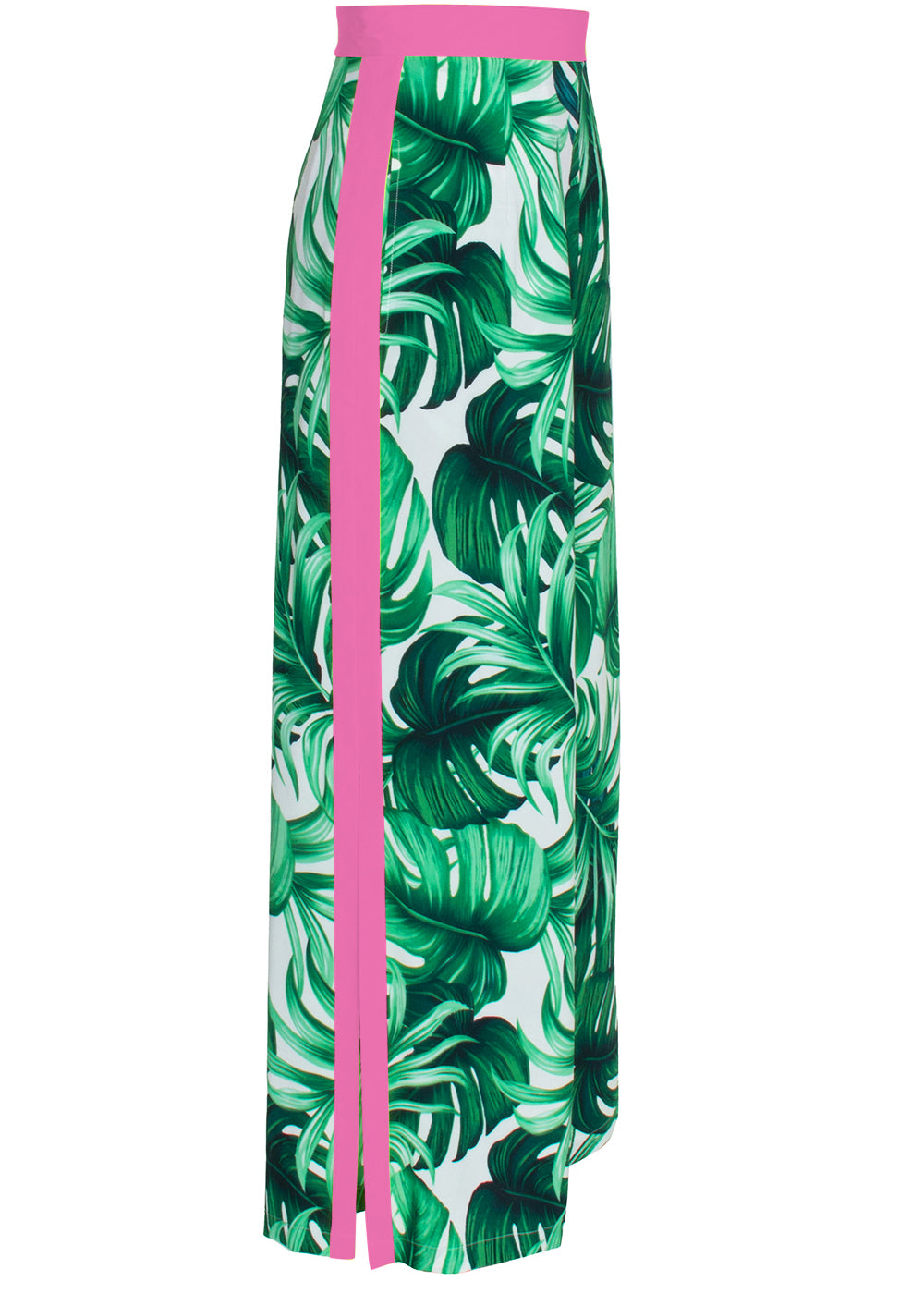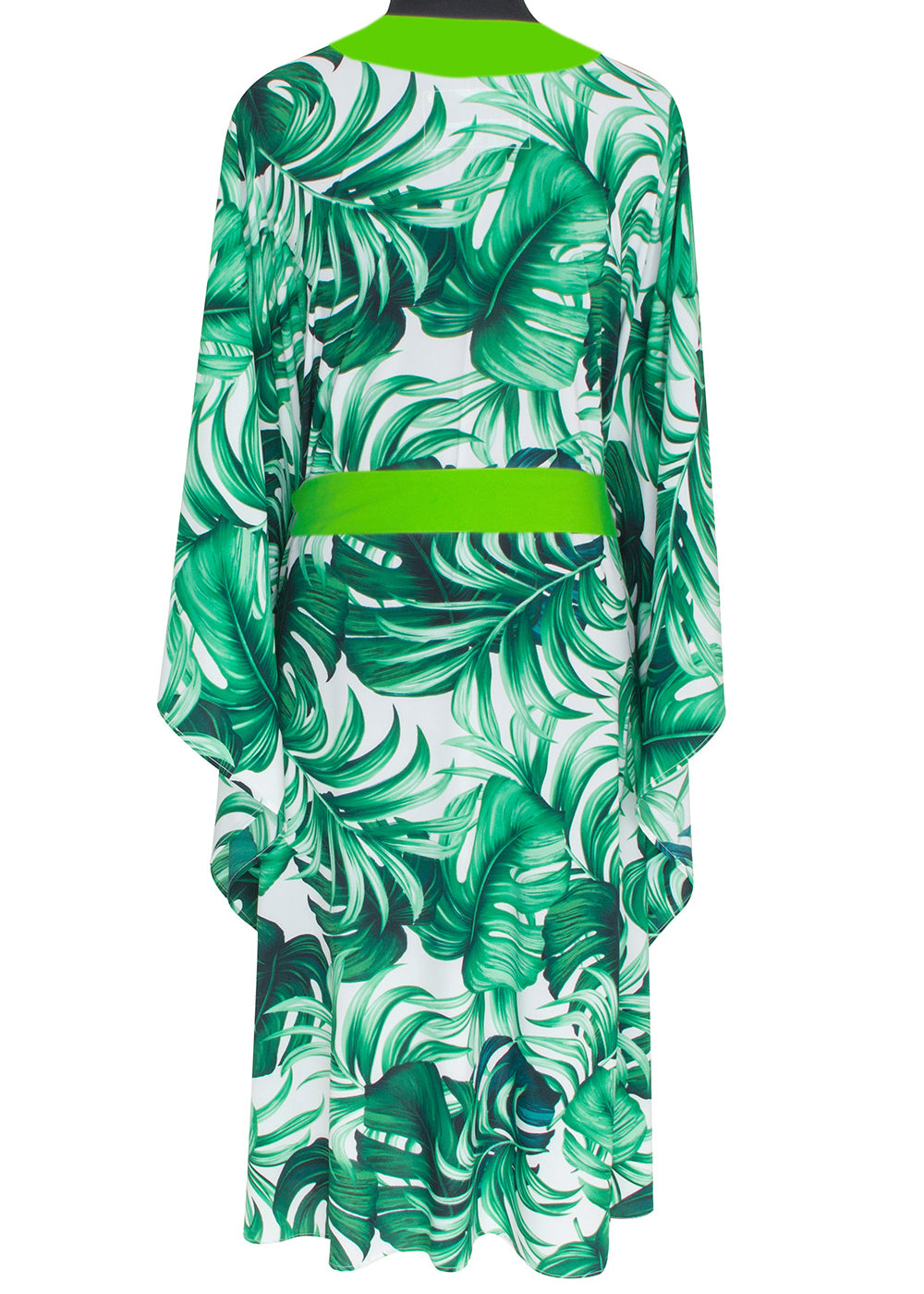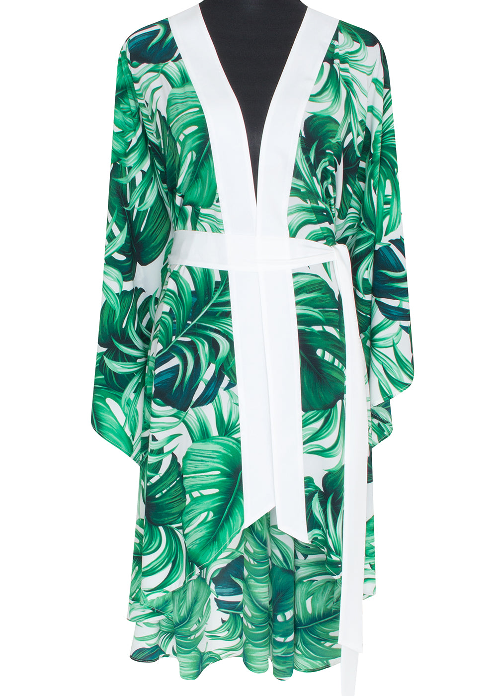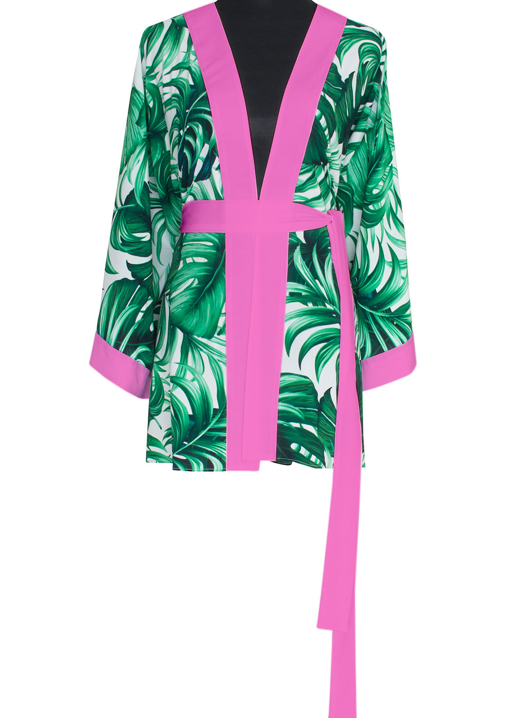 Jungle - Pink Palm Maxi Split Kaftan (Off-White)