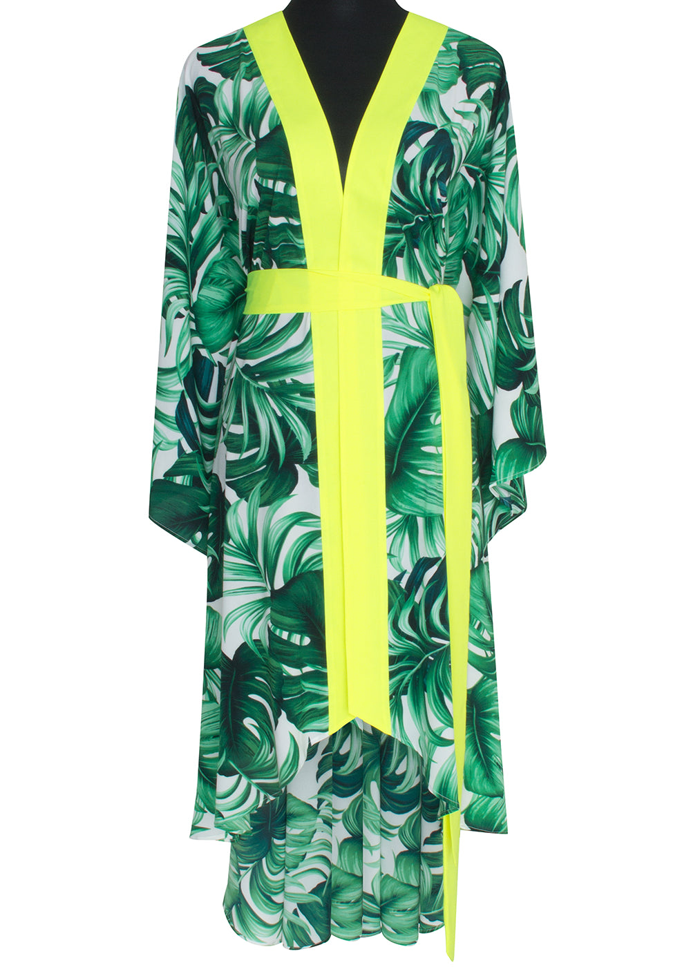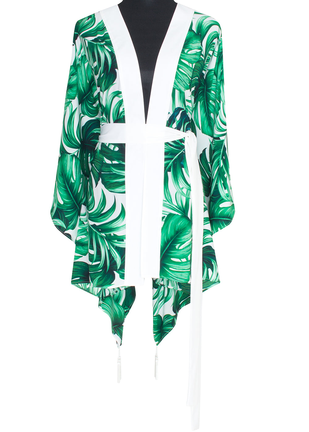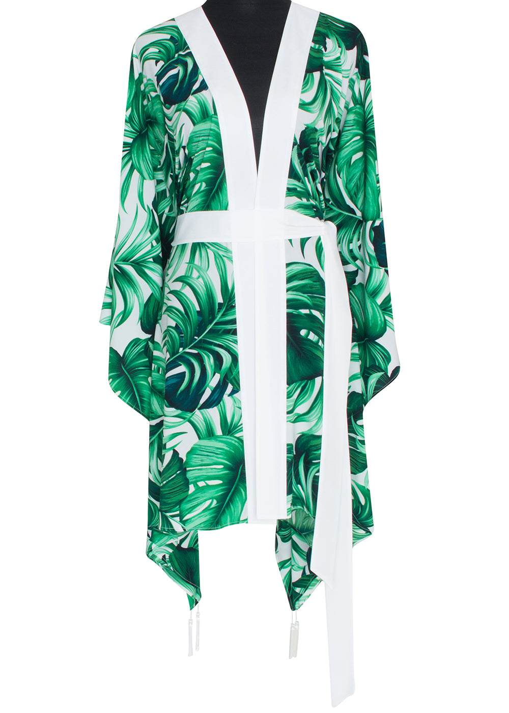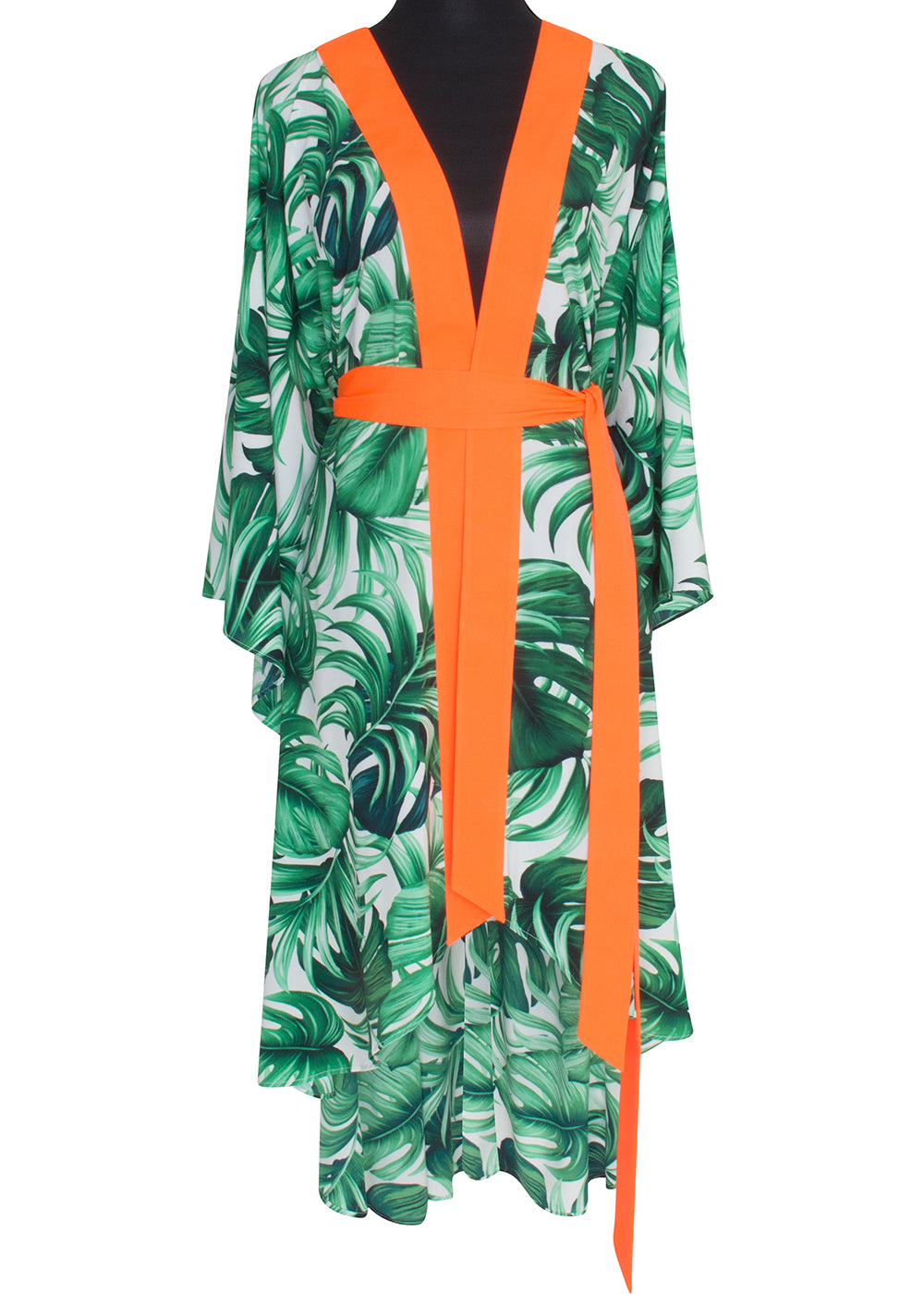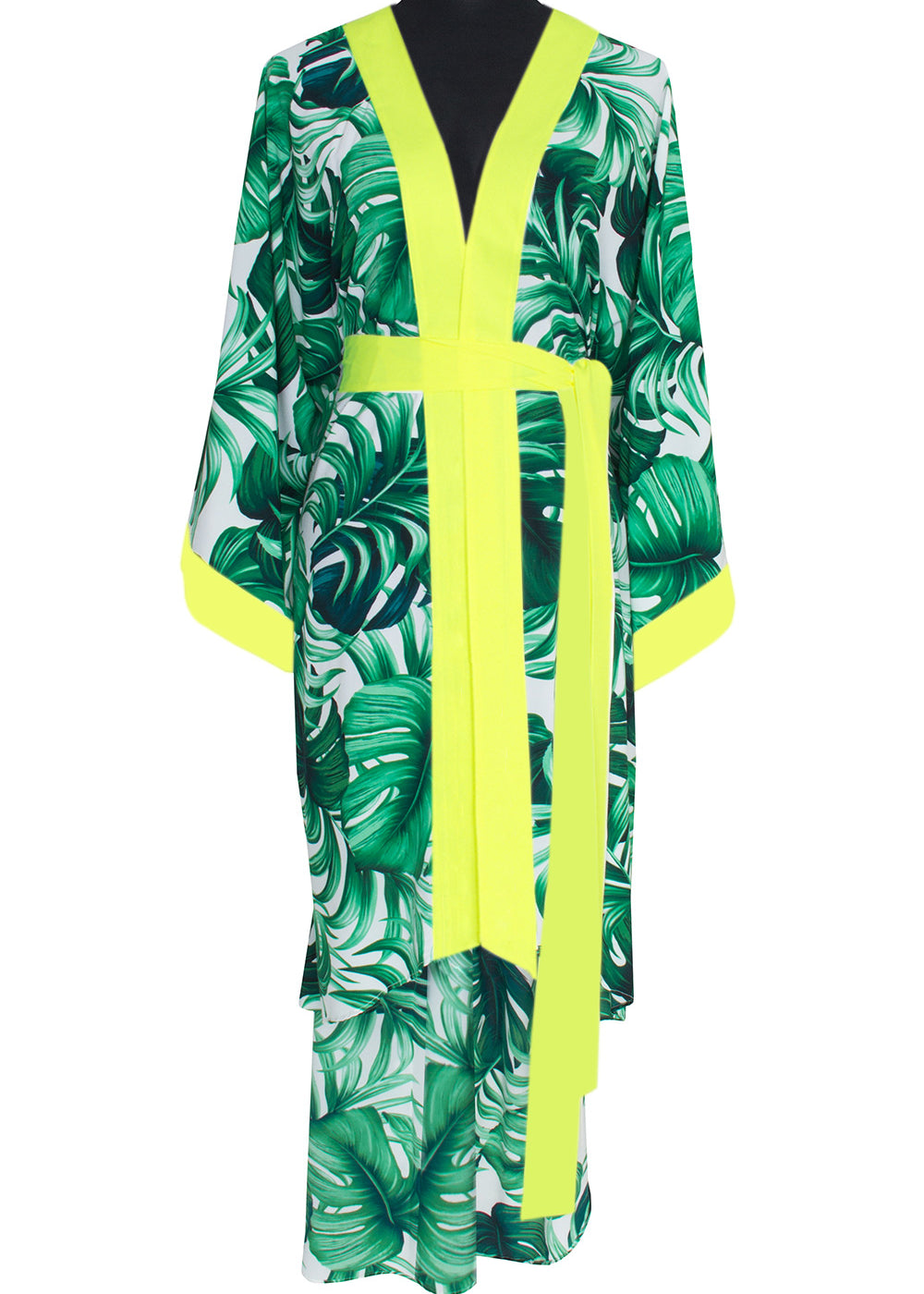 Jungle - Pink Palm Maxi Split Kaftan (Off-White)