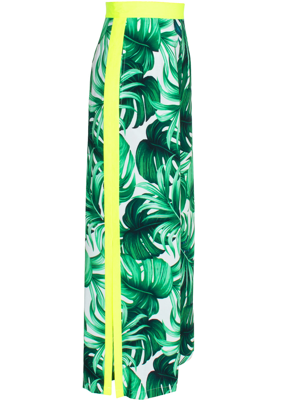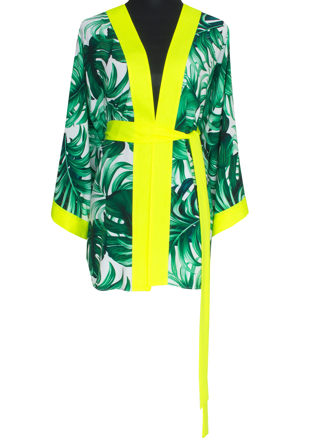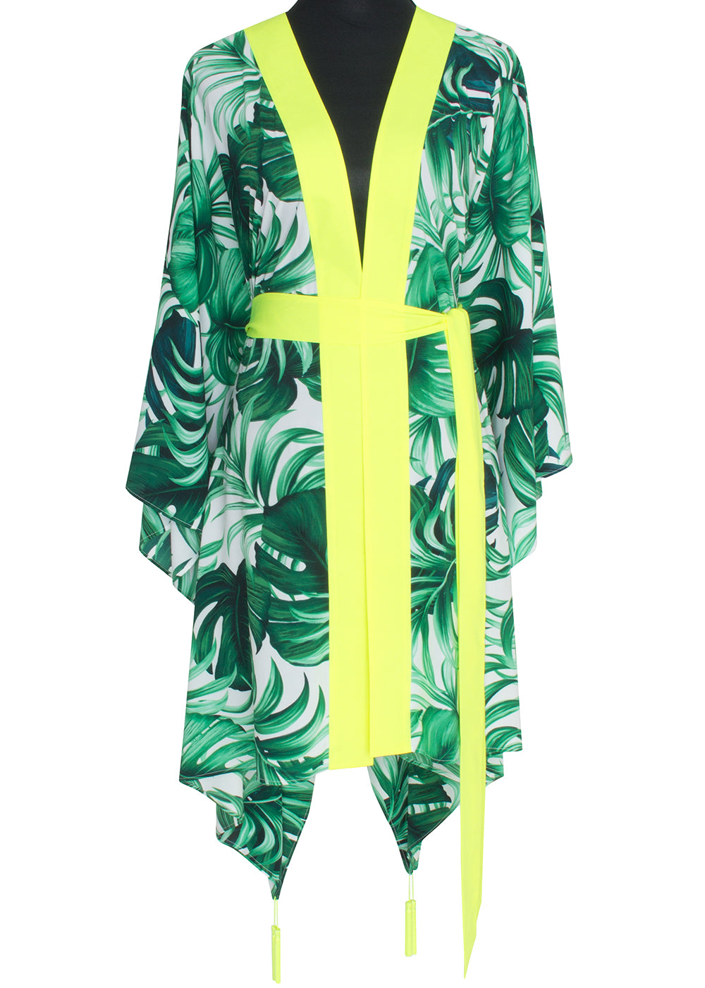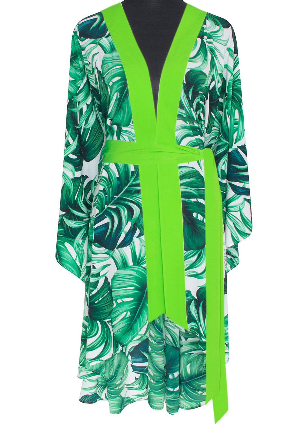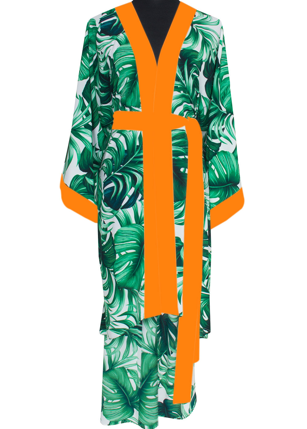 Jungle - Pink Palm Maxi Split Kaftan (Off-White)