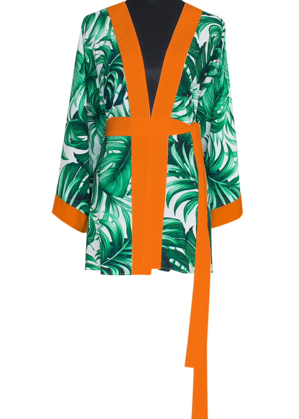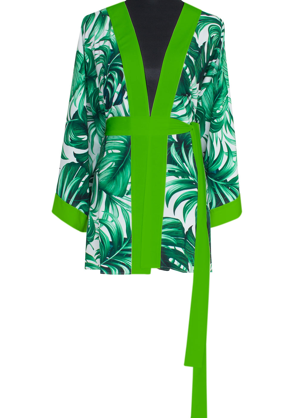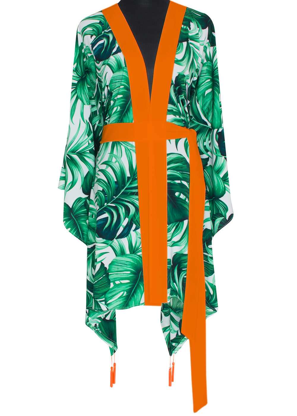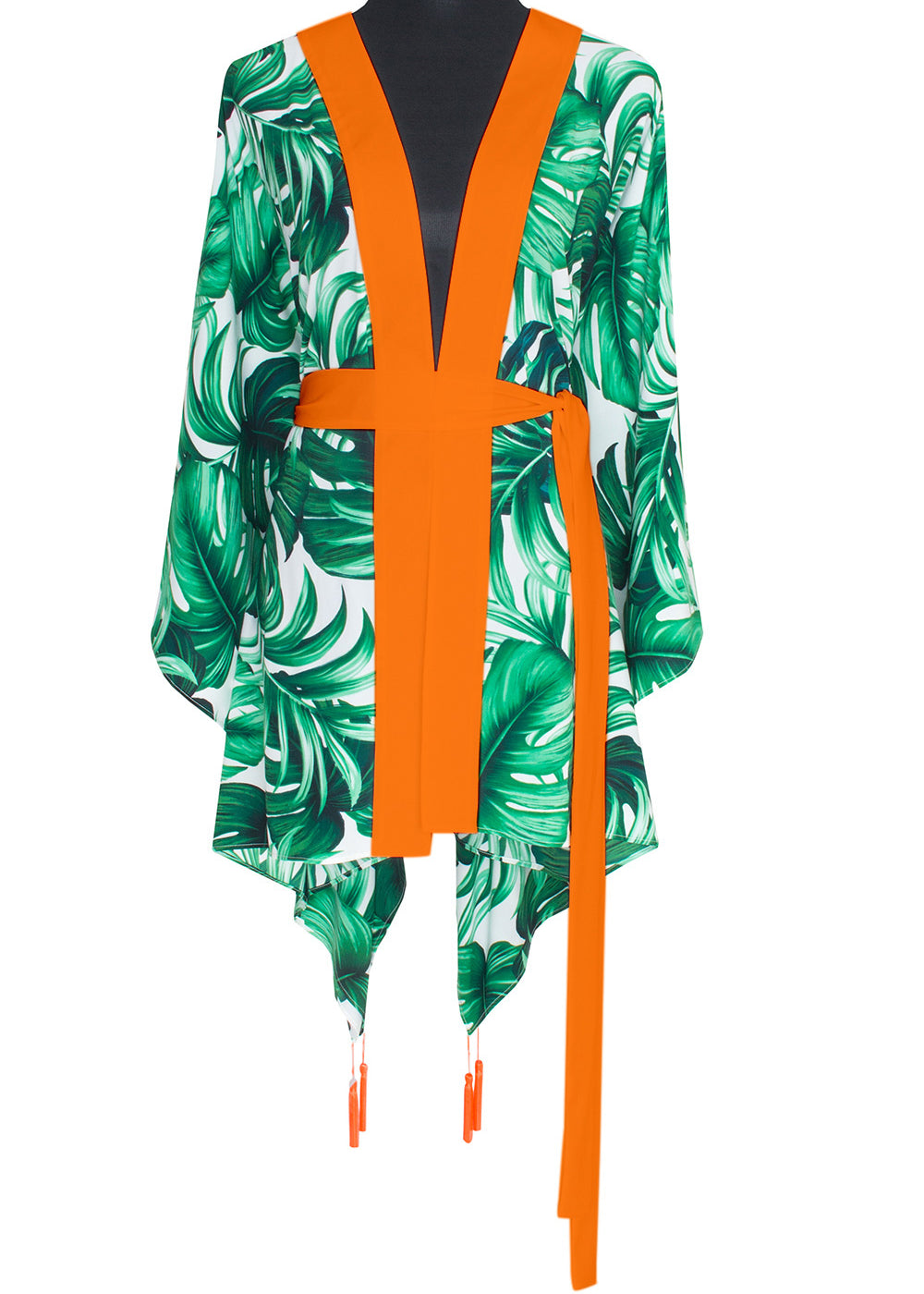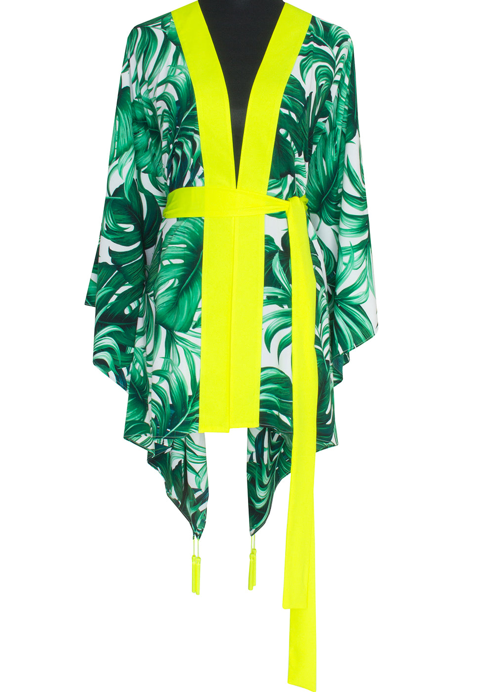 Jungle - Pink Palm Maxi Split Kaftan (Off-White)