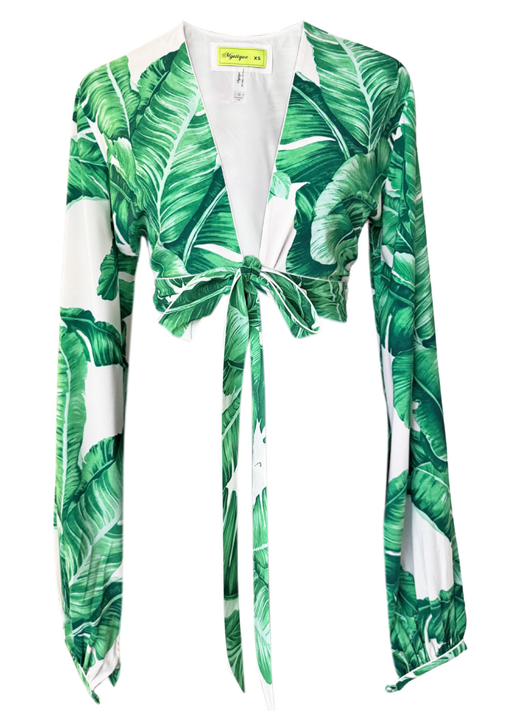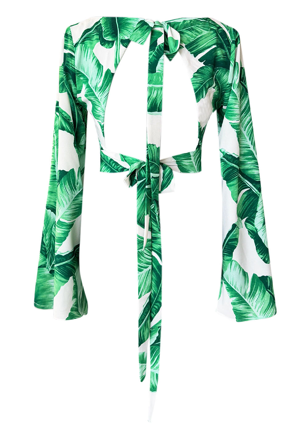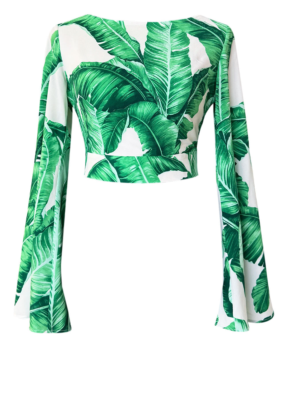Jungle - Green Palm Cropped Blouse (Off-White)