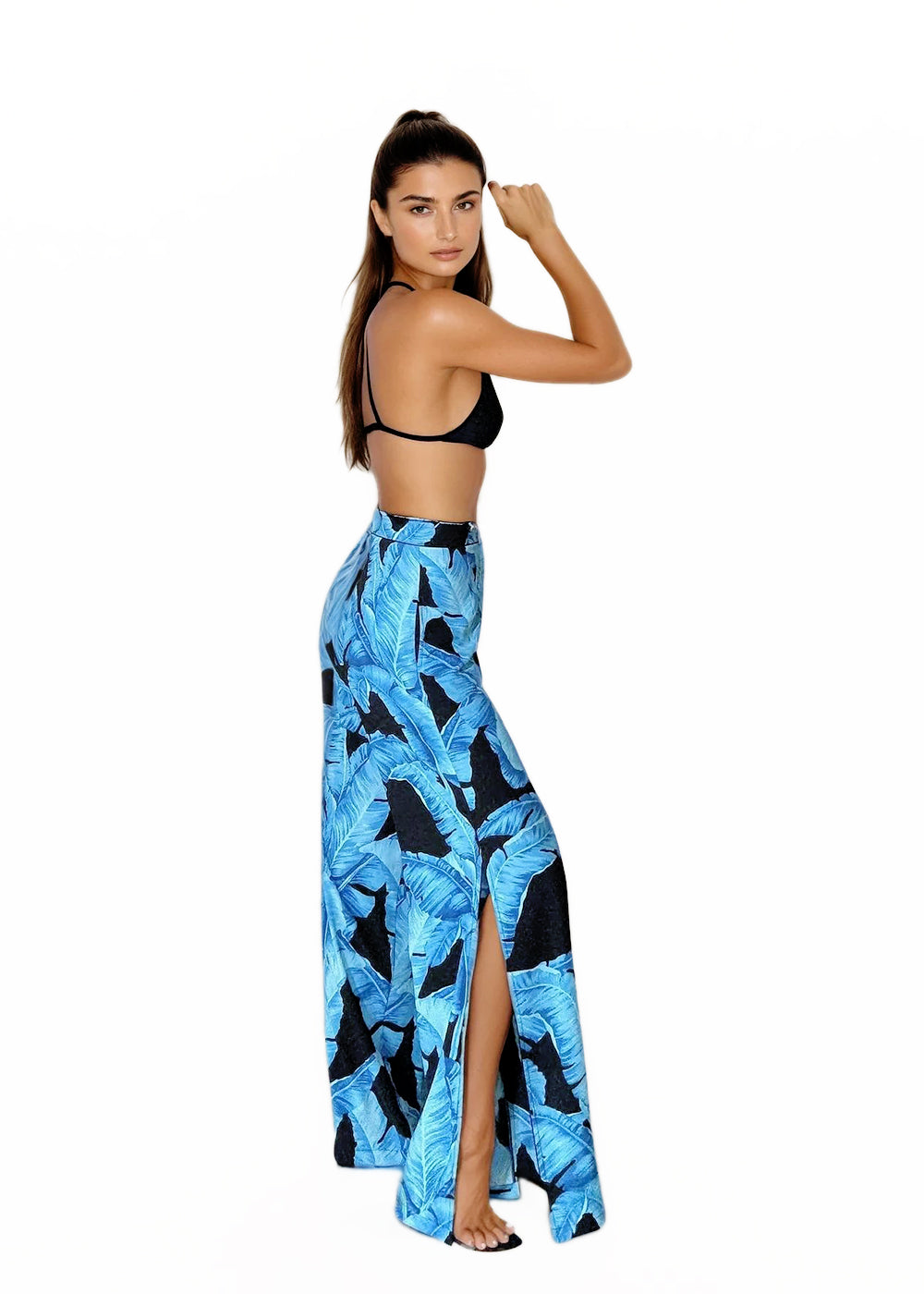 Jungle - Blue Palm Maxi Split Kaftan (Black)