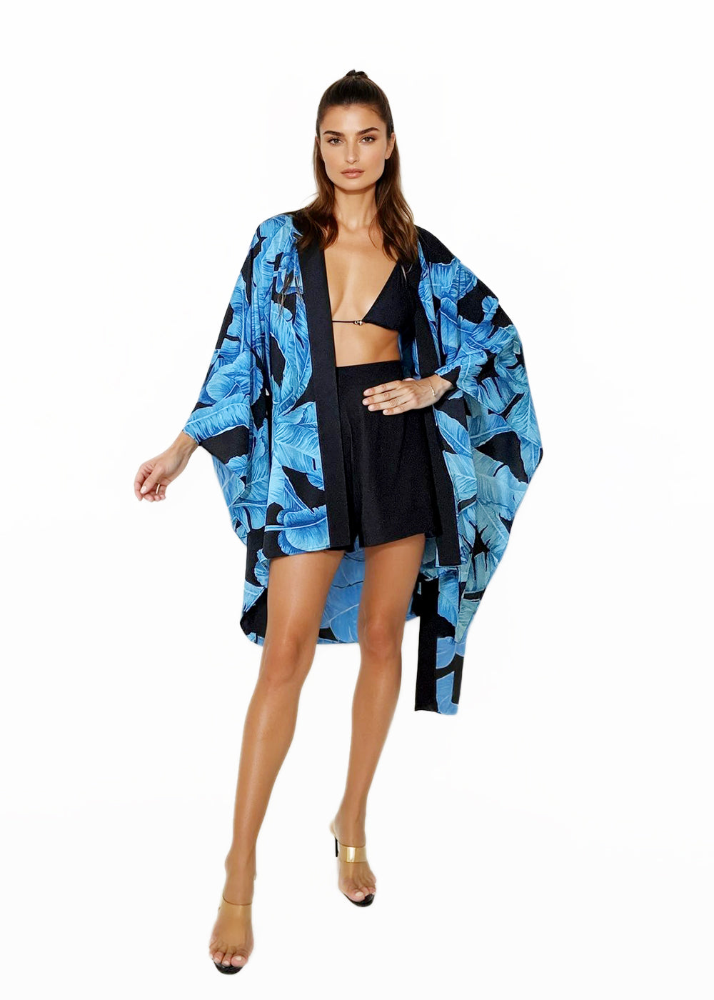 Jungle - Blue Palm Kimono (Black)
