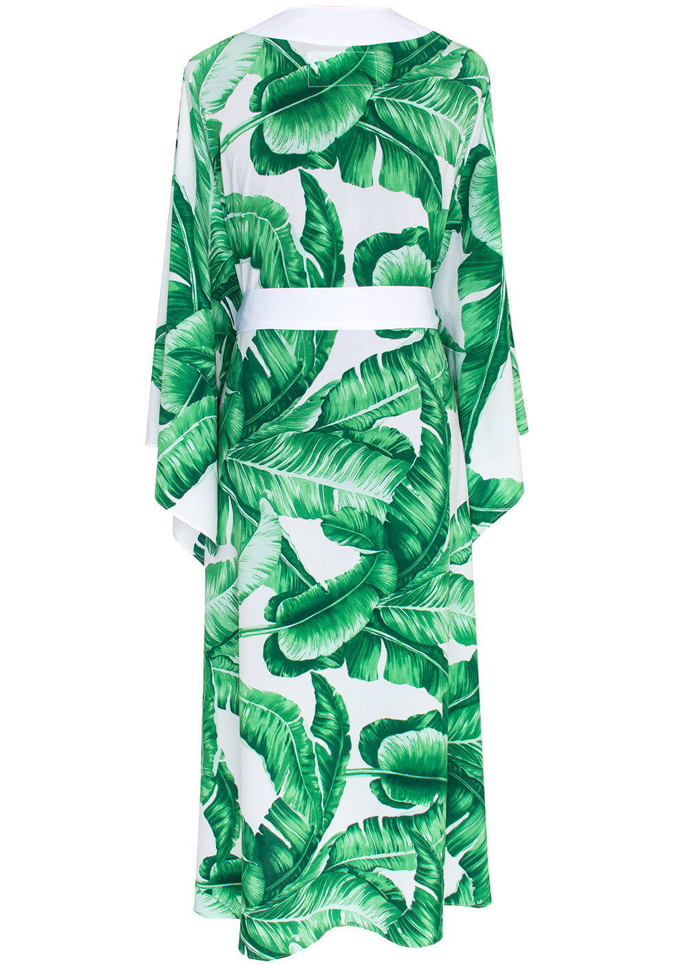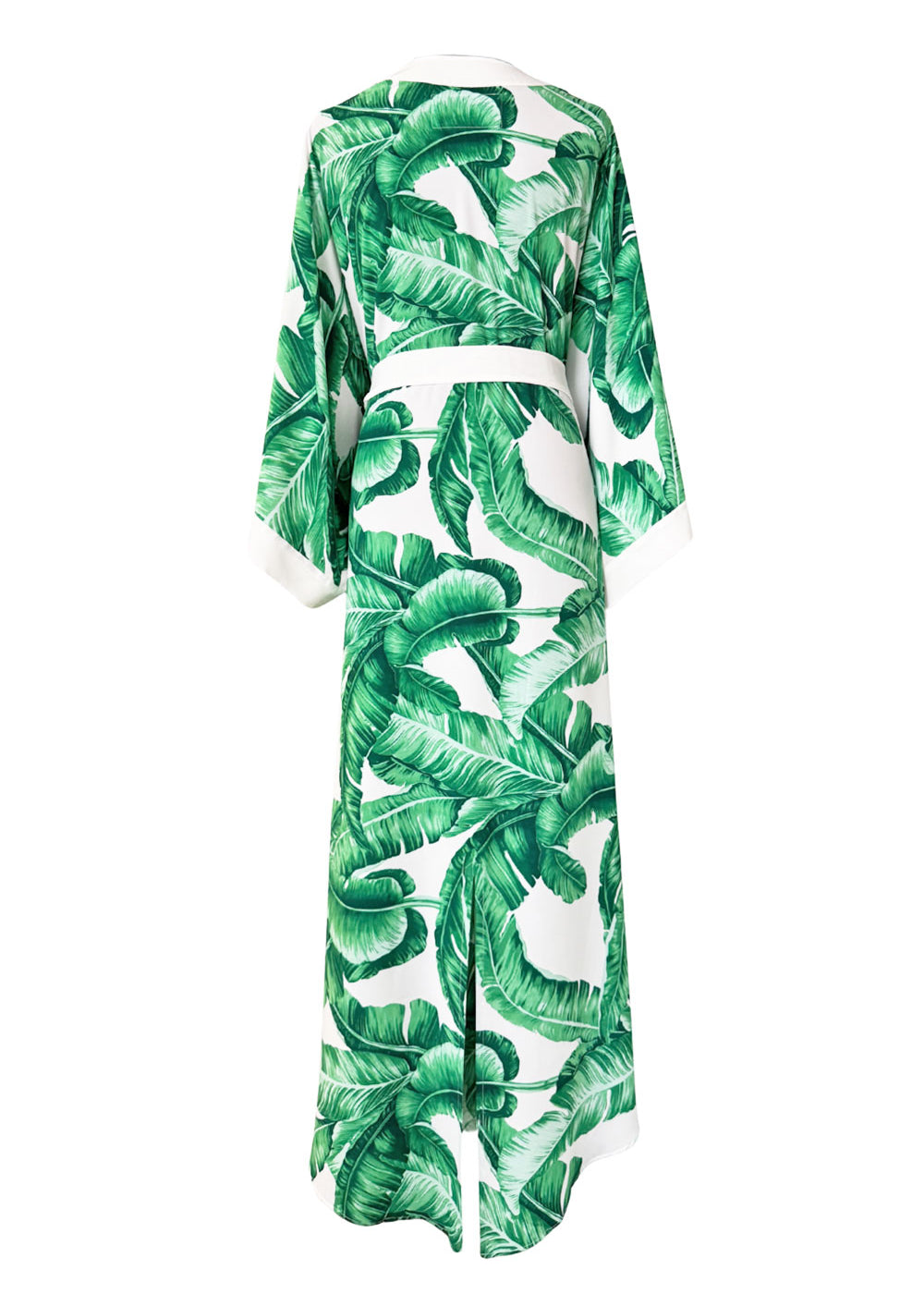 Jungle - Green Palm Maxi Split Kaftan (Off-White)