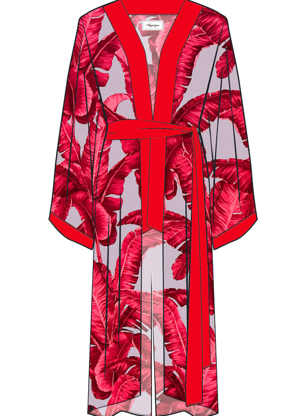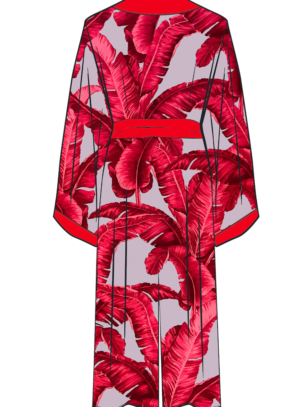 Jungle - Red / Grey Palm Kimono (Red)