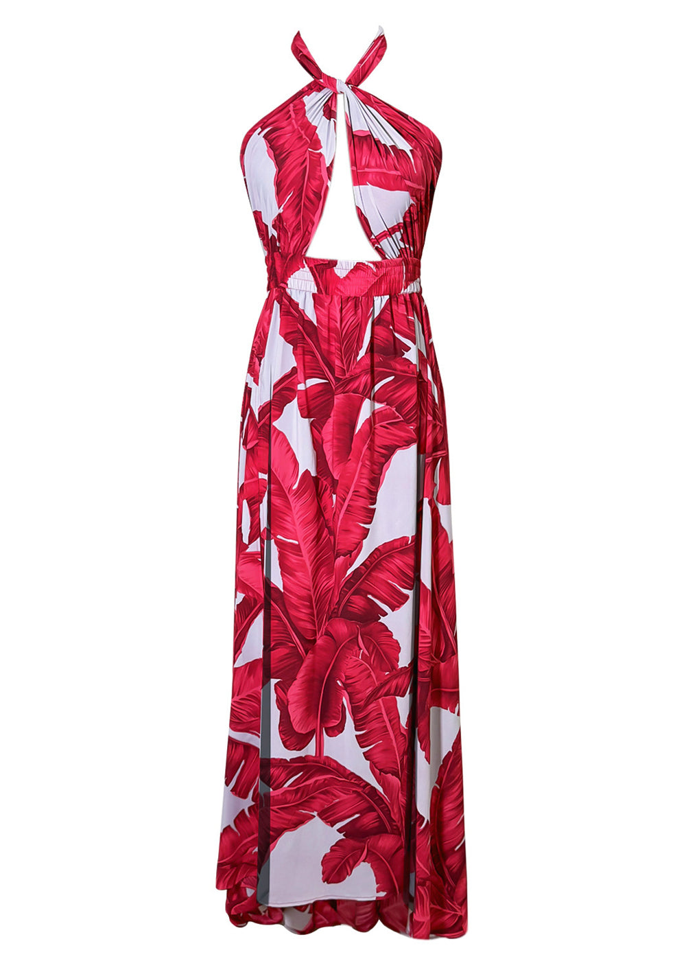 Jungle - Red / Grey Palm Maxi Split Kaftan (Red)