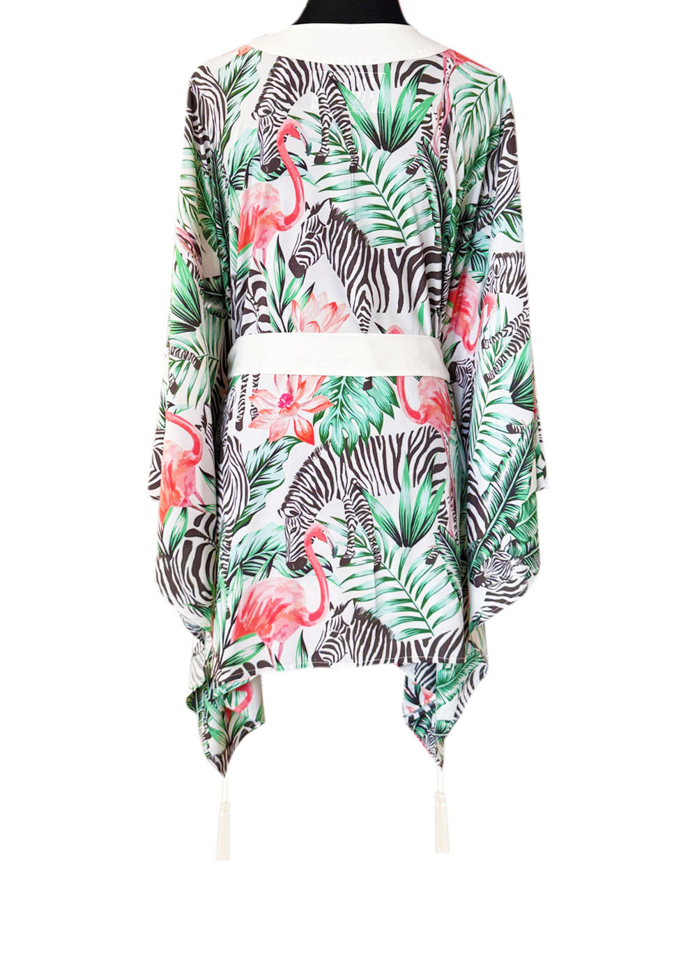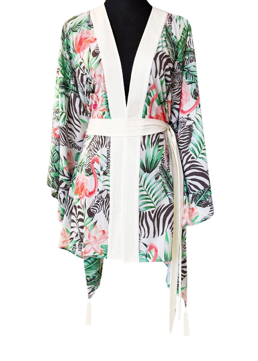 Tropics - Flamingo/Zebra Kimono (Off-White) - Short