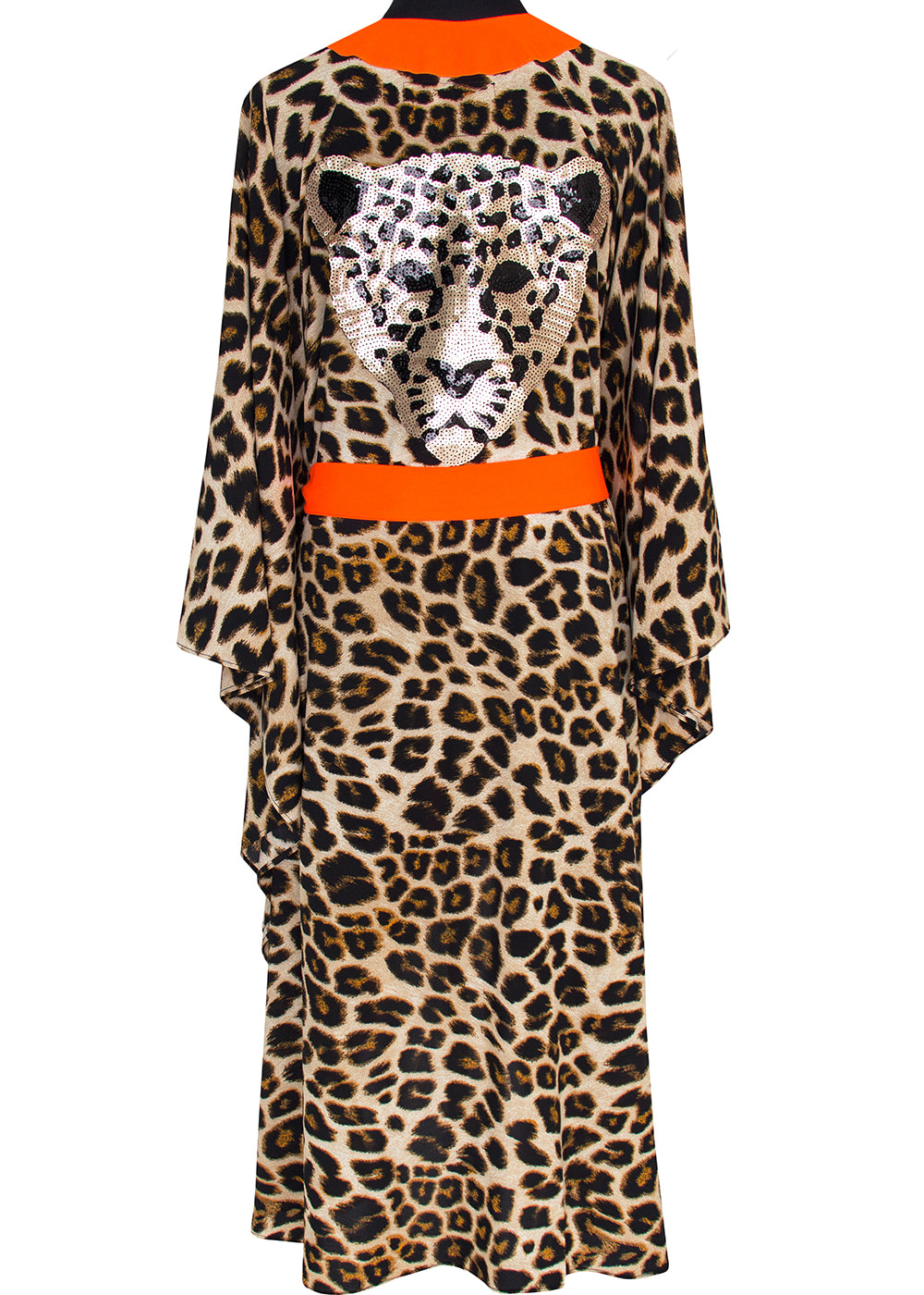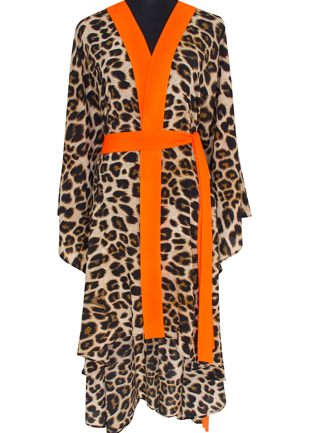 Safari - Orange Leopard Kimono Panther (Neon Orange) - Long