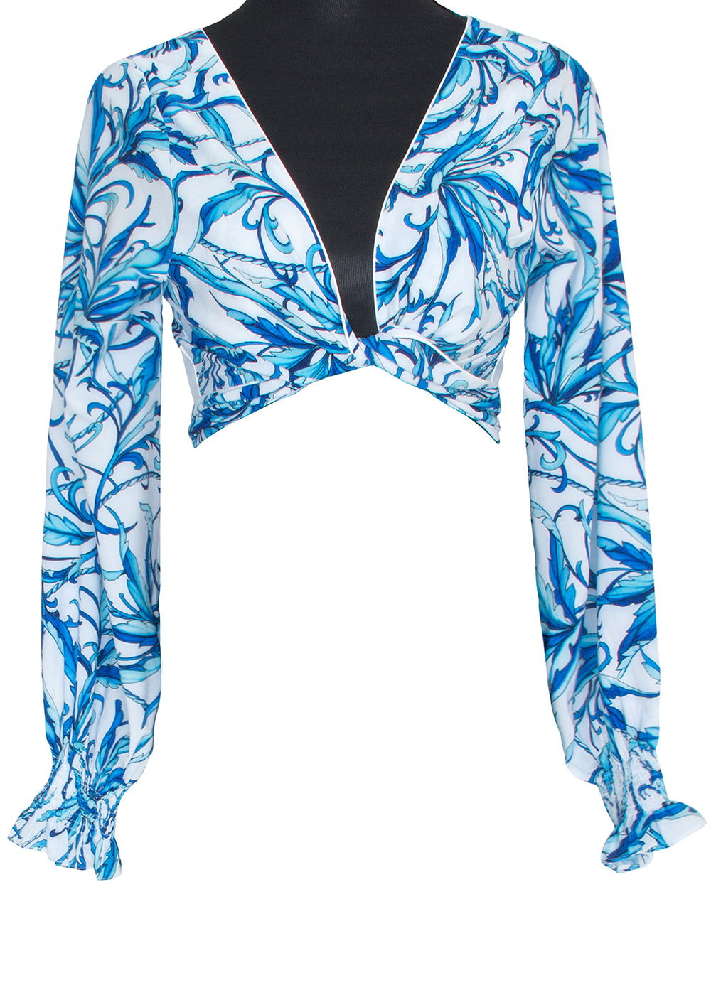 Siciliana - Gia Cropped Blouse (Royal Blue)
