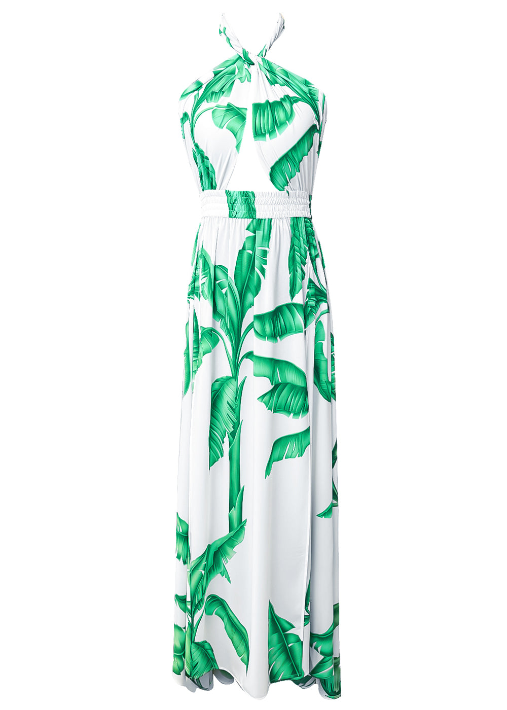 Jungle – White Palm Maxi Split Kaftan (Off-White)