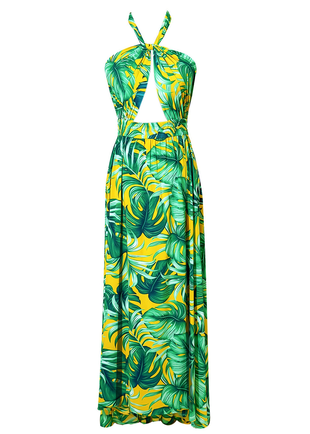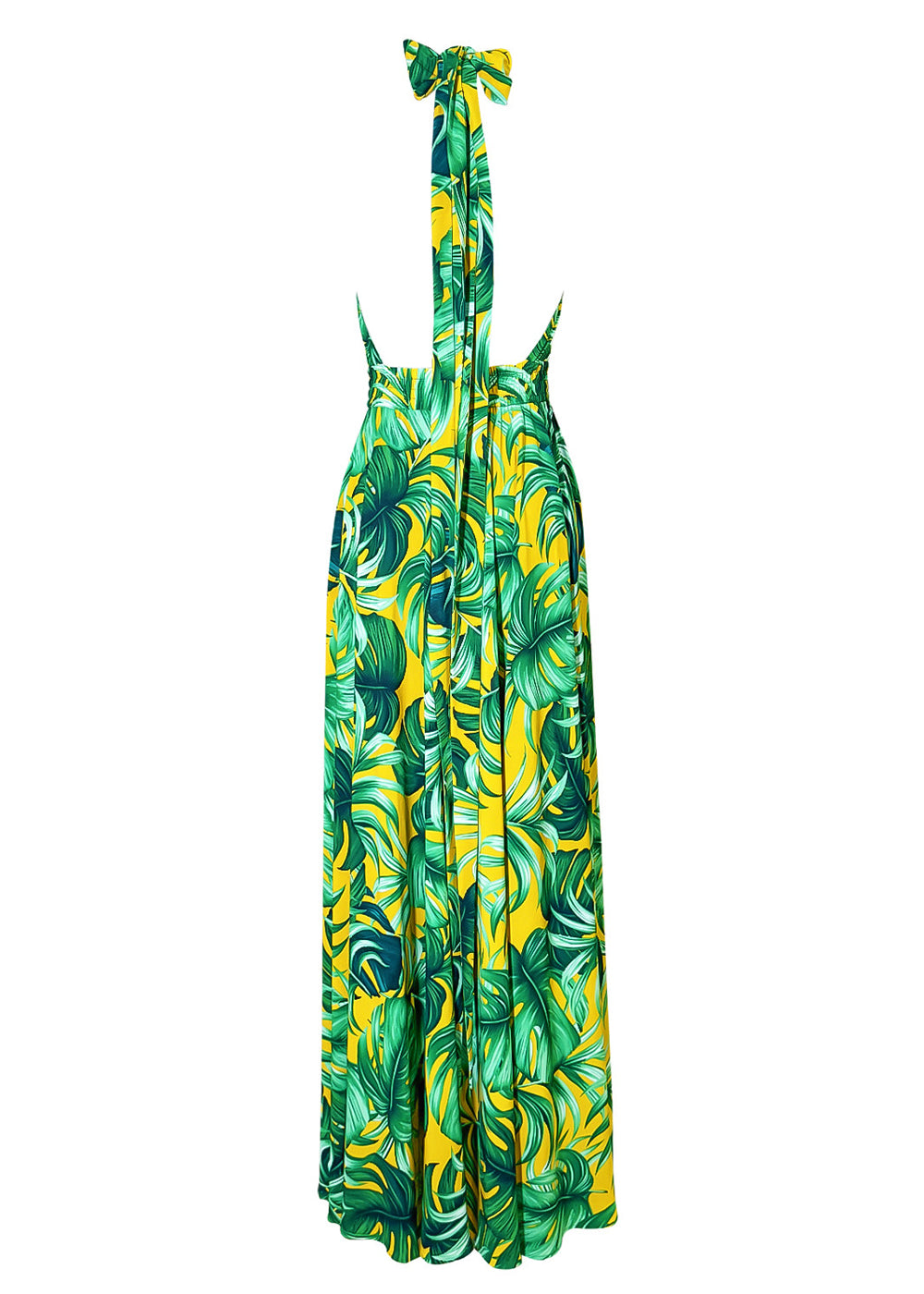 Jungle - Gold Palm Maxi Split Kaftan (Black)