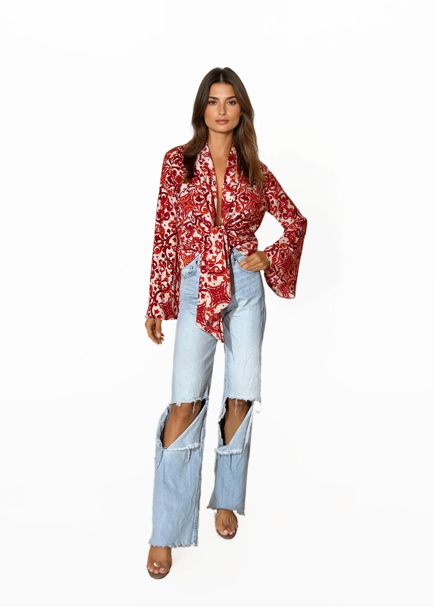 Jungle - Green Palm Cropped Blouse (Off-White)