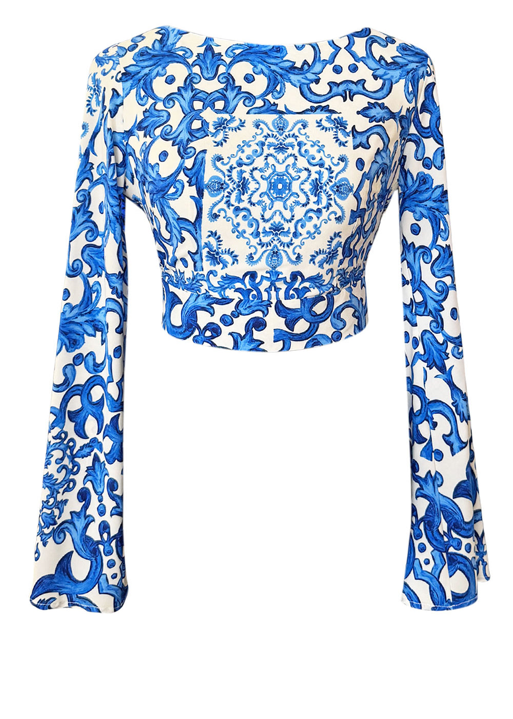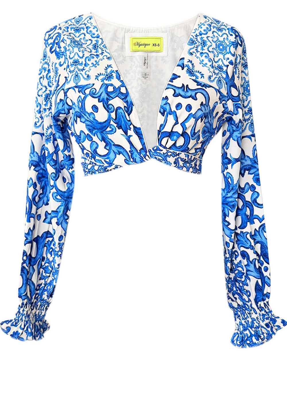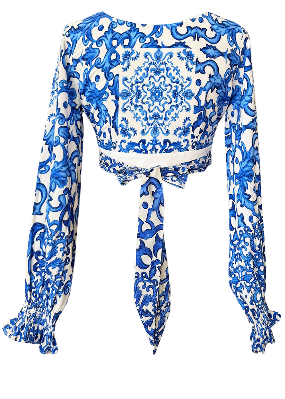 Siciliana - Blu Sicilia Cropped Blouse (Off-White)