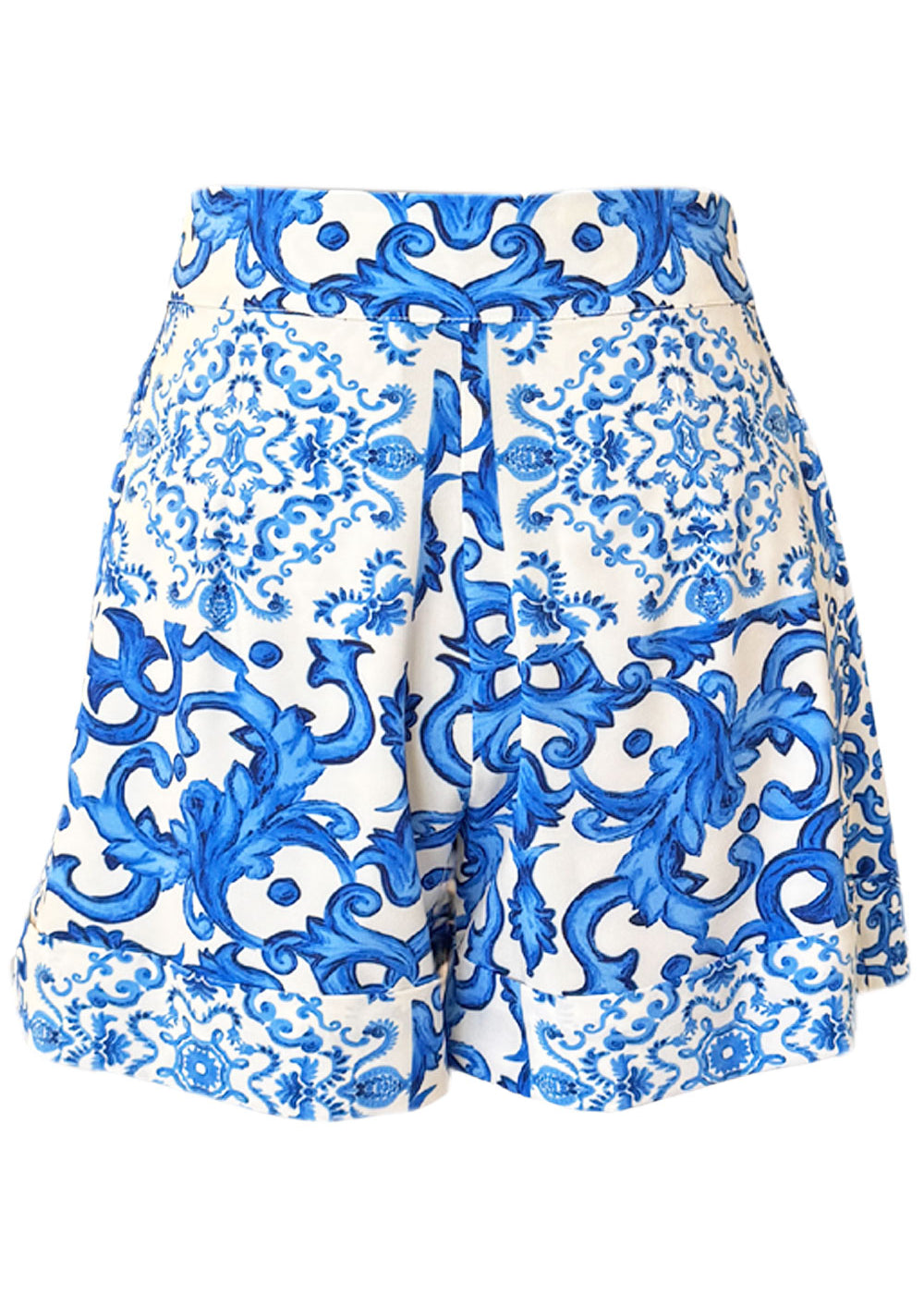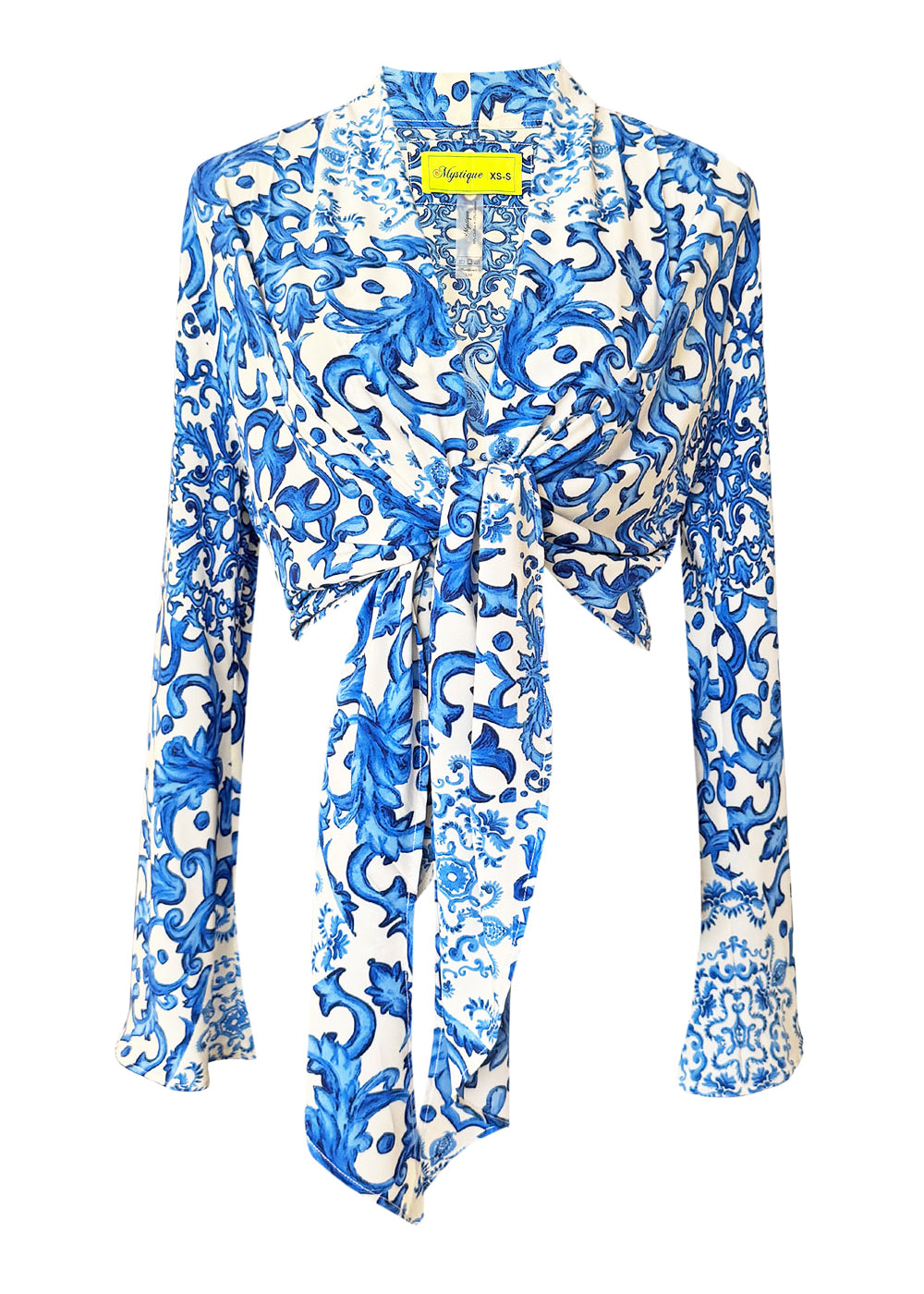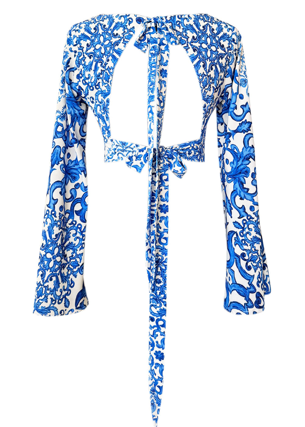 Siciliana - Blu Sicilia Cropped Blouse (Off-White)