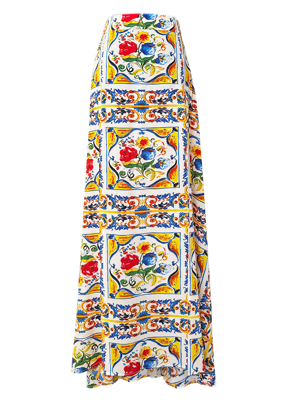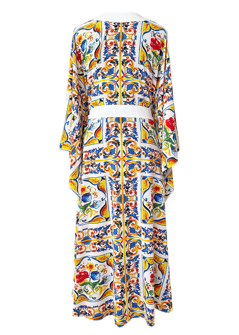Siciliana - Fiori di Sicilia Maxi Split Kaftan (Off-White)