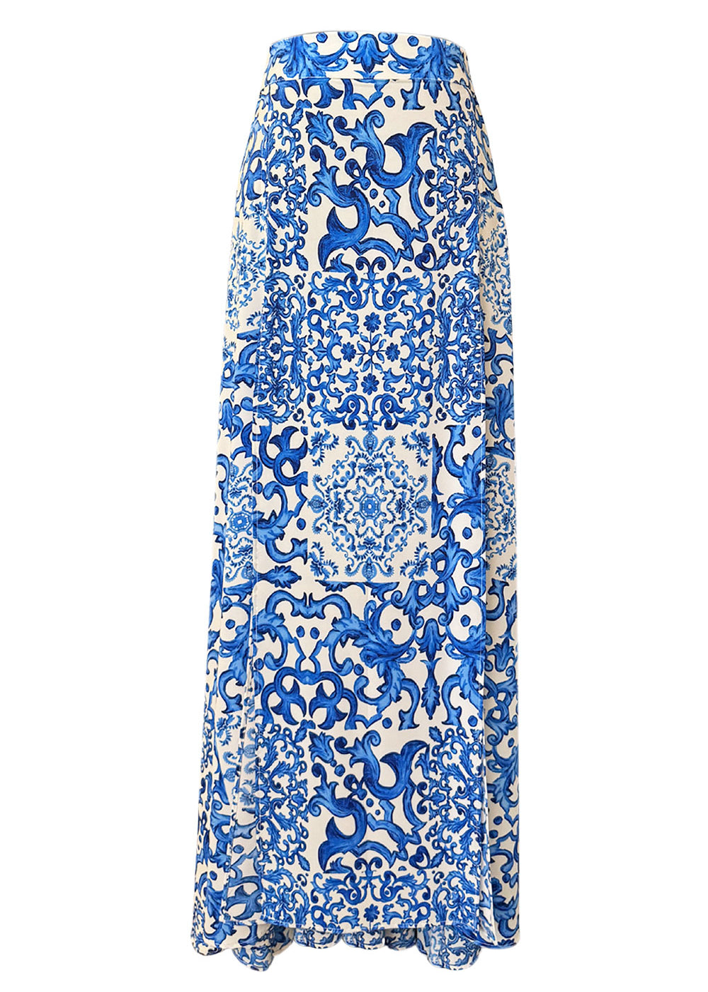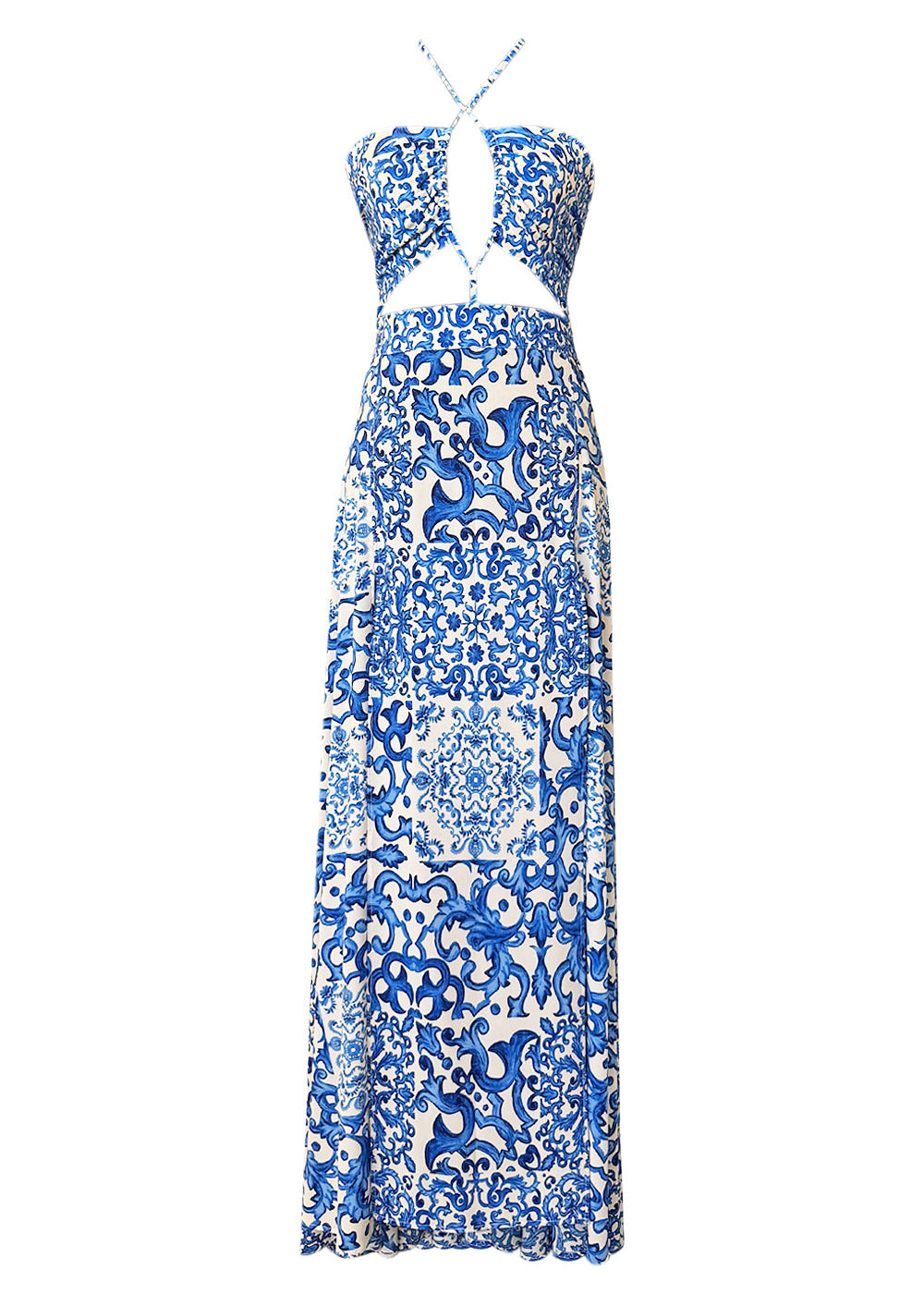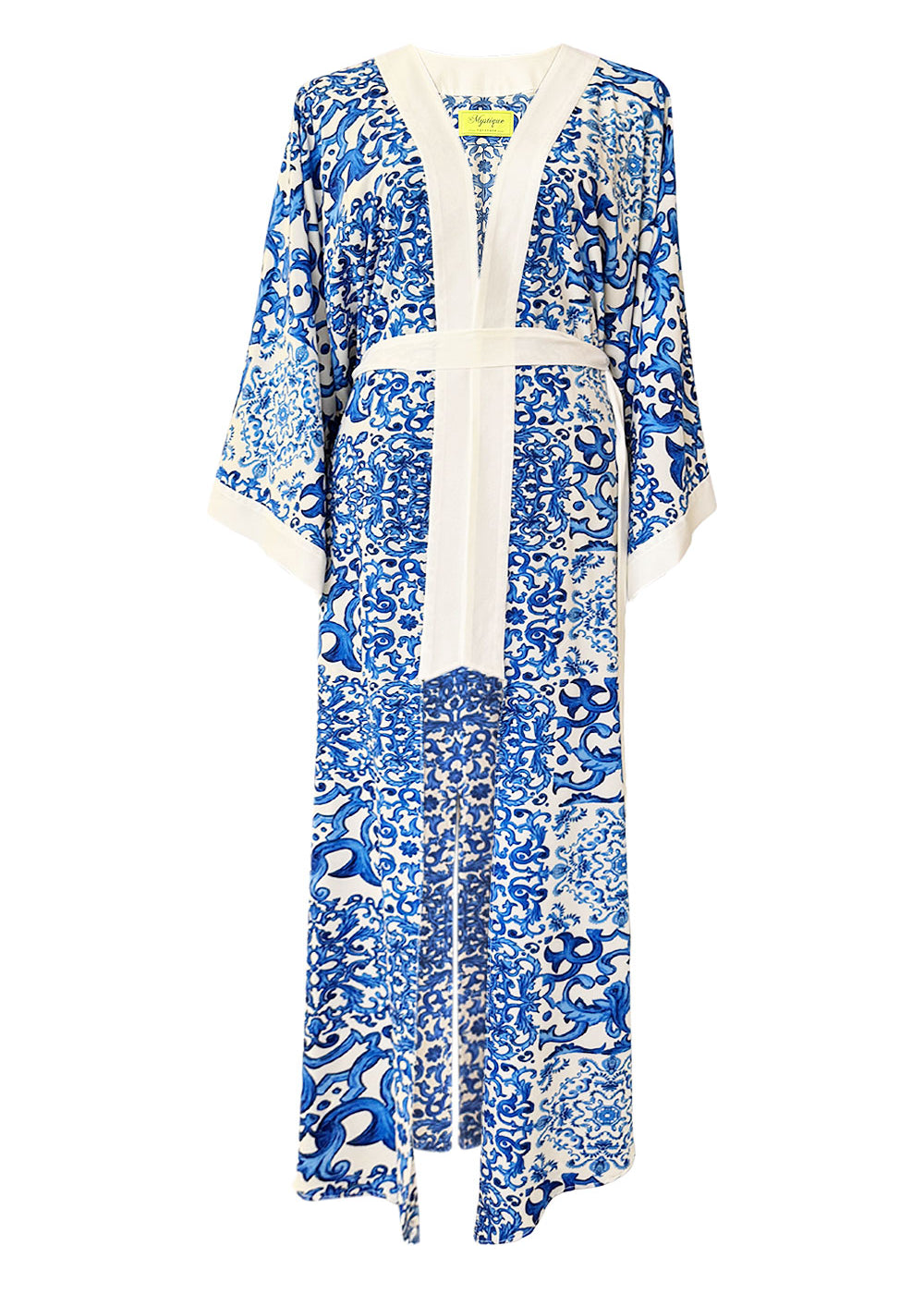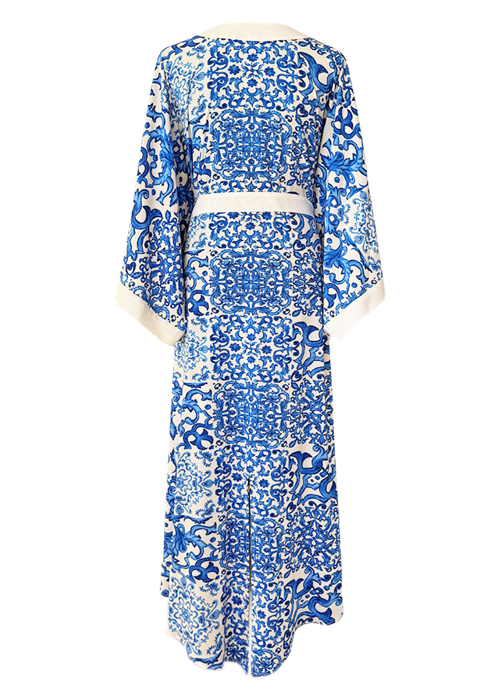 Siciliana - Blu Sicilia Maxi Split Kaftan (Off-White)