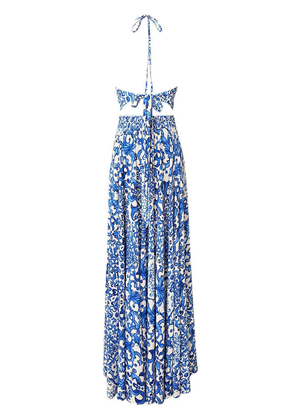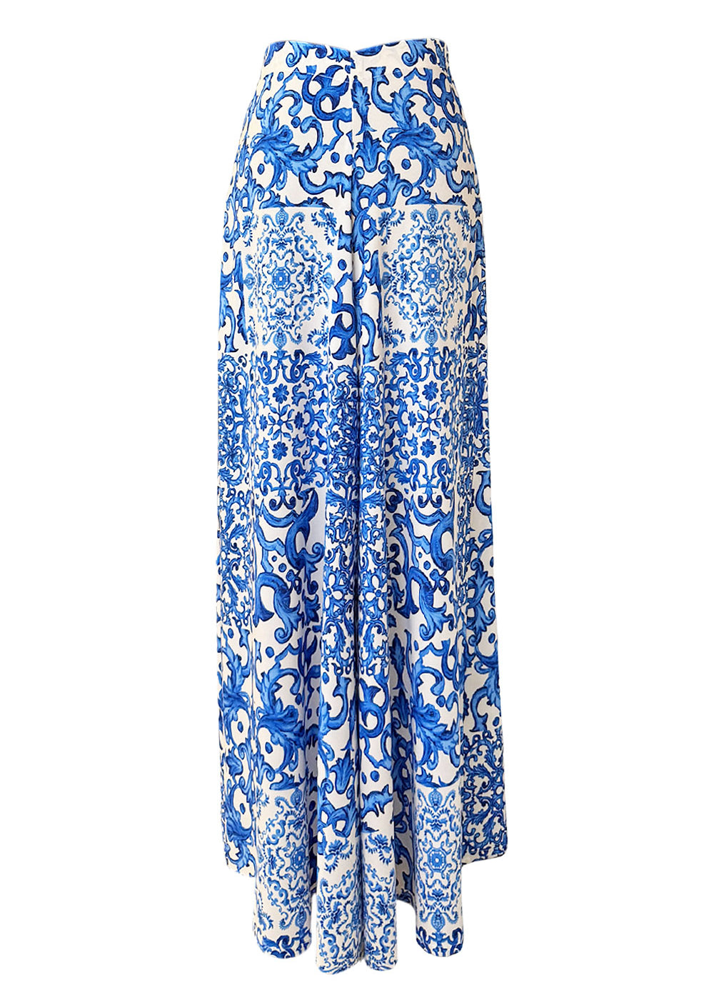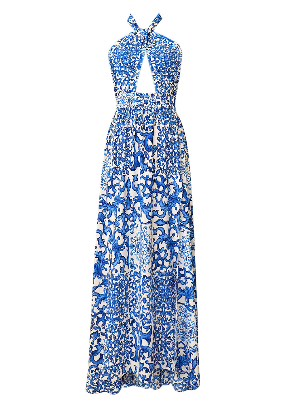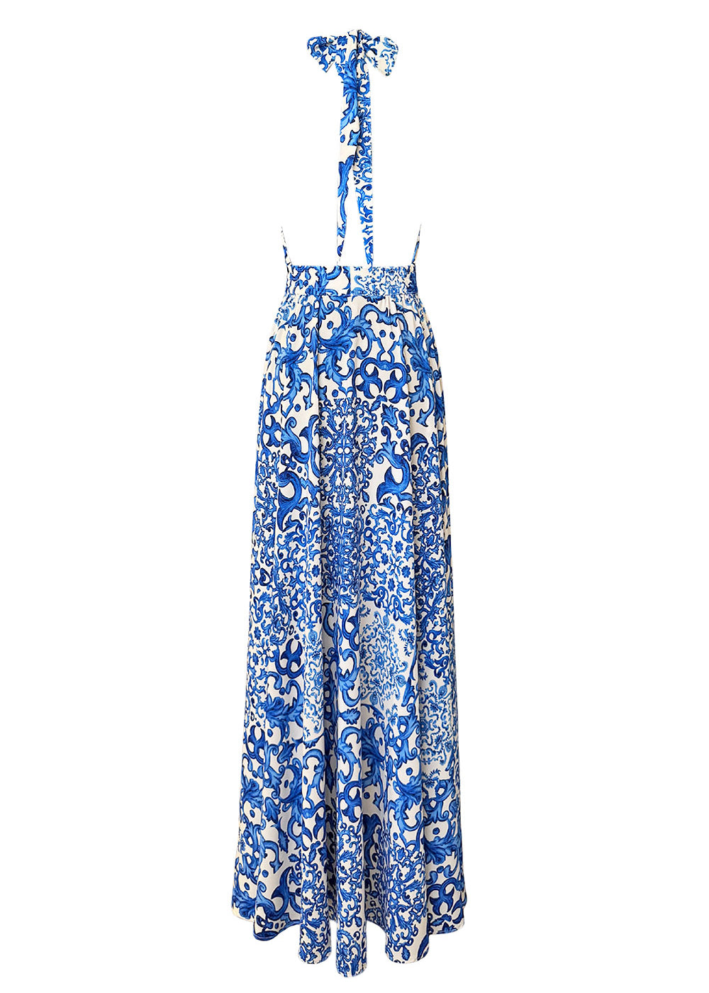 Siciliana - Blu Sicilia Maxi Split Kaftan (Off-White)