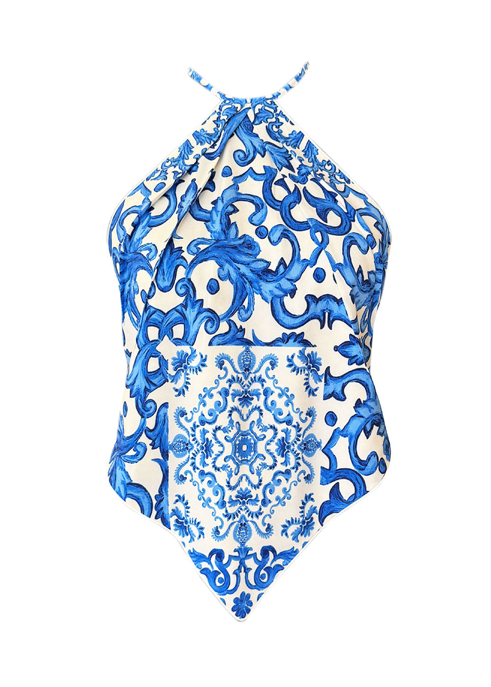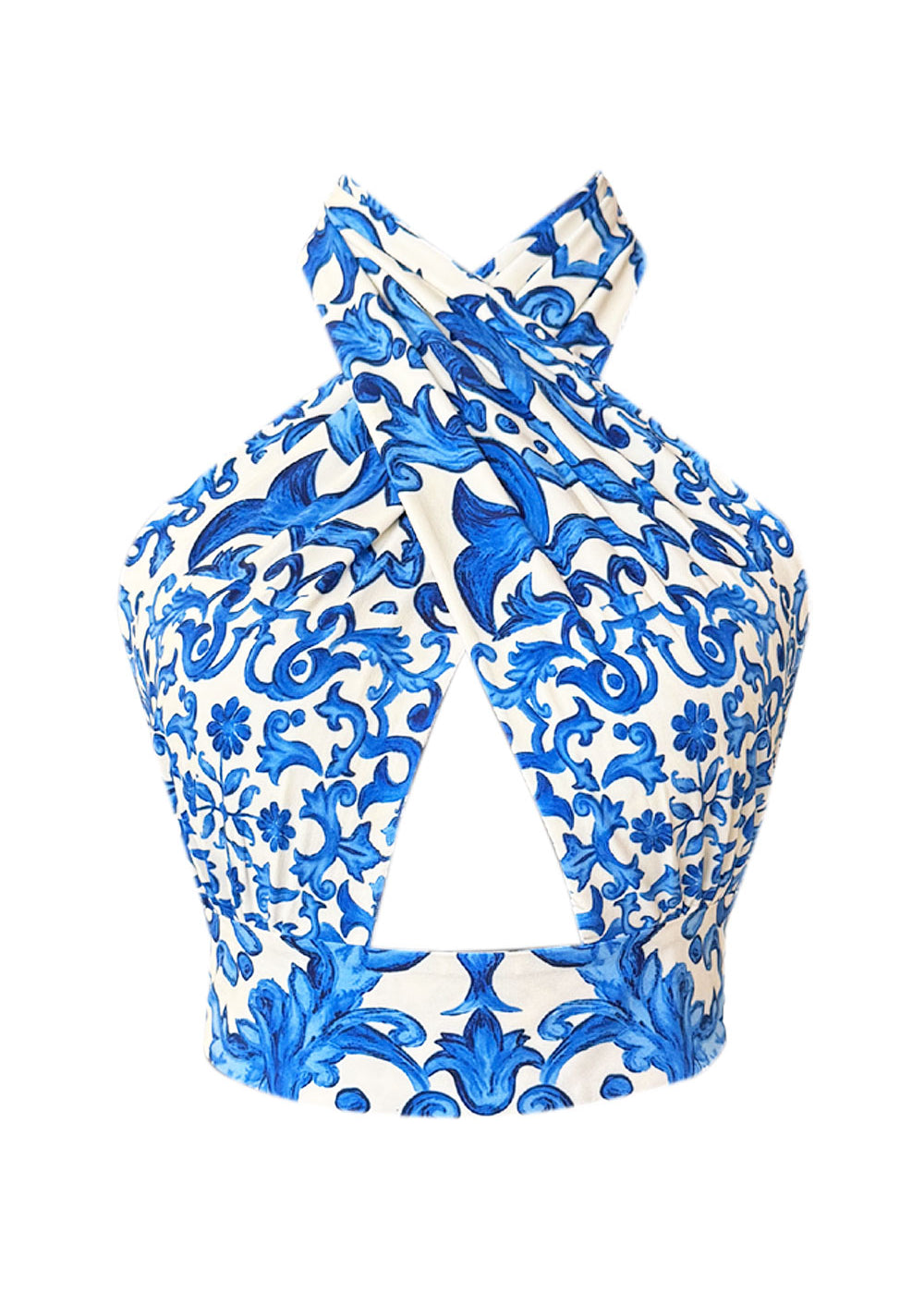 Siciliana - Blu Sicilia Crop Top (Off-White)