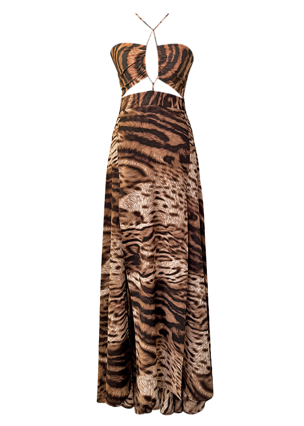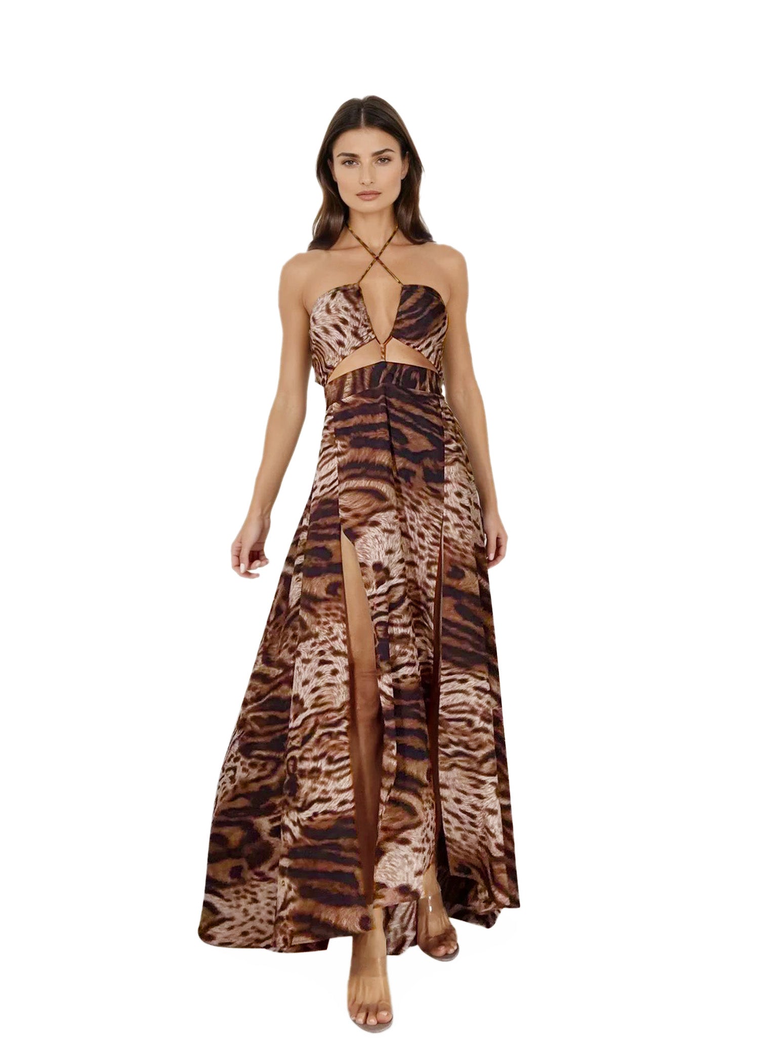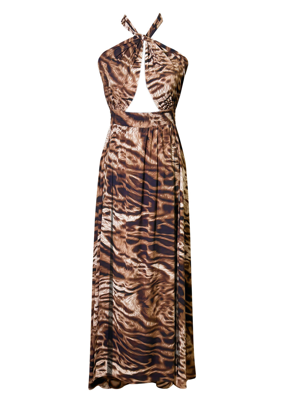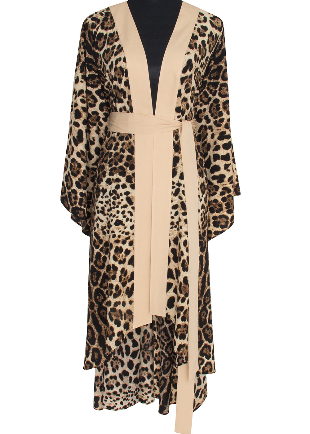 Safari - Grey Leo Maxi Split Kaftan (Light Taupe)