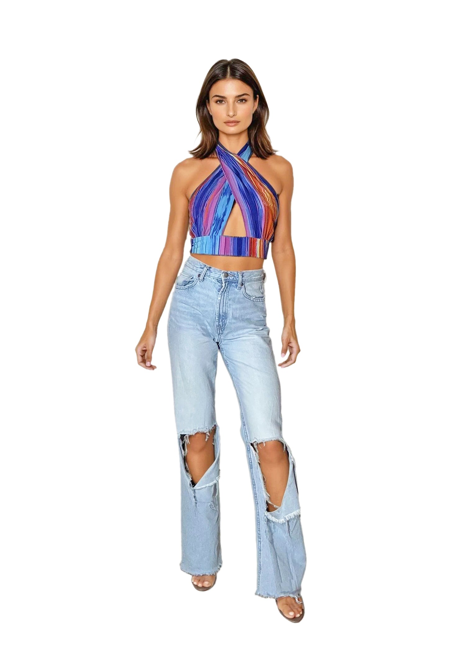 Tribal - Panacea Cropped Blouse (Baby Blue)