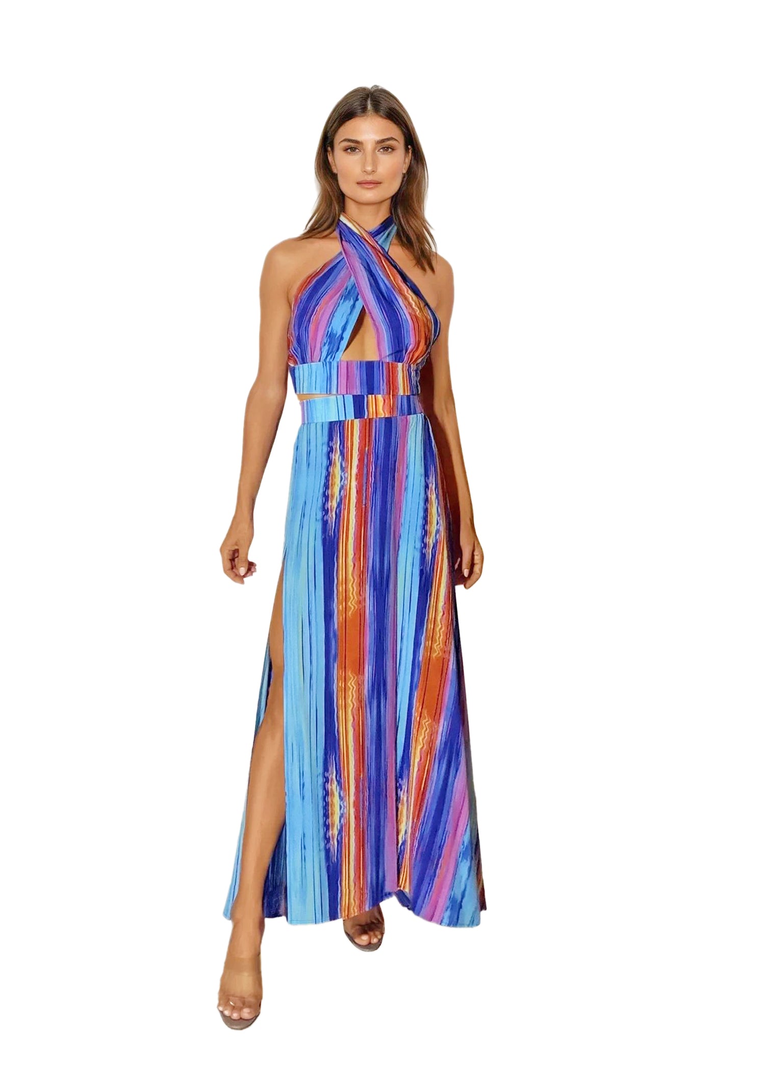 Tribal - Waterfall Maxi Split Kaftan (Royal Blue)