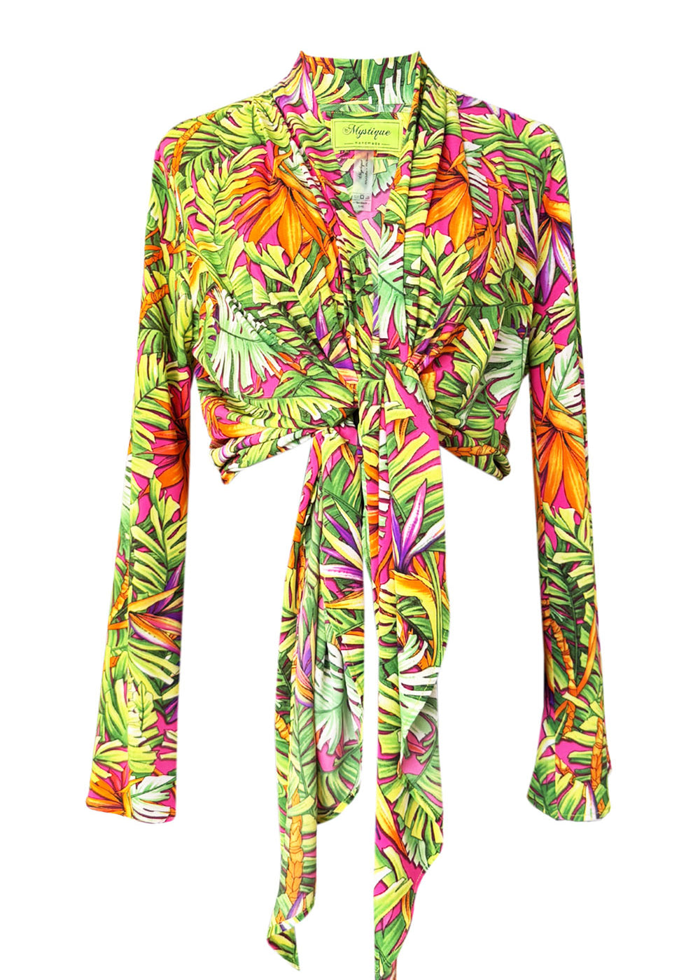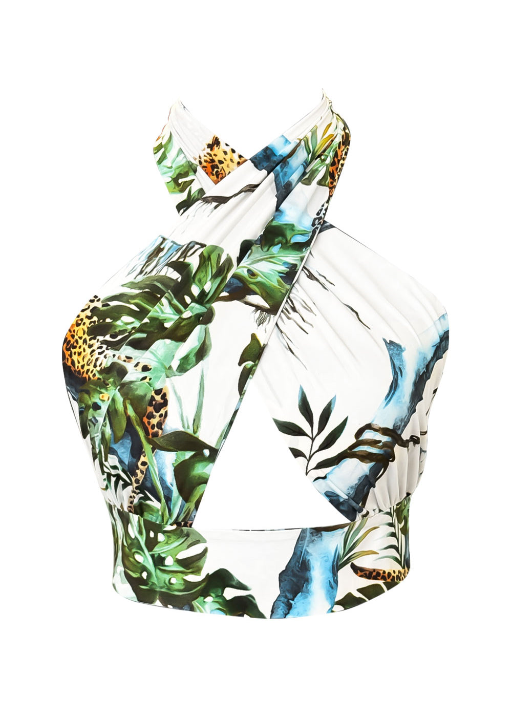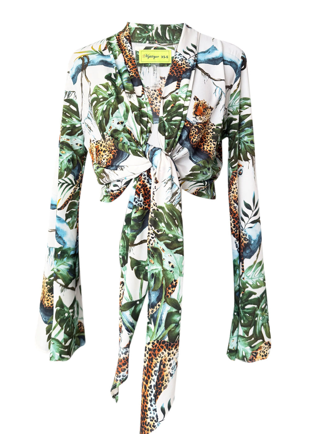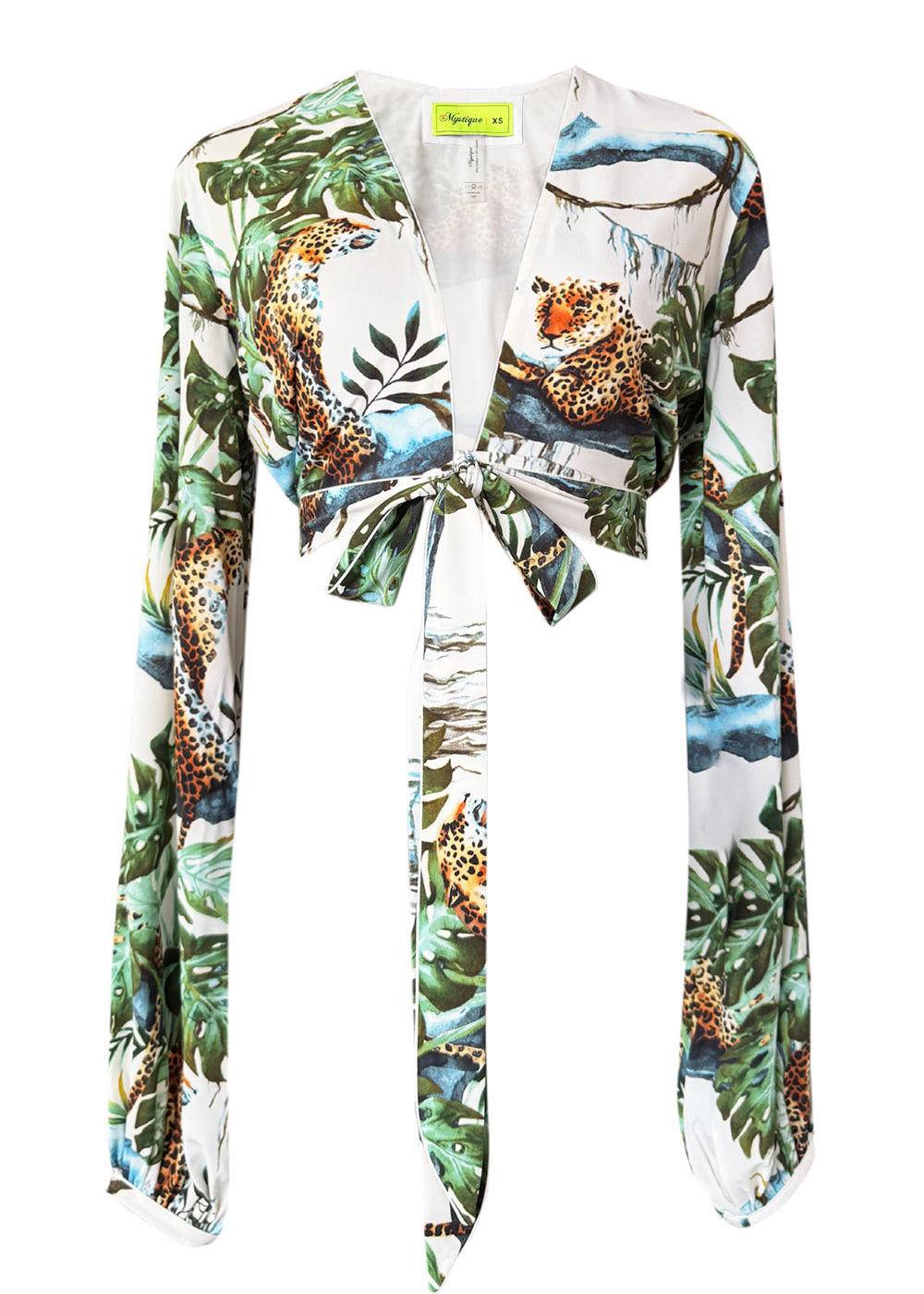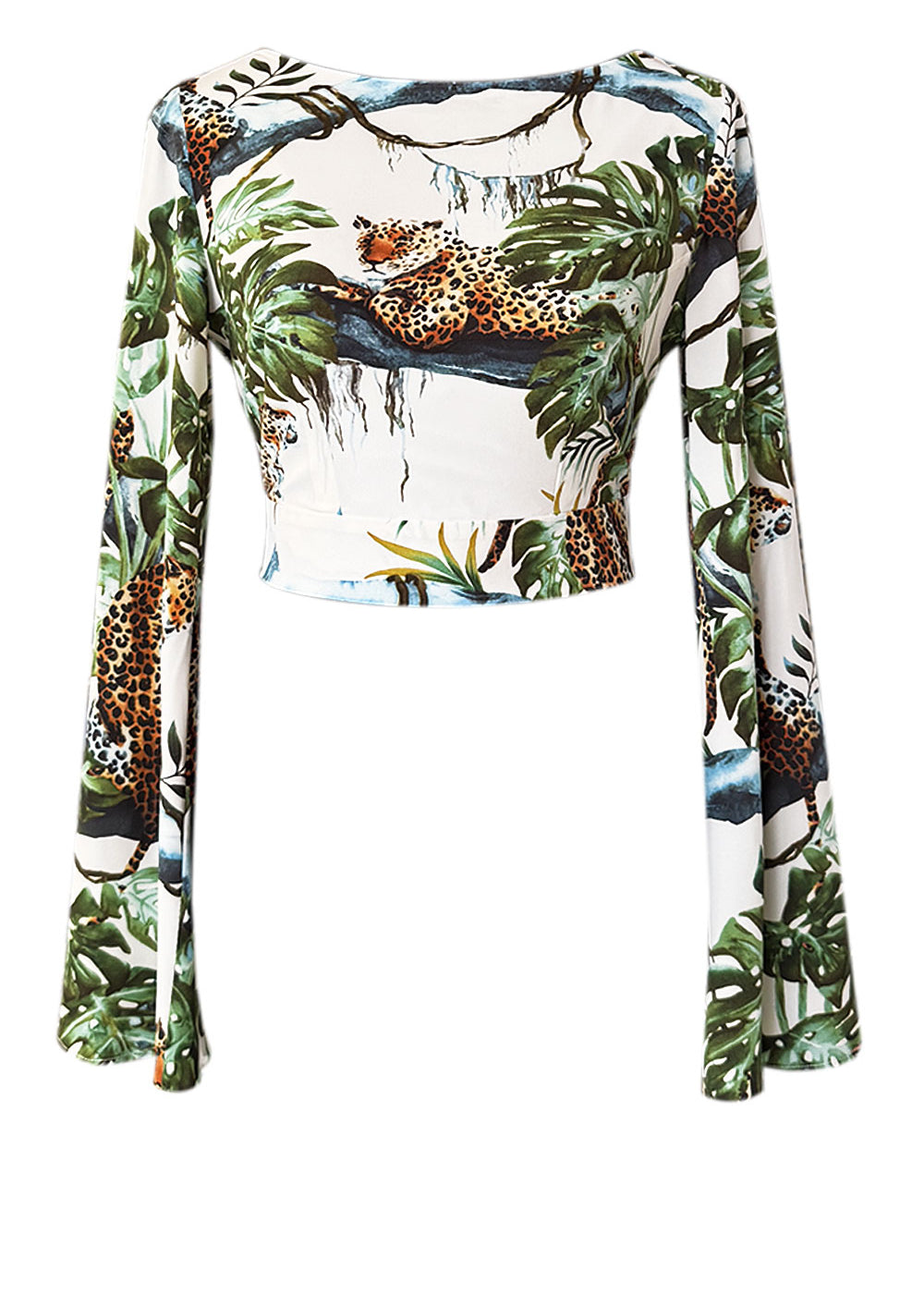 Tropics - Jaguar Cropped Blouse (Off-White)