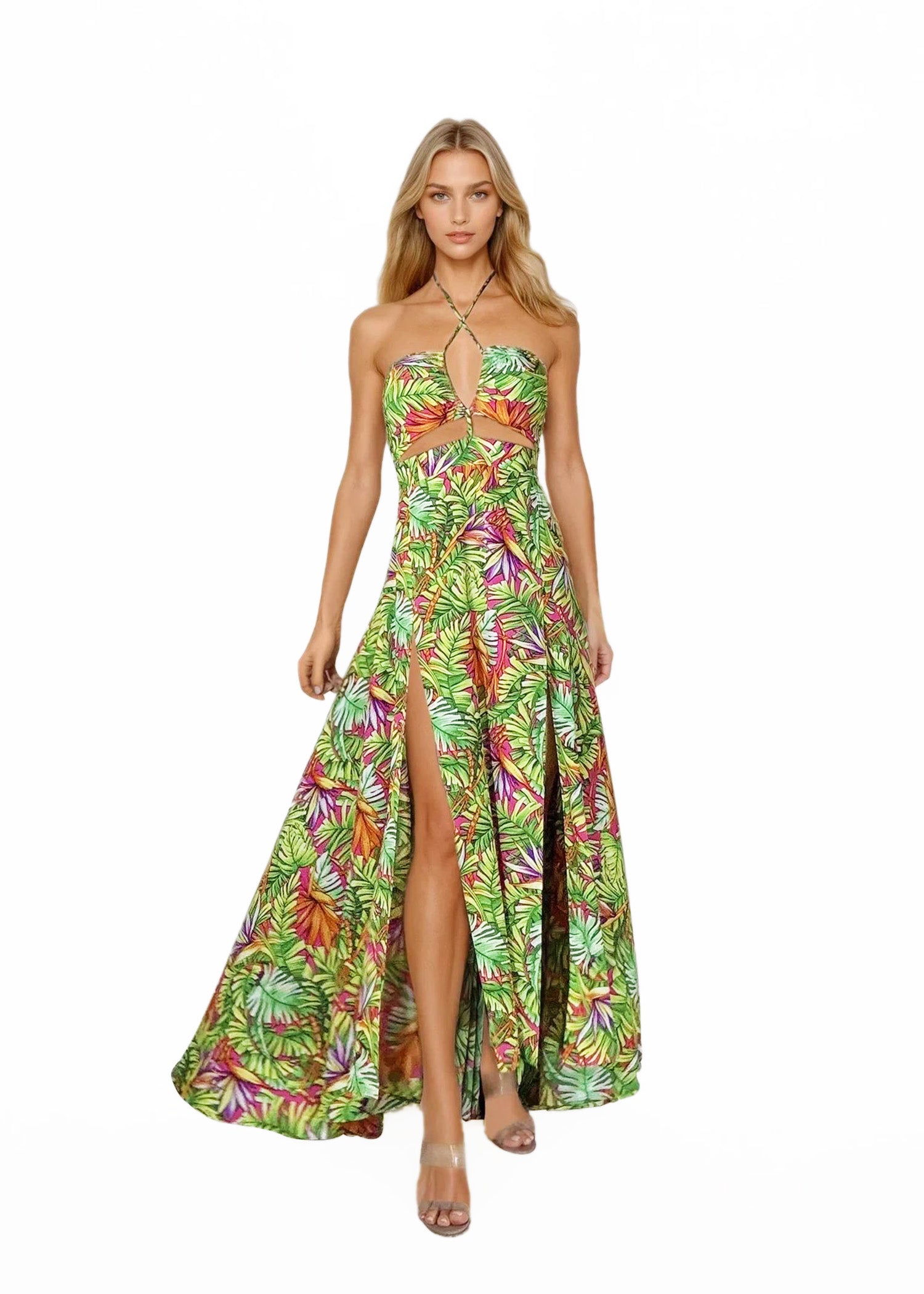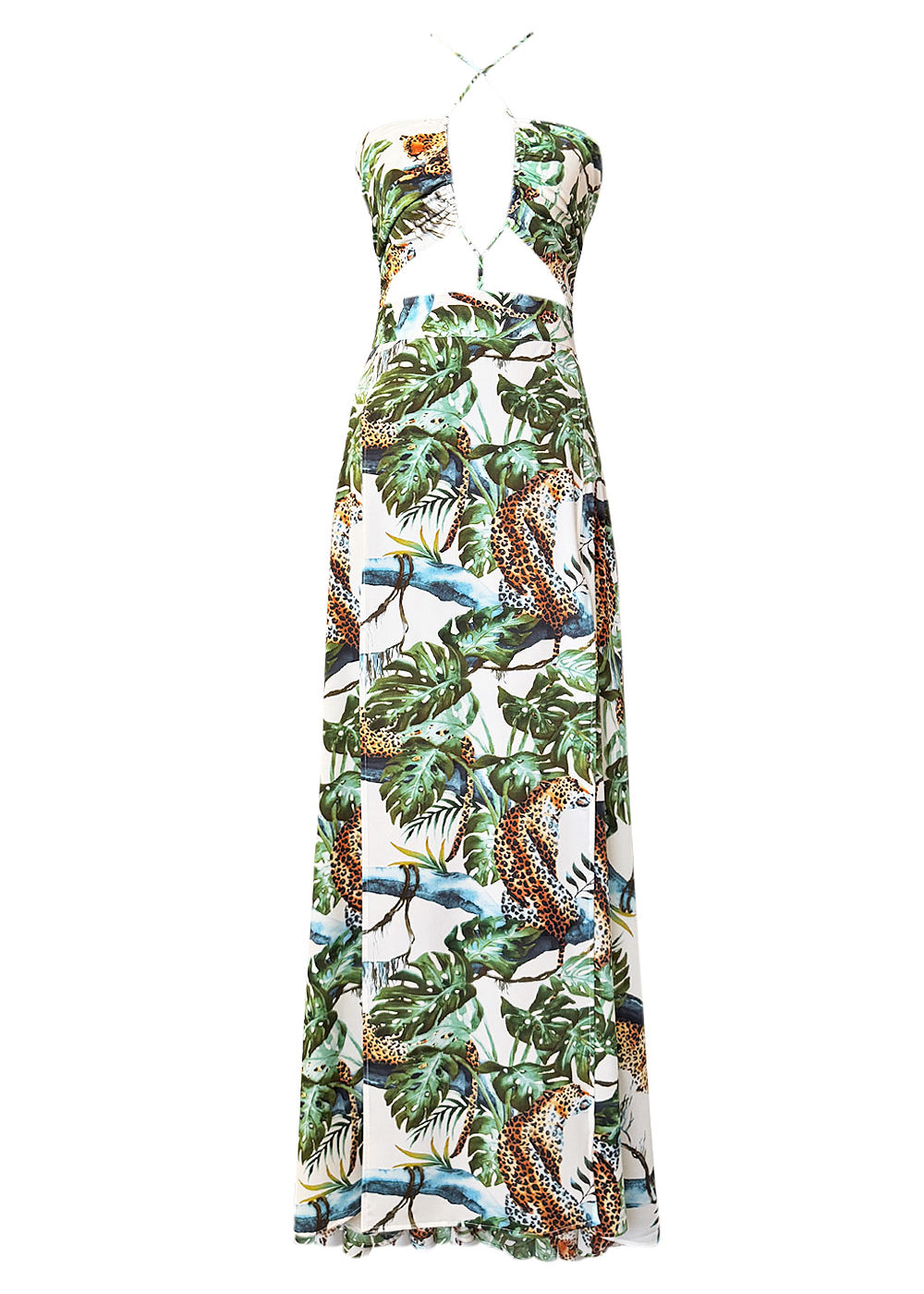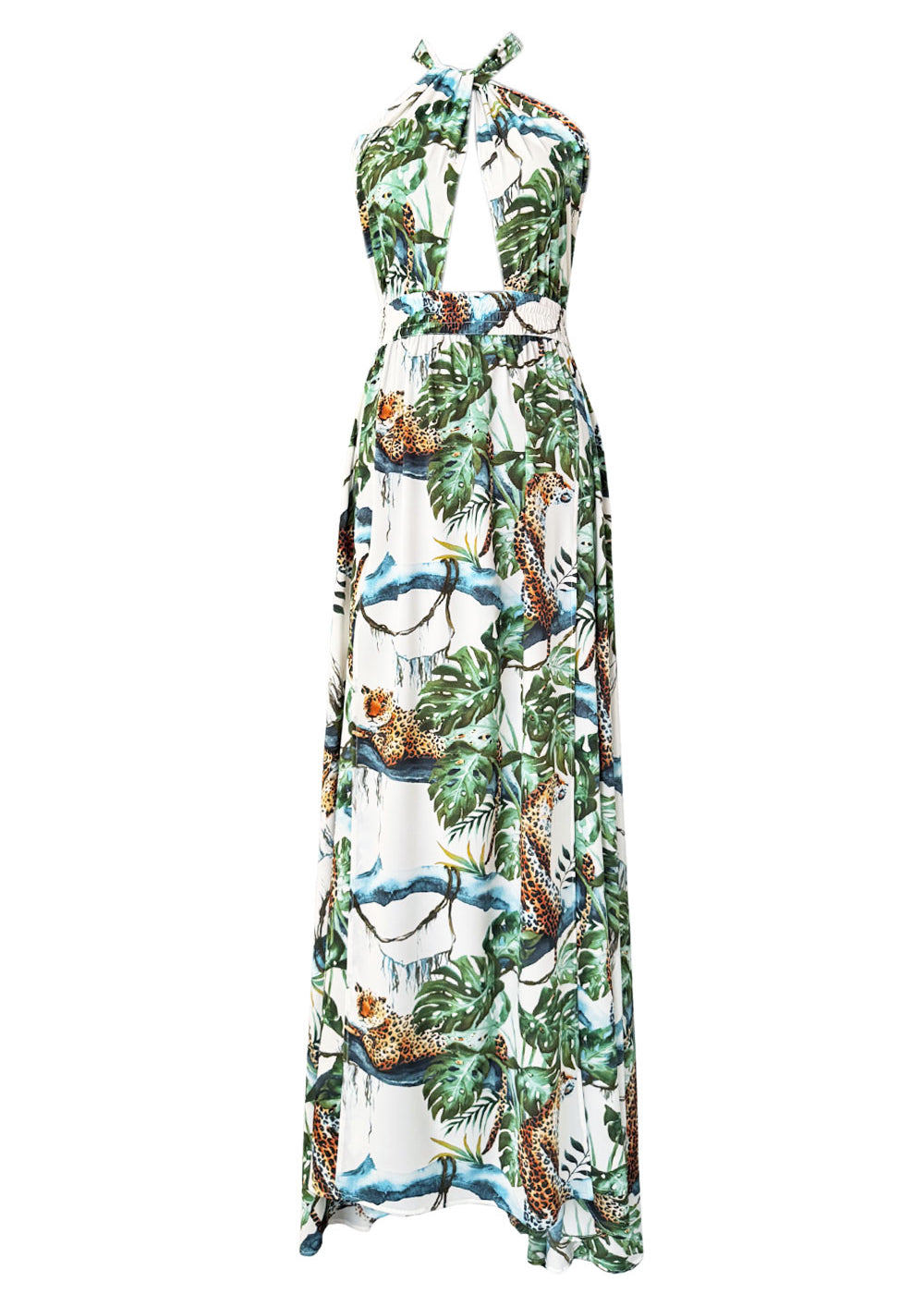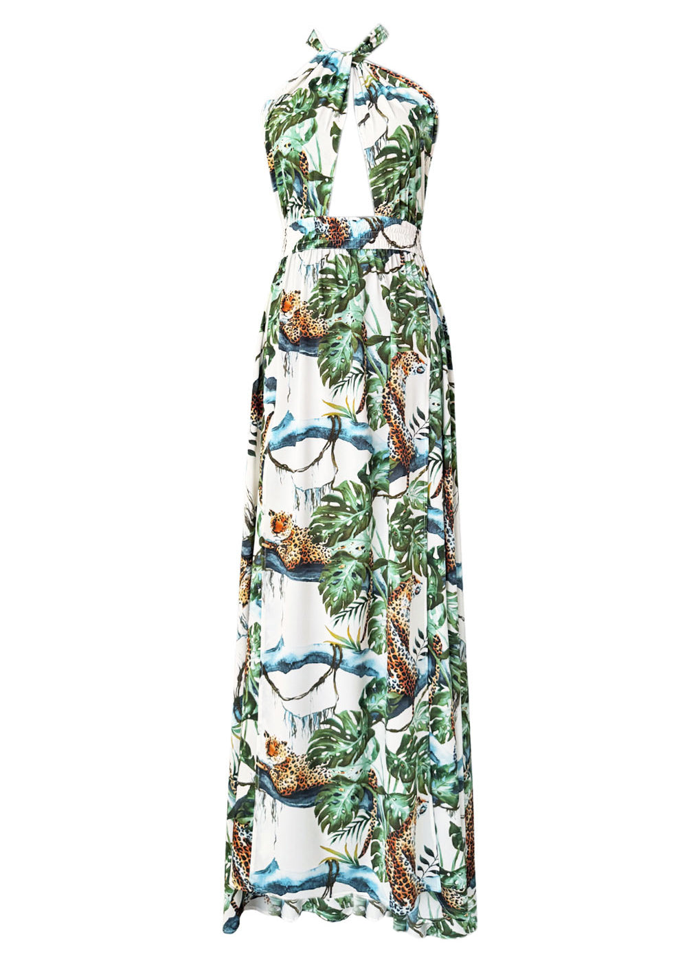 Tropics - Jaguar Maxi Split Kaftan (Off-White)