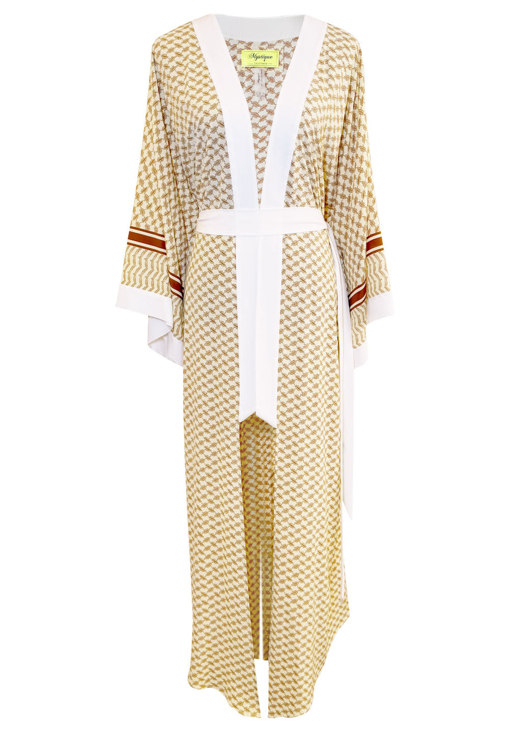 Maxi Split Kaftan - print from Desert collection, with off-white finish.