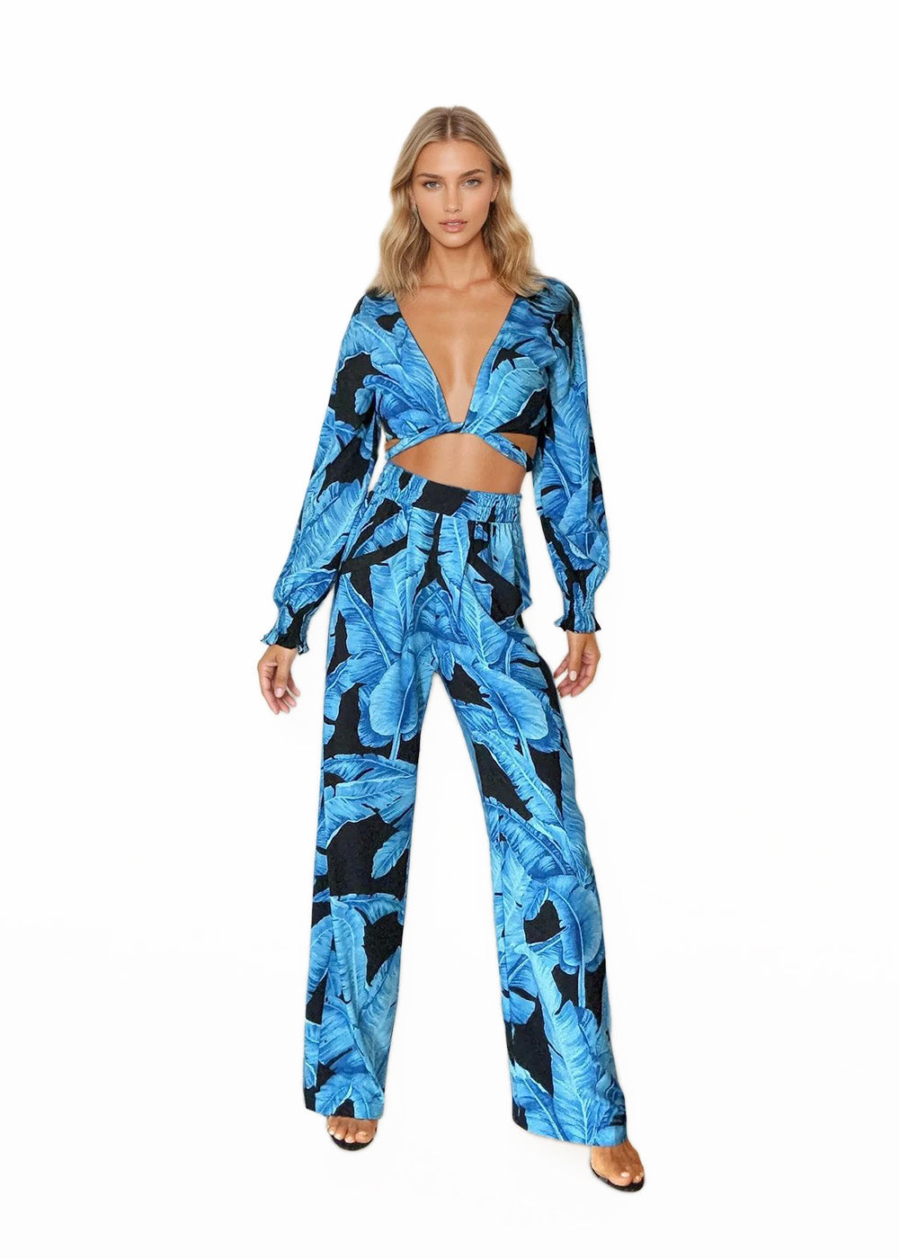 Jungle - Blue Palm Crop Top (Black)