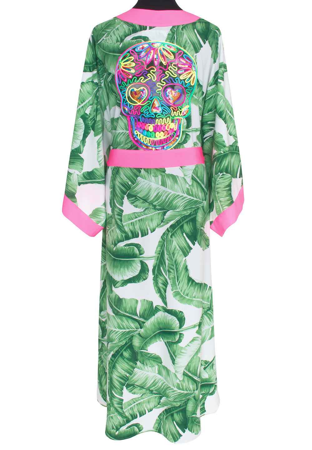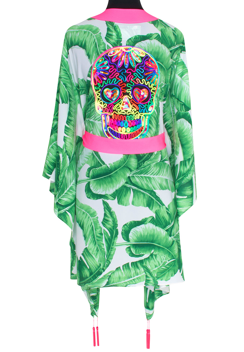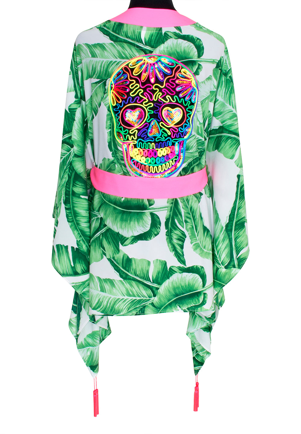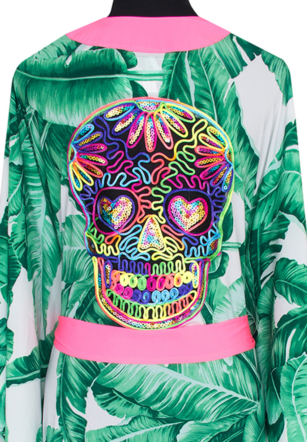 Jungle - Green Palm Kimono Skull (Neon Pink)