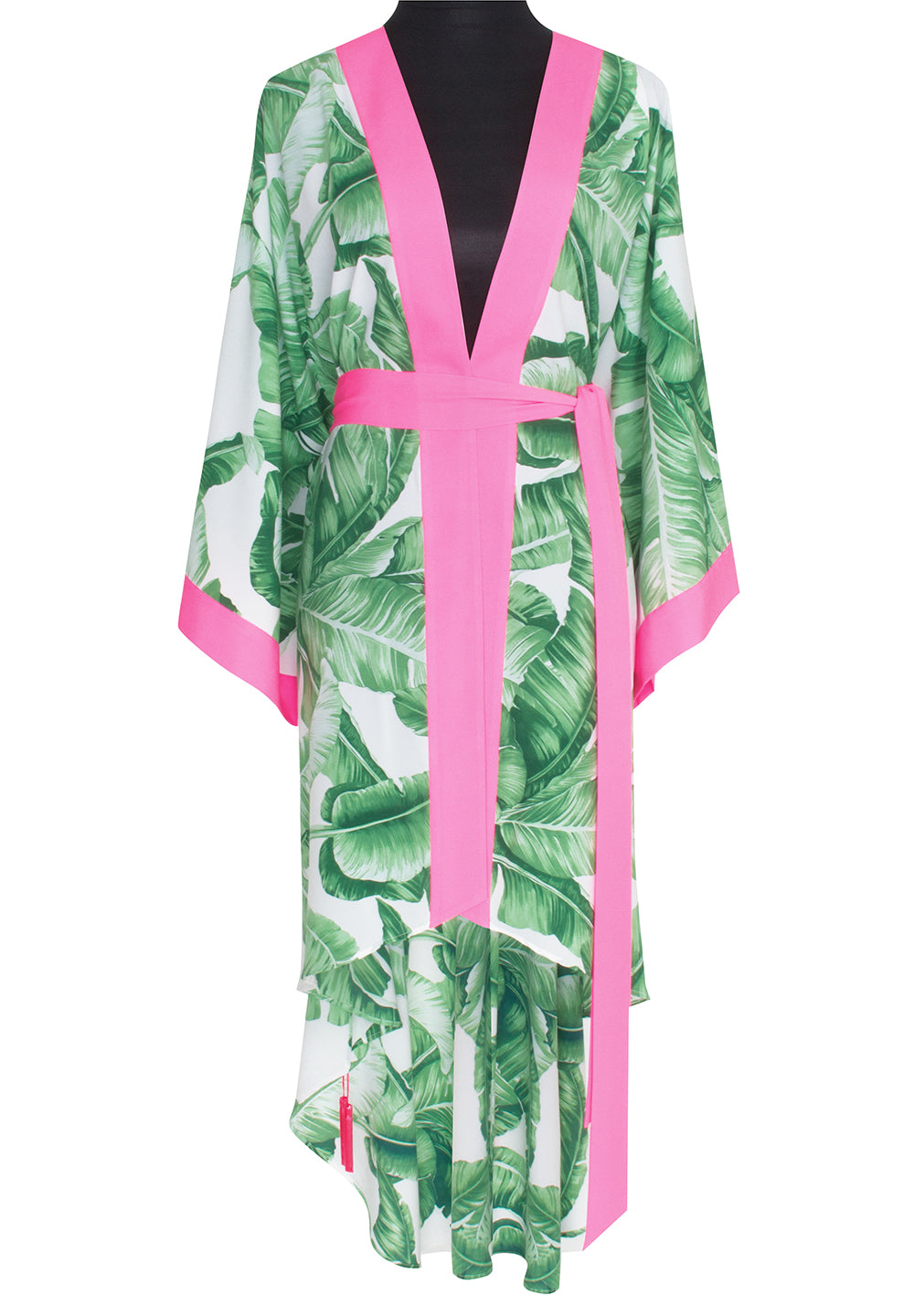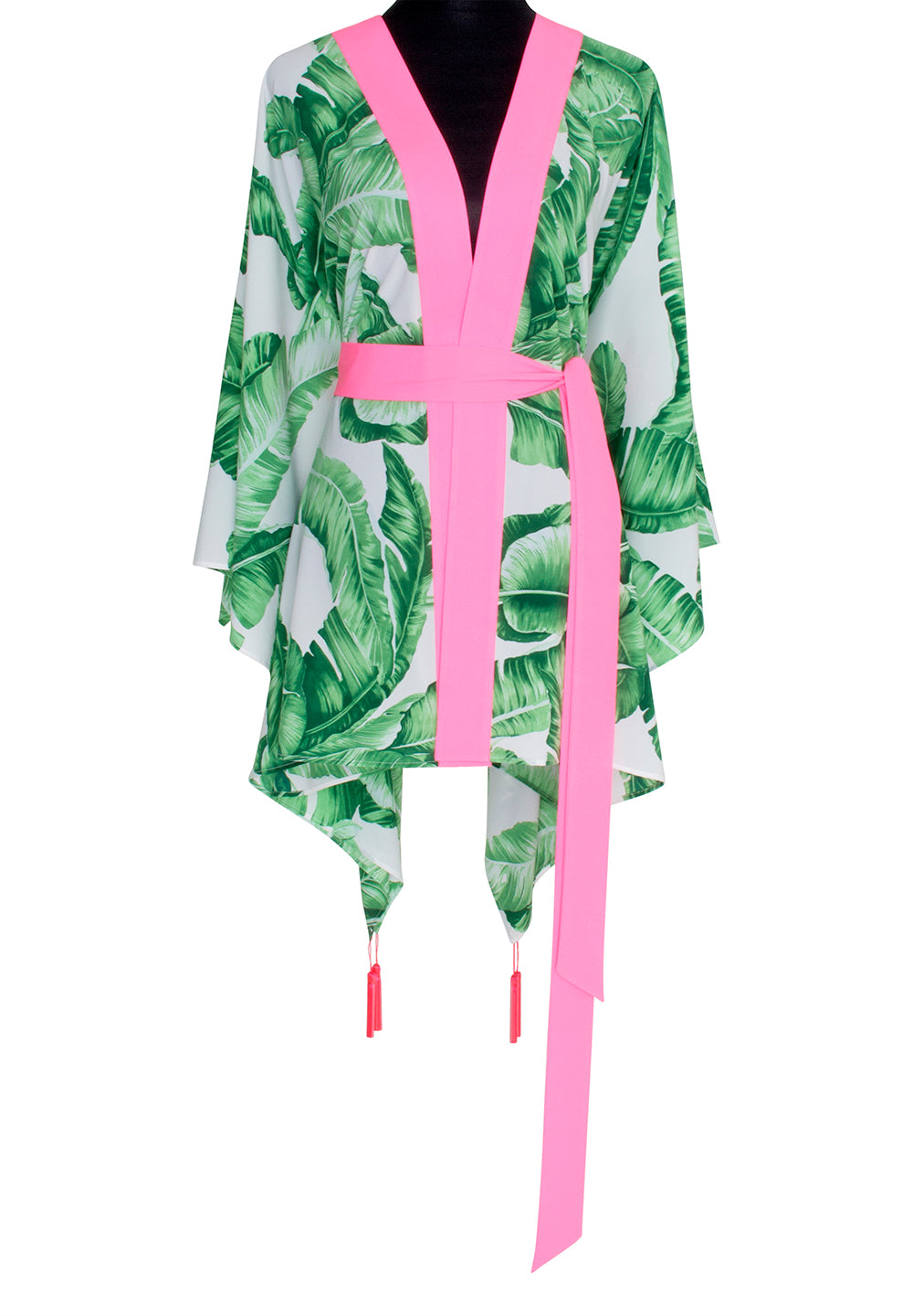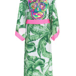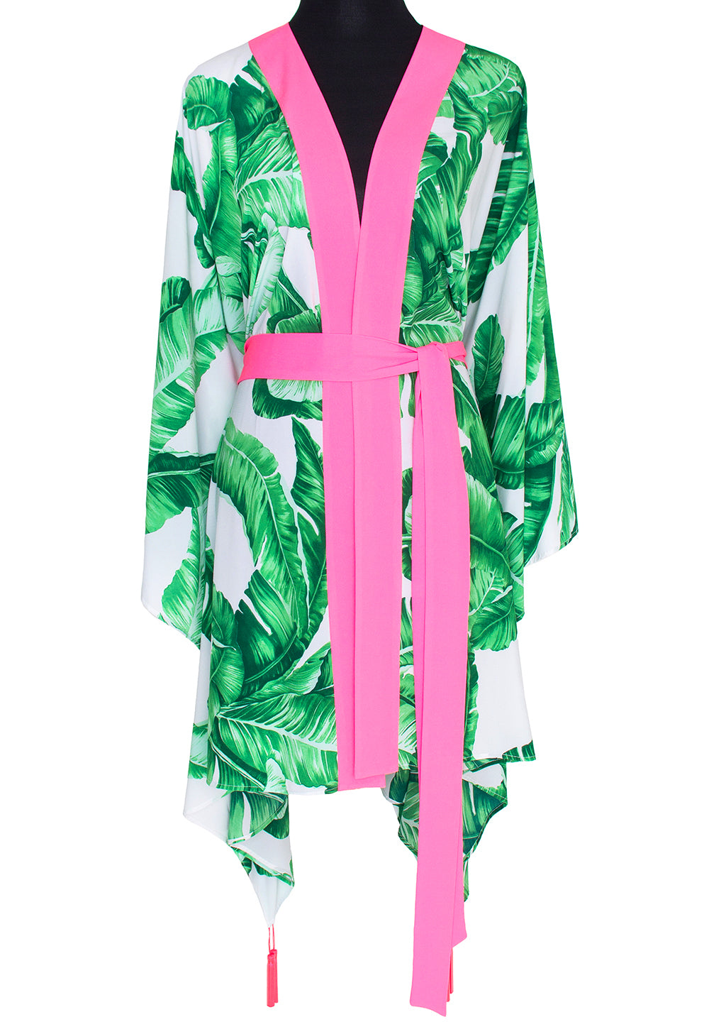 Jungle - Green Palm Kimono Skull (Neon Pink)