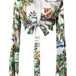 Tropics - Jaguar Cropped Blouse (Off-White)