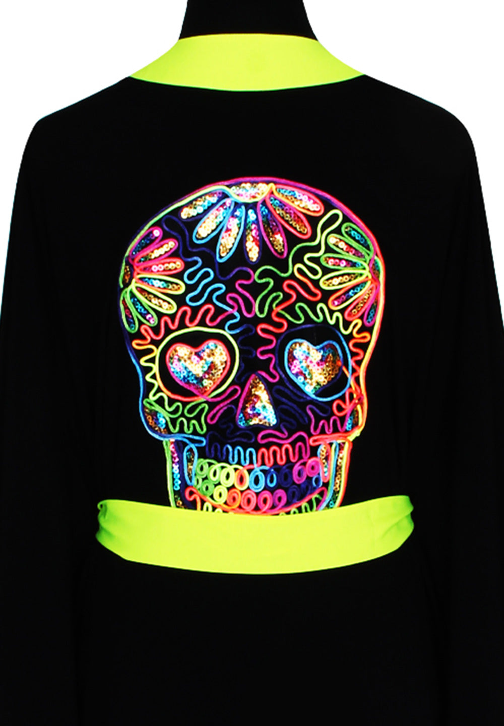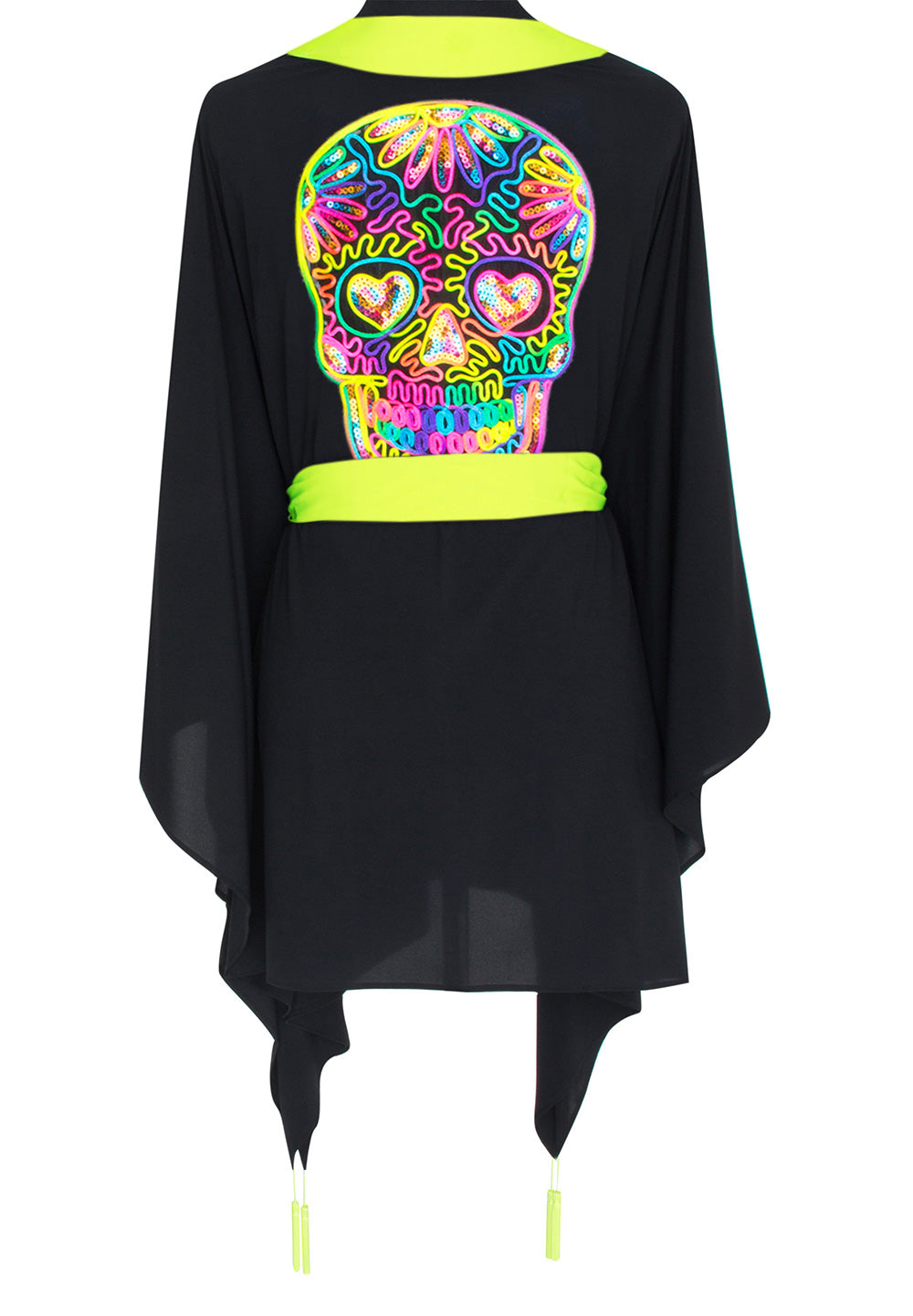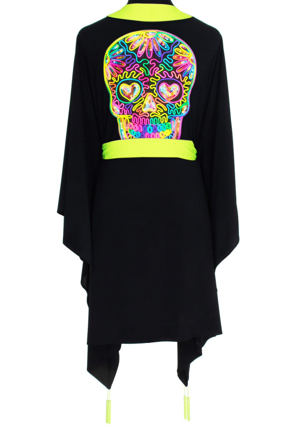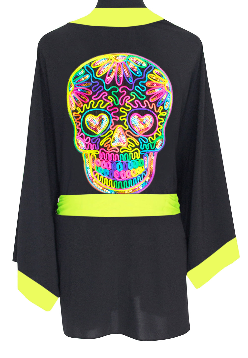 Monochrome - Black Kimono Skull (Neon Yellow)