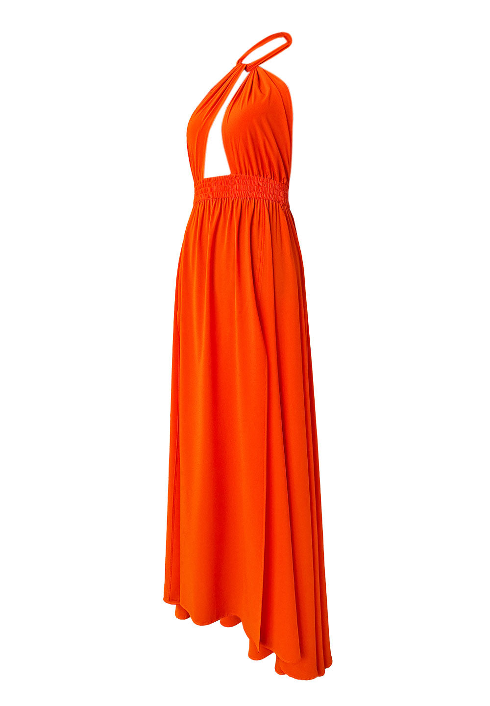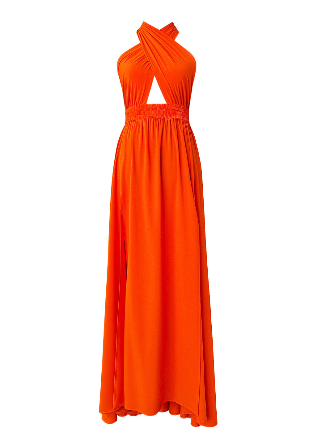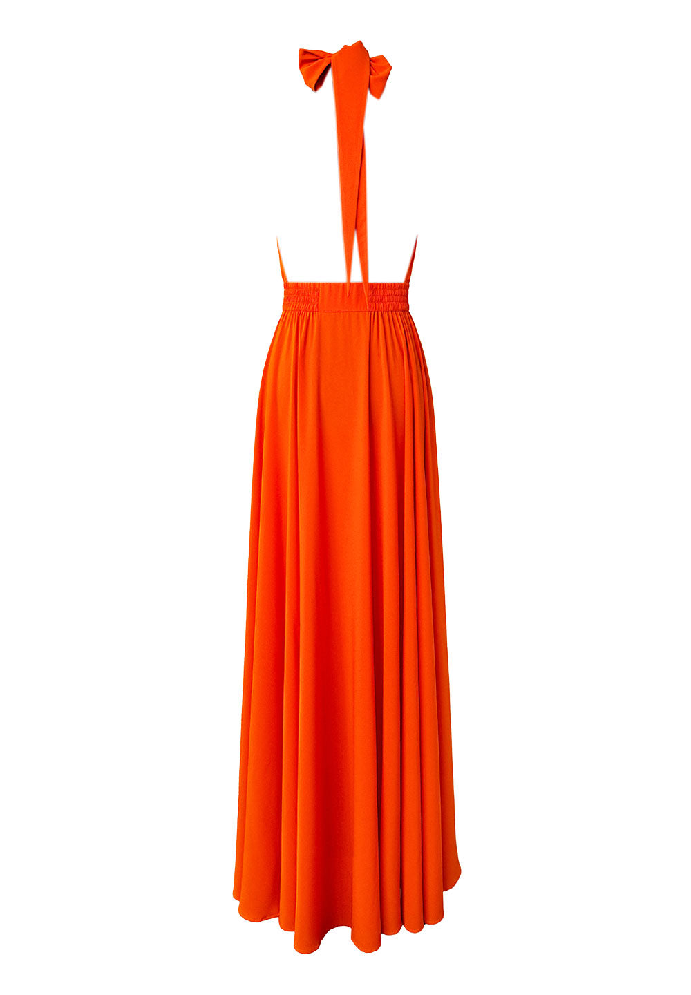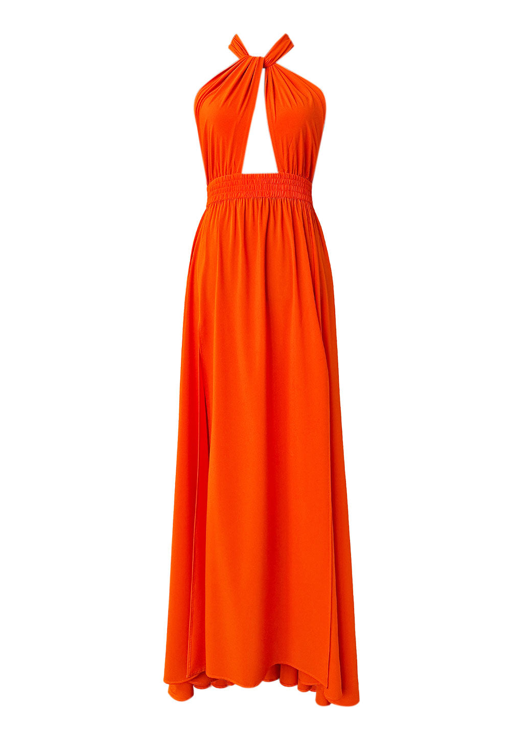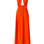 Our stunning Vera dress is a unique design, dual thigh-high slits, the plunging neckline, finished with front crossing ties and an open back.