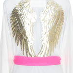 - Sequins gold wings patch on the back