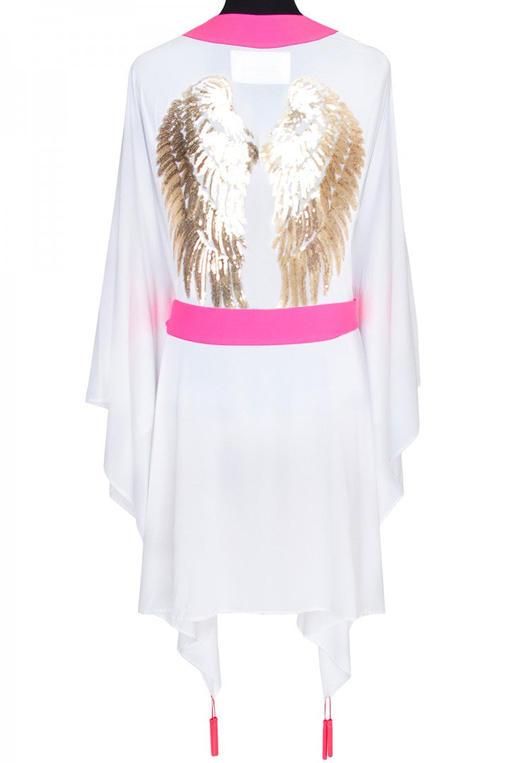Monochrome - White Kimono Wings (Neon Pink)