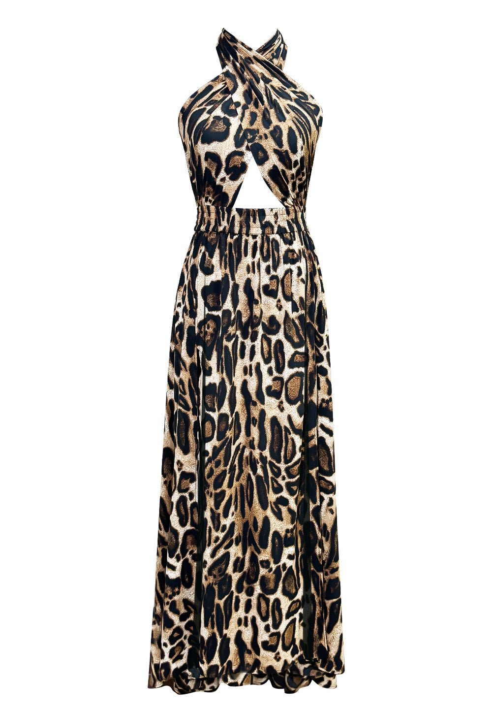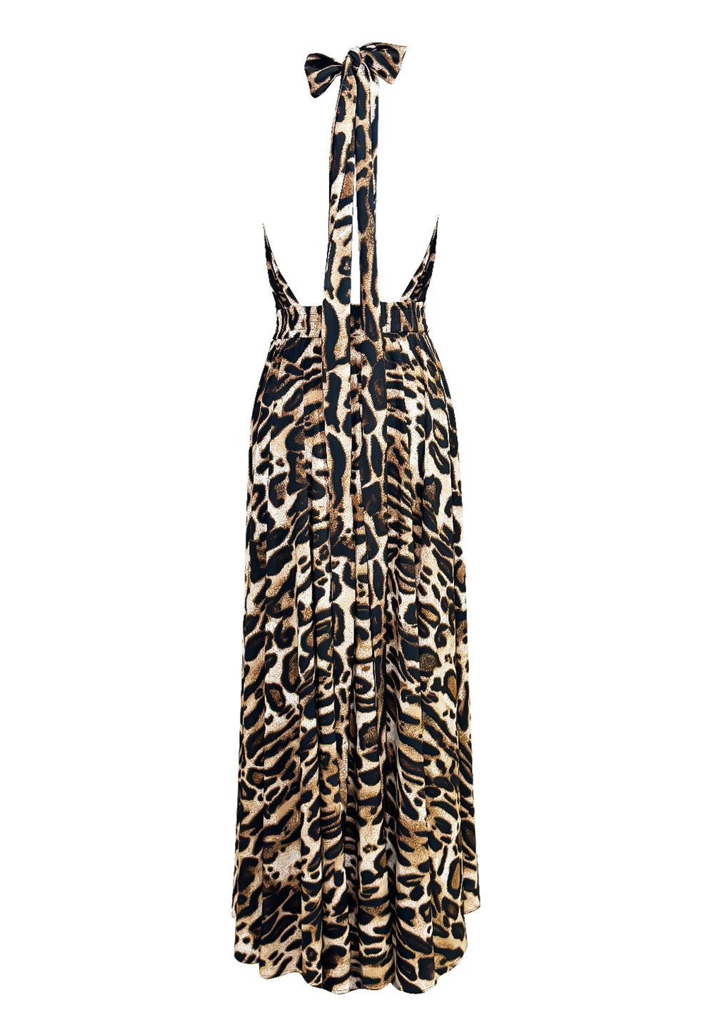 Our stunning Vera dress is a unique design, dual thigh-high slits, the plunging neckline, finished with front crossing ties and an open back.