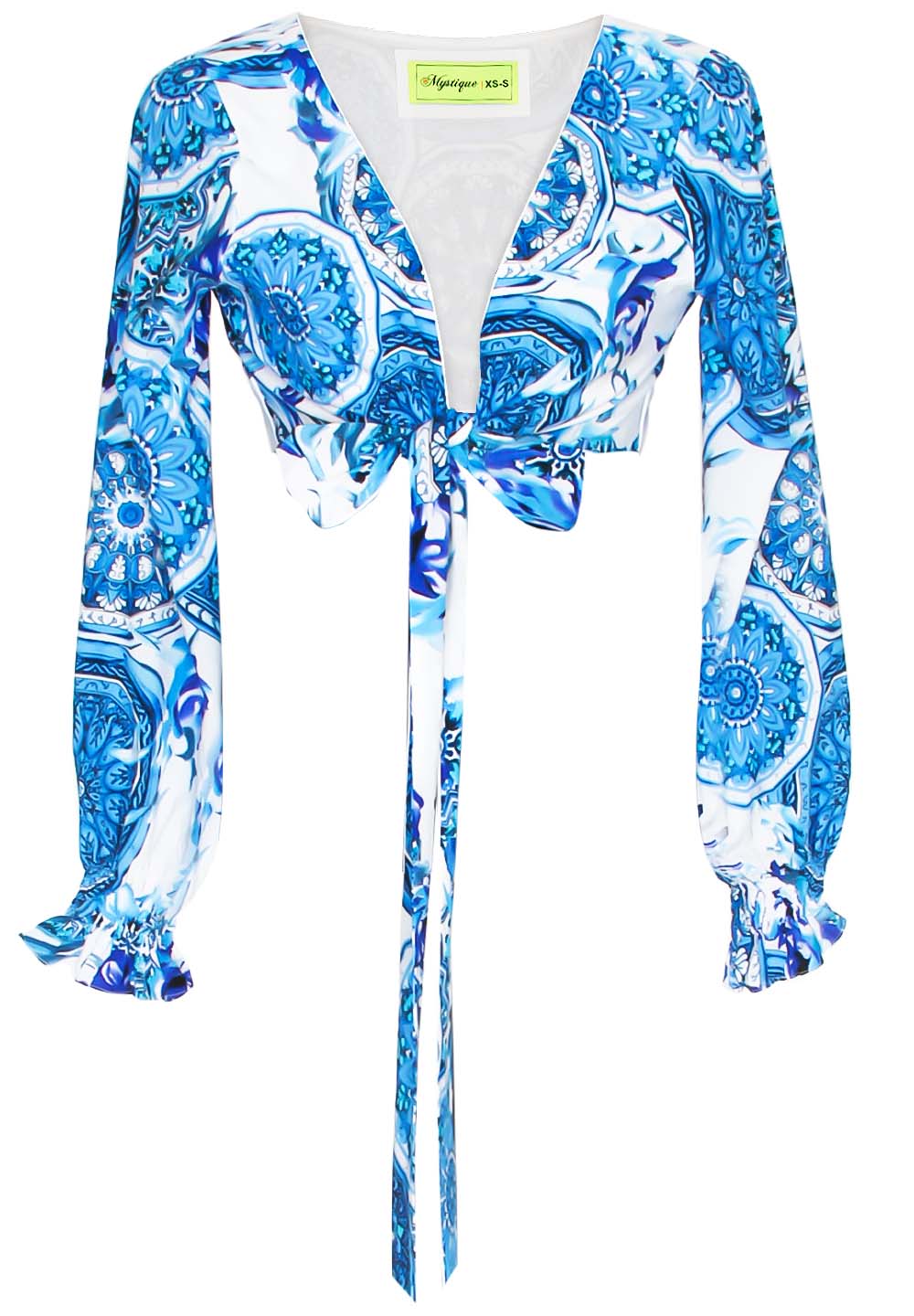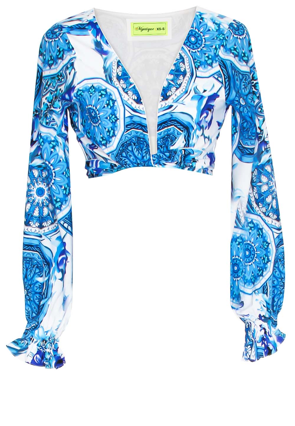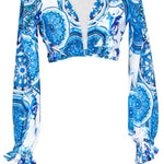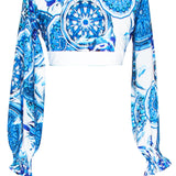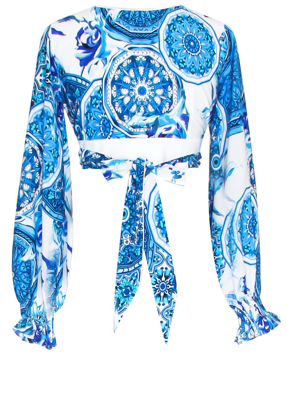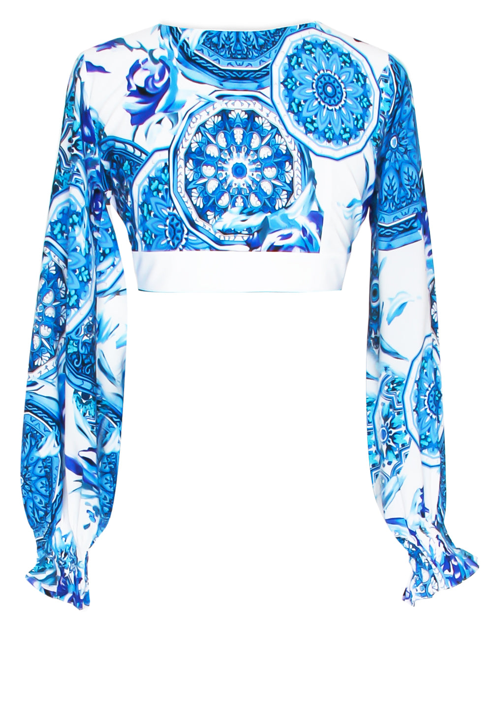 Crop Top - print from vibrant Siciliana collection inspired by colorful Italian majolica, with off-white finish. A perfect set with our pants.