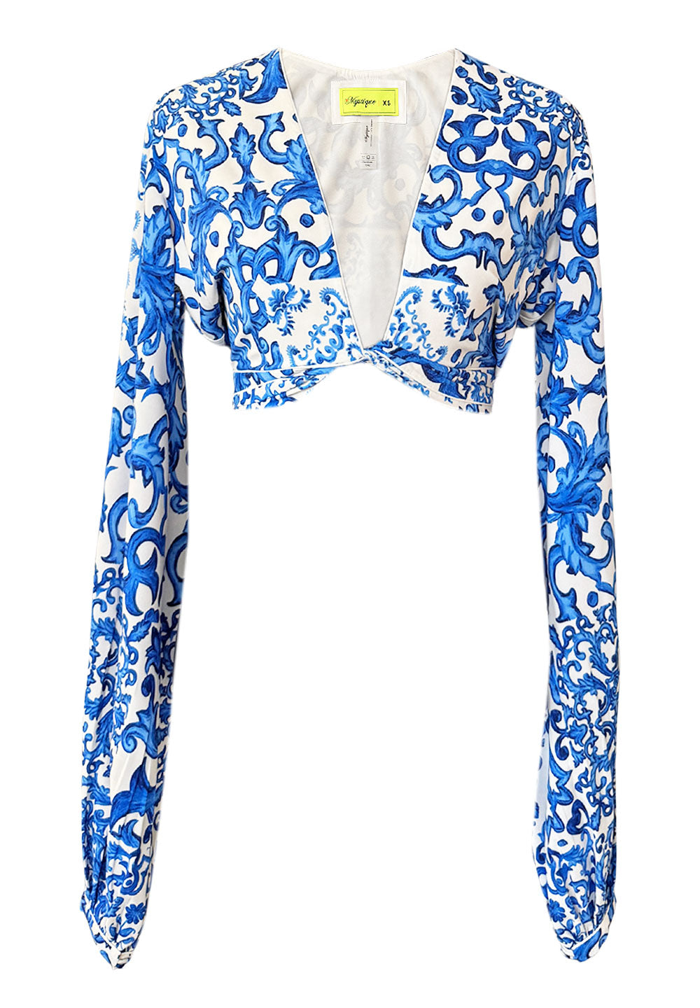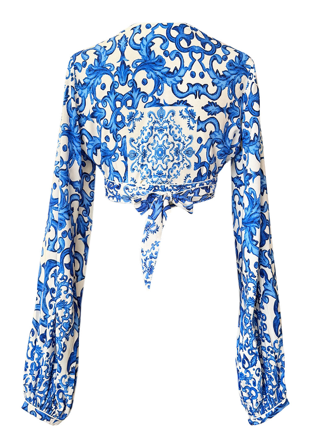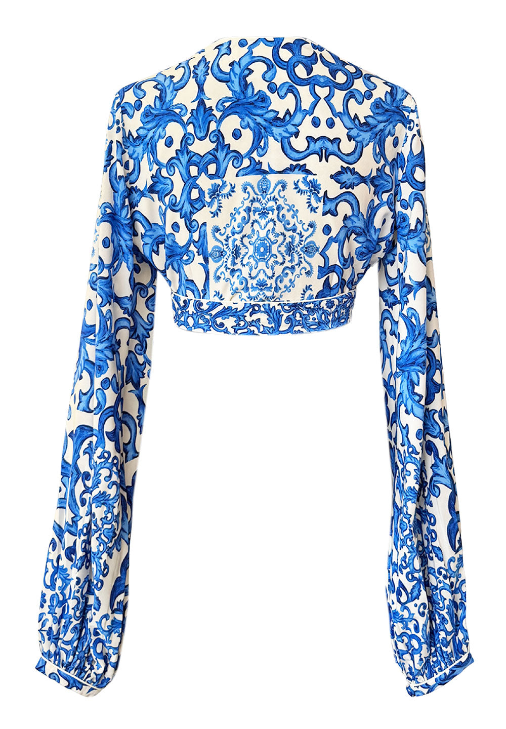 Siciliana - Blu Sicilia Cropped Blouse (Off-White)