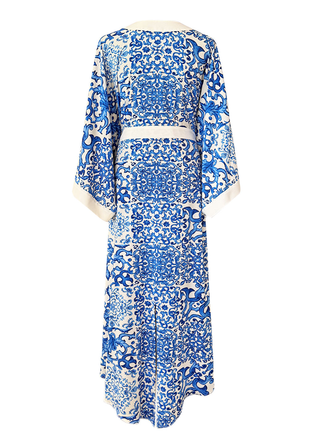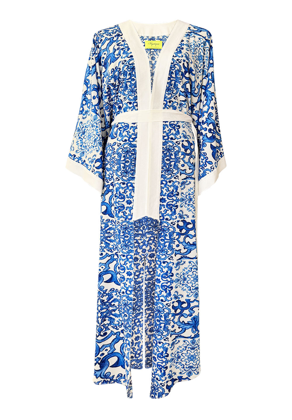 Maxi Split Kaftan - print from vibrant Siciliana collection inspired by colorful Italian majolica, with off-white finish.