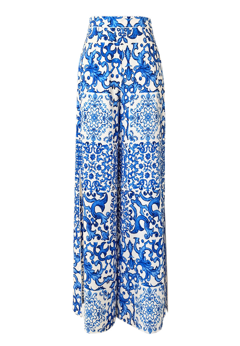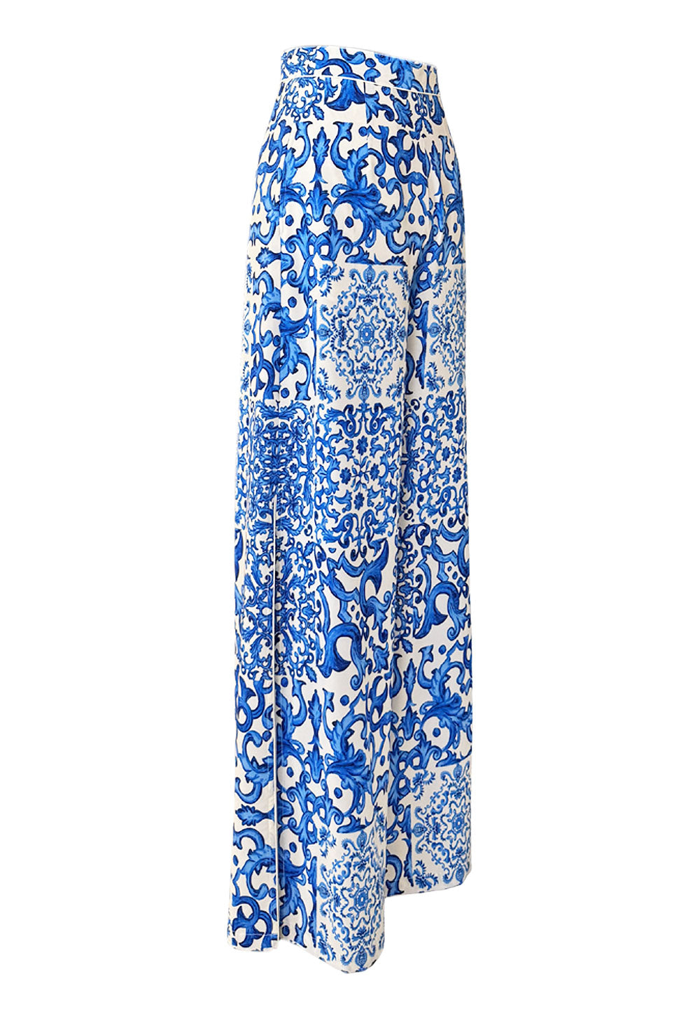 Portofino Pants - print from Siciliana collection inspired by colorful Italian majolica. Fitted pants with side pockets and a sexy split on the side of each leg.