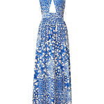 Our stunning Vera dress is a unique design, dual thigh-high slits, the plunging neckline, finished with front crossing ties and an open back.