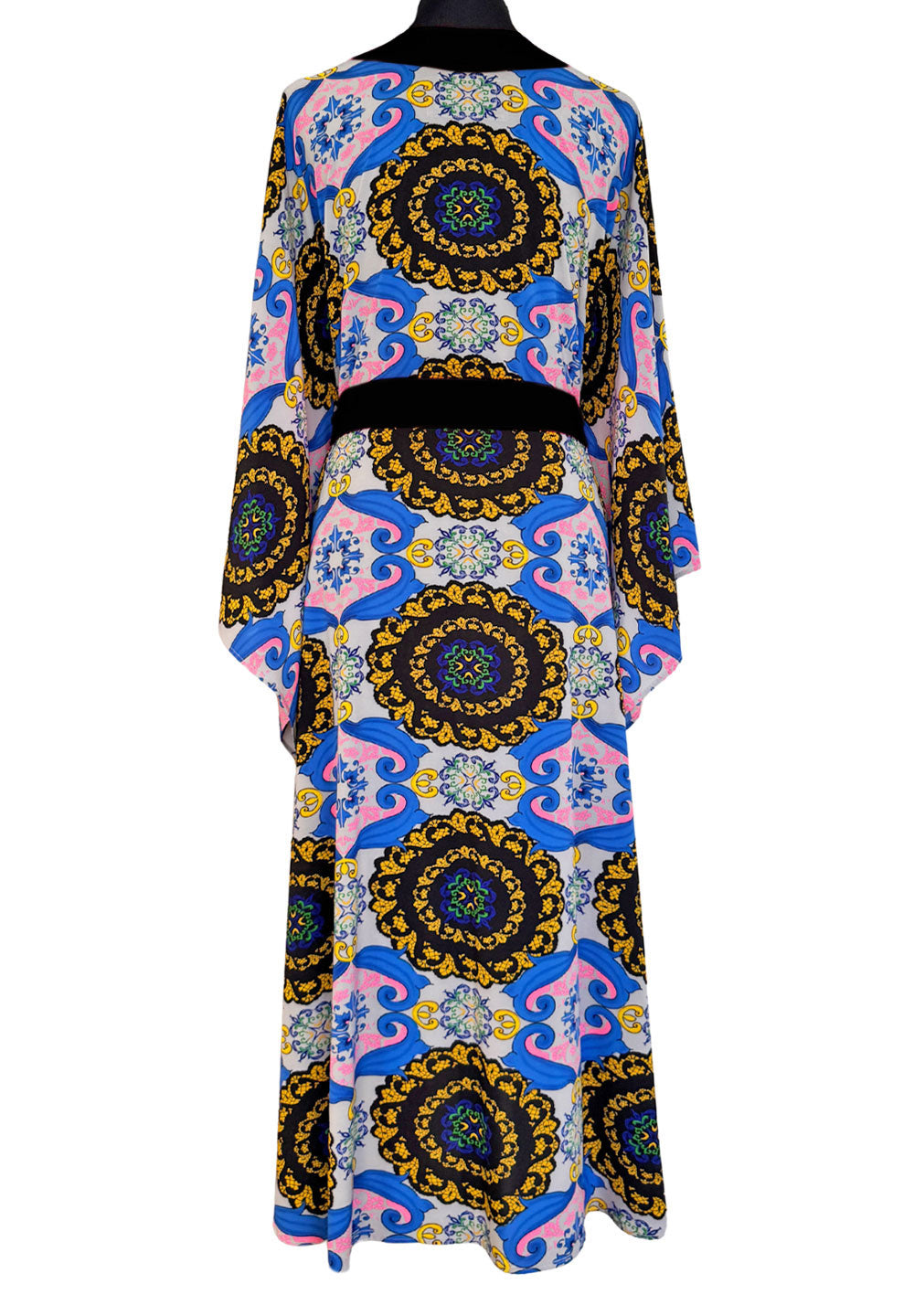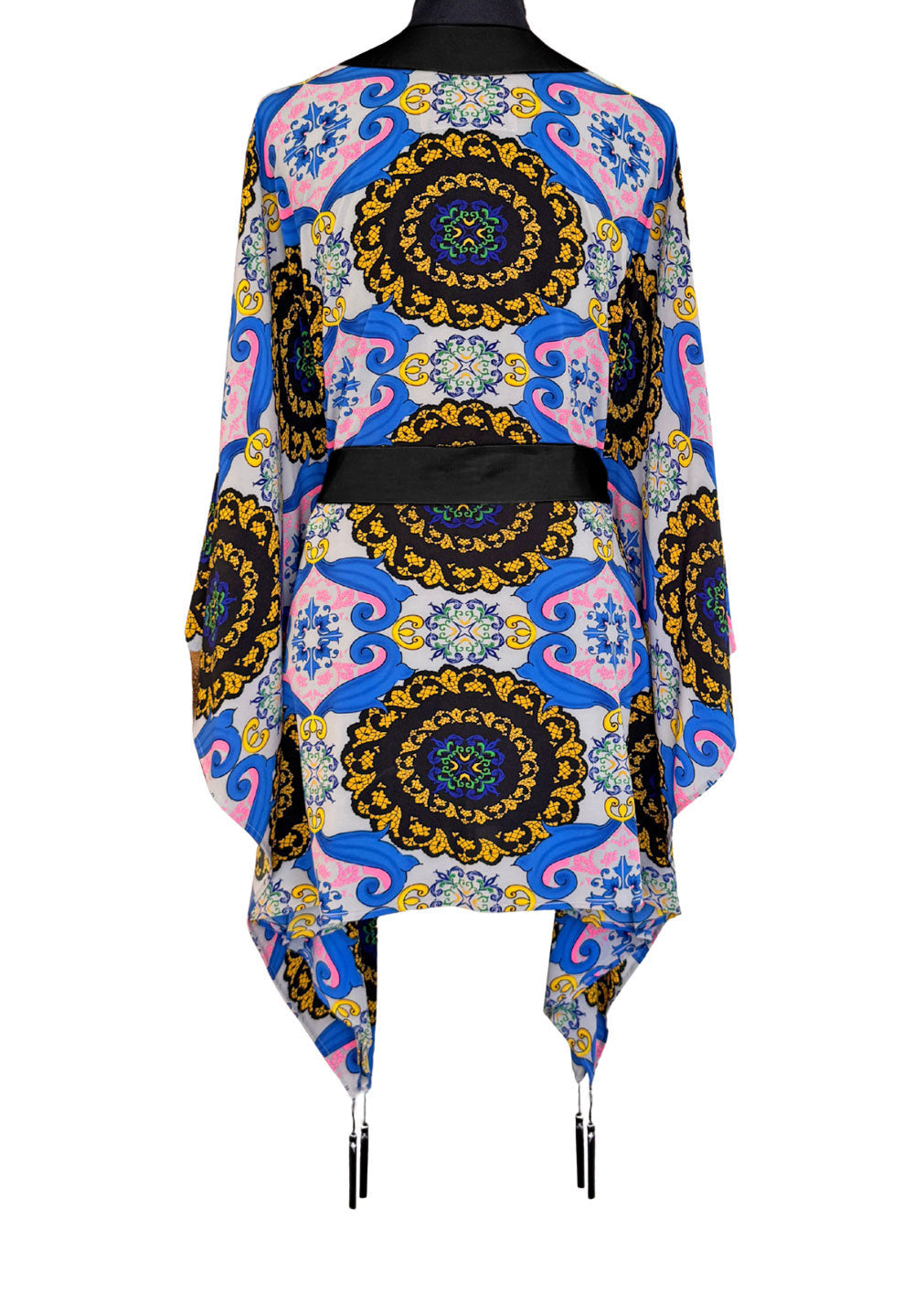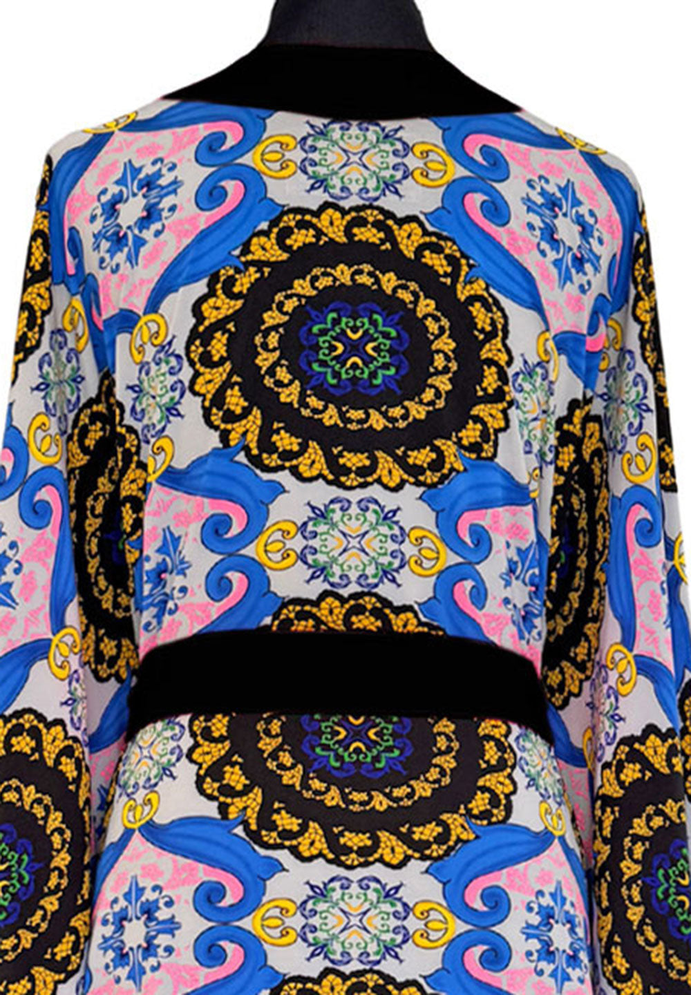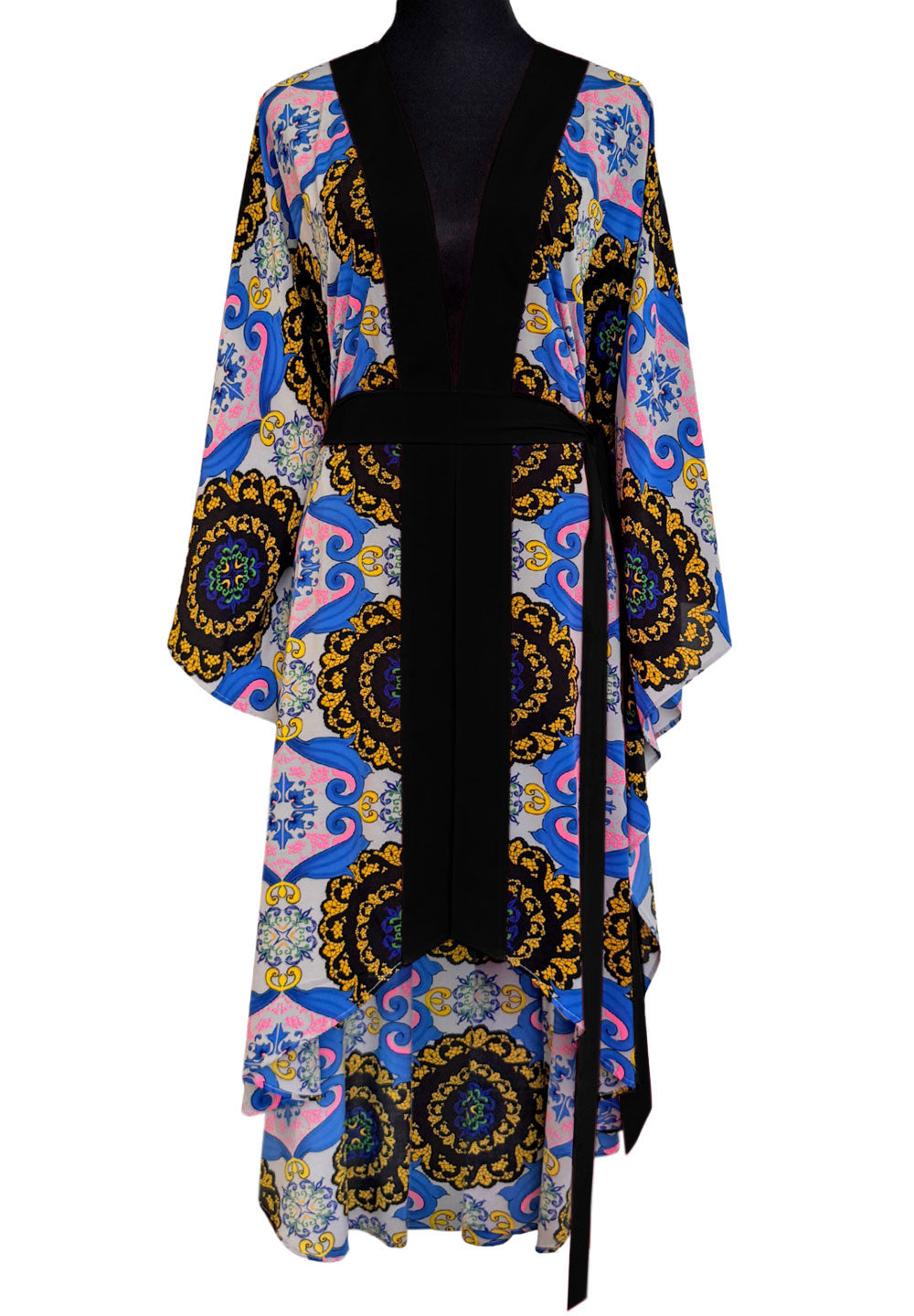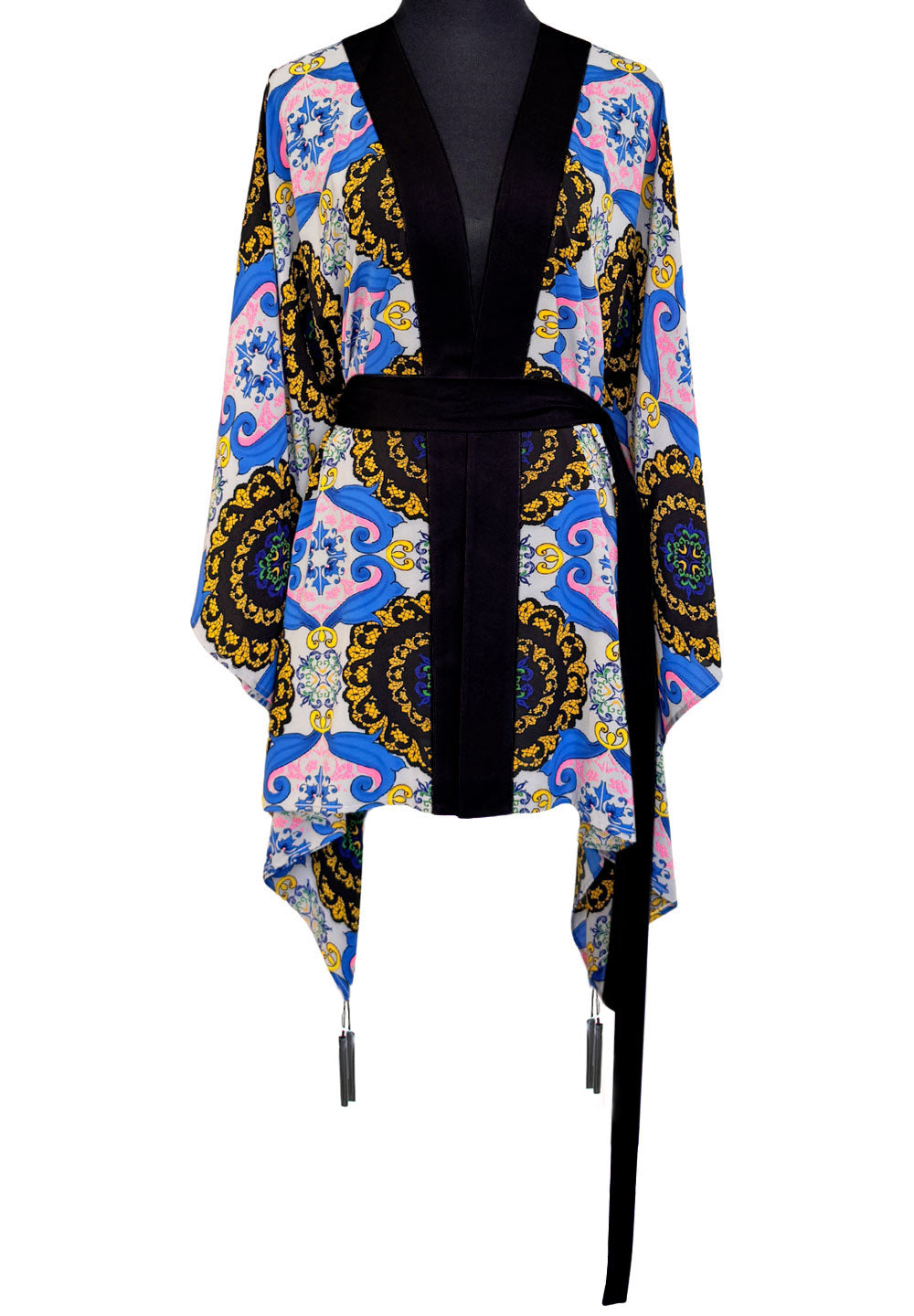 Kimono - print from vibrant Siciliana collection inspired by colorful Italian majolica, with black finish.