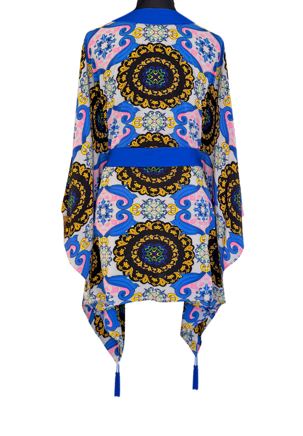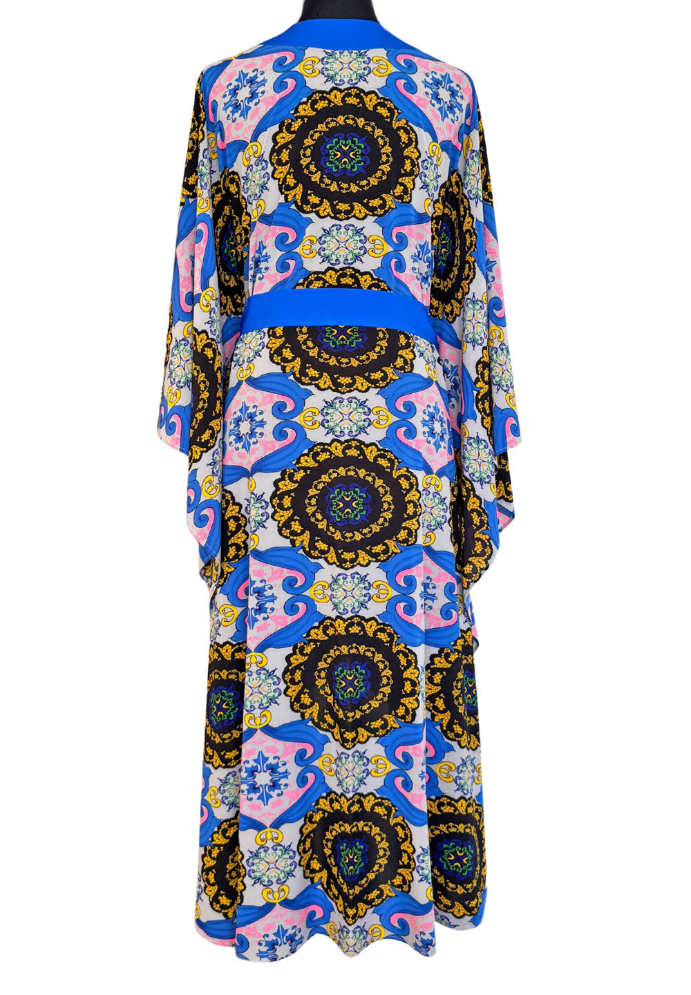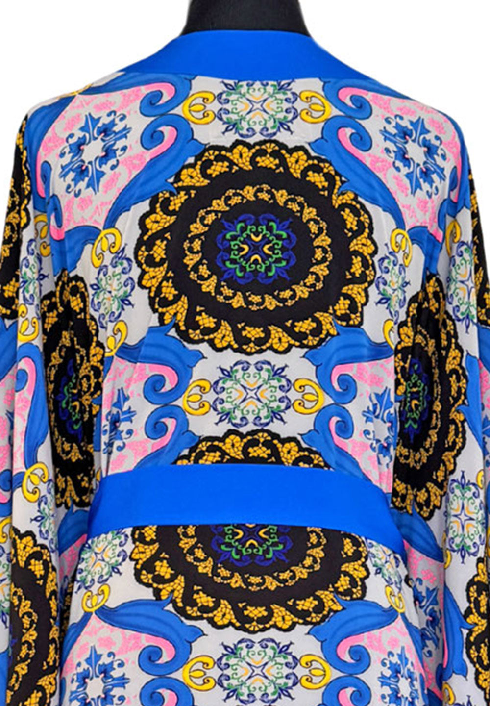 Kimono - print from vibrant Siciliana collection inspired by colorful Italian majolica, with royal blue finish.