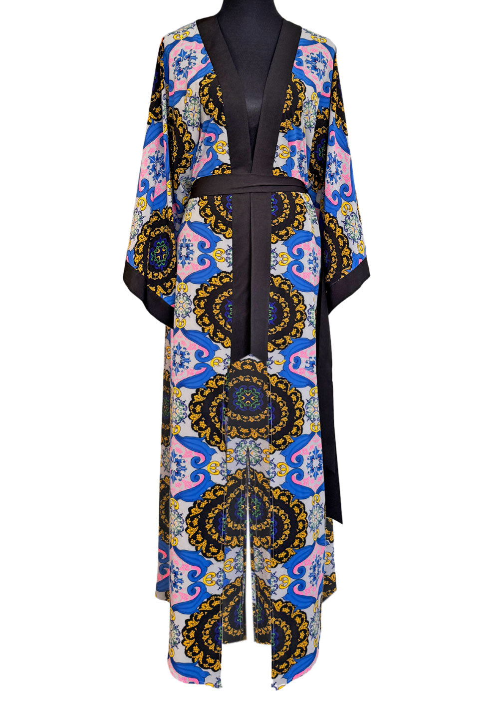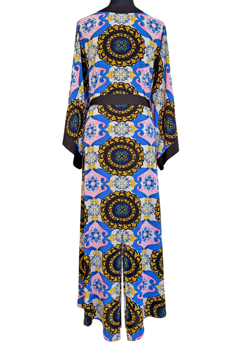 Maxi Split Kaftan - print from vibrant Siciliana collection inspired by colorful Italian majolica, with black finish.